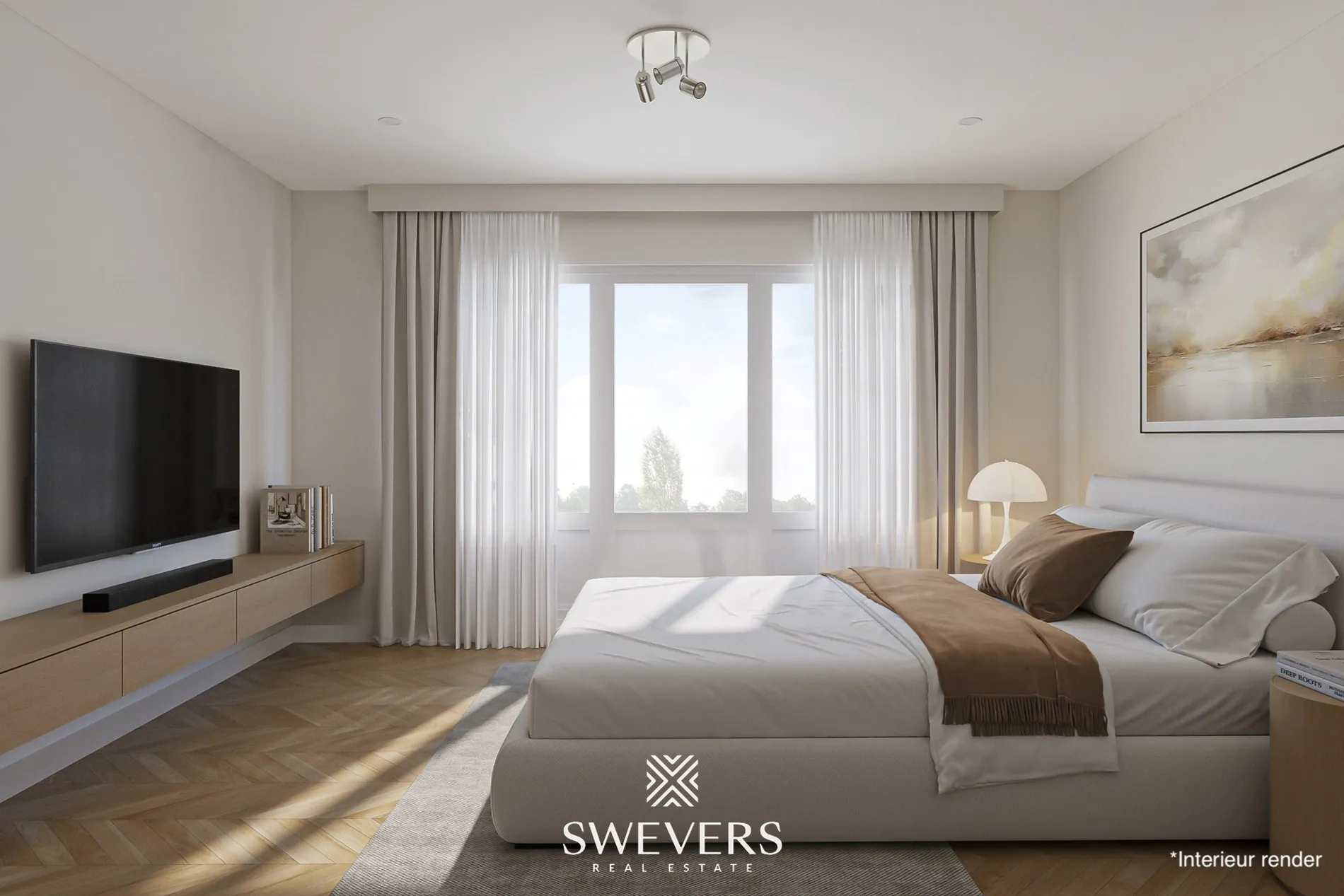 Op het gelijkvloers brengt de inkomhal je naar de ruime woonkamer van 42 m². Deze lichtrijke leefruimte kijkt uit op het terras aan de voorzijde en laat zich vlot inrichten met zowel een zit- als eethoek. Aansluitend bevindt zich de keuken van 17,66 m². De keuken geeft uit op de veranda die via grote raampartijen natuurlijk licht binnenhaalt. Deze veranda vormt een mooie overgang naar de tuin en is ideaal als extra eetplaats of ontspanningsruimte.