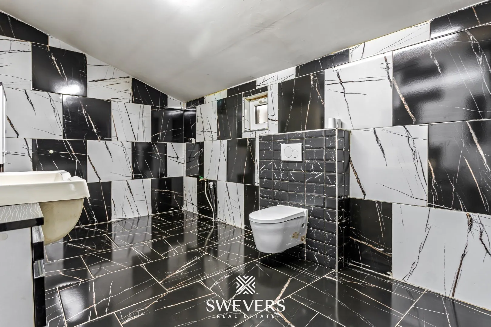Op het gelijkvloers komt de woning binnen in een ruime en leefruimte van 29,50 m². Aansluitend bevindt zich de vernieuwde keuken van maar liefst 25 m². Deze is praktisch ingericht en biedt vlot plaats voor een ruime eettafel. Achteraan de woning is een veranda voorzien die het hele jaar door extra licht en leefruimte brengt. Ook de badkamer bevindt zich op het gelijkvloers. Deze werd eveneens vernieuwd en is uitgerust met een ligbad, wastafel en toilet. De indeling zorgt ervoor dat alle belangrijke functies zich op de begane grond bevinden – een troef voor wie comfort en toegankelijkheid belangrijk vindt.