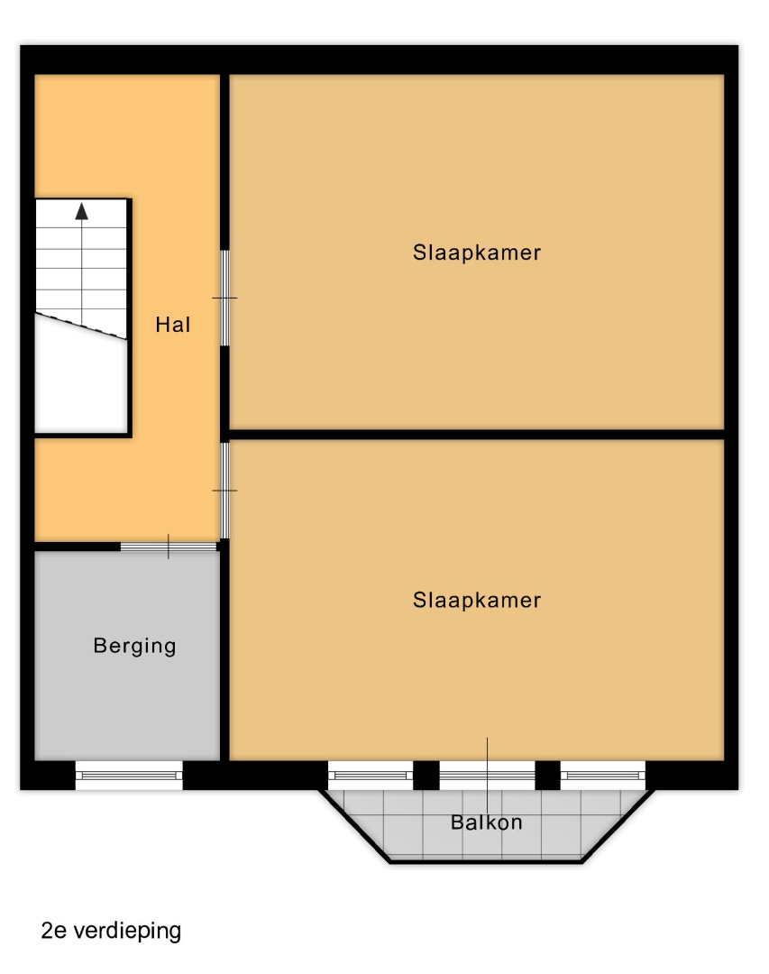 De tweede verdieping telt nog eens drie kamers: twee volwaardige slaapkamers van opnieuw 18,50 m² én een extra slaapkamer van 12,70 m² aan de achterzijde. Hier is bovendien een hal en een tweede bergruimte aanwezig. De kamer aan de achterzijde geeft uit op een charmant balkon, dat uitkijkt over het perceel. Deze verdieping is ideaal voor grotere gezinnen, co-housing of om gasten te ontvangen.