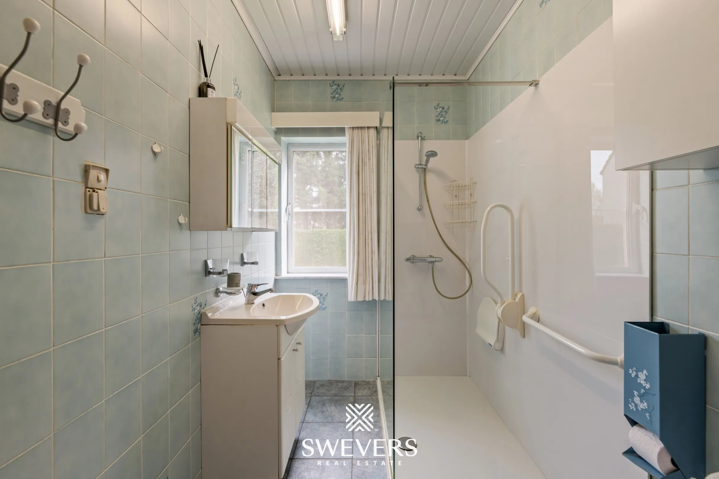 De nachthal leidt naar drie slaapkamers en de badkamer. De slaapkamers hebben oppervlaktes van 9 m², 9 m² en 15,75 m² en zijn logisch ingedeeld. De grootste kamer biedt voldoende ruimte voor een comfortabel slaapgedeelte met bijkomende kastruimte. De badkamer, vernieuwd in 2016, is uitgerust met een inloopdouche en wastafel. Het toilet is apart voorzien, wat het gebruiksgemak verhoogt.
