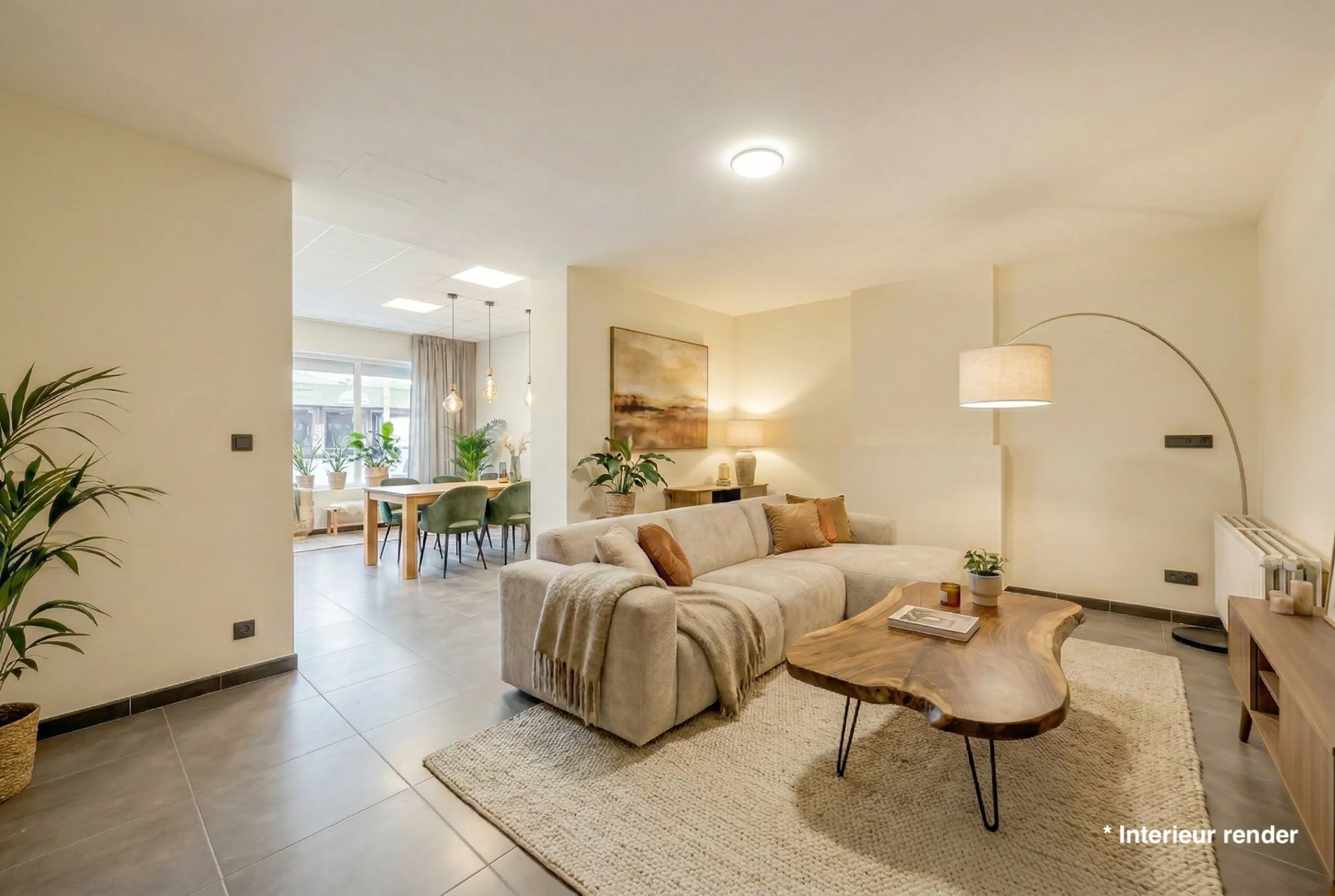 Op het gelijkvloers bevindt zich een ruime living van 54,52 m² met airco. Deze open leefruimte laat zich vlot indelen in een gezellige zithoek en een volwaardige eetplaats. Grote oppervlaktes zorgen voor een aangenaam gevoel van vrijheid. Aansluitend ligt de keuken van 7,56 m². Compact en praktisch ingericht, met alles binnen handbereik. Verder is er op deze verdieping een badkamer aanwezig. De indeling is logisch en functioneel, waardoor het dagelijkse comfort gegarandeerd is.