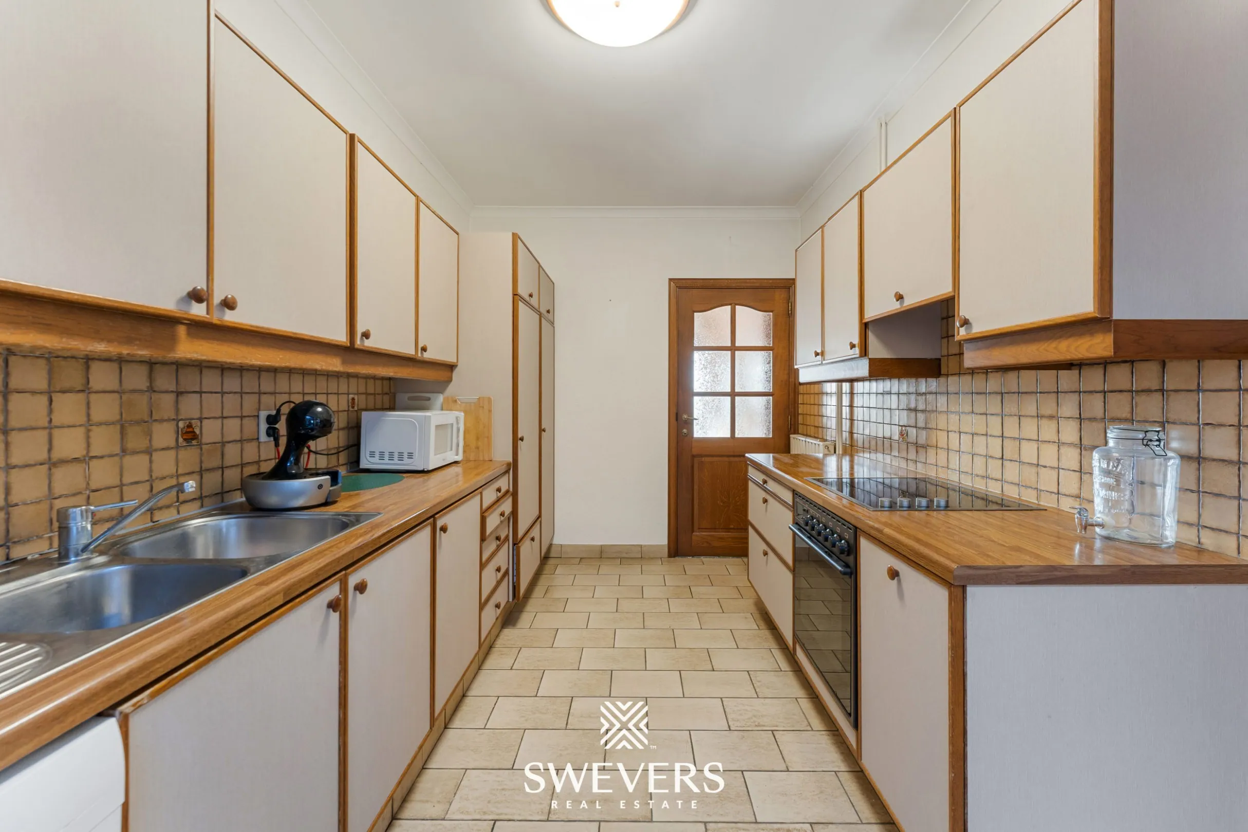 Aansluitend bevindt zich de keuken van 10,75 m² met een achterliggende eetkamer van 20m². Met een doordachte renovatie kan deze ruimte perfect worden omgevormd tot een moderne leefkeuken waar koken en samenzijn centraal staan.