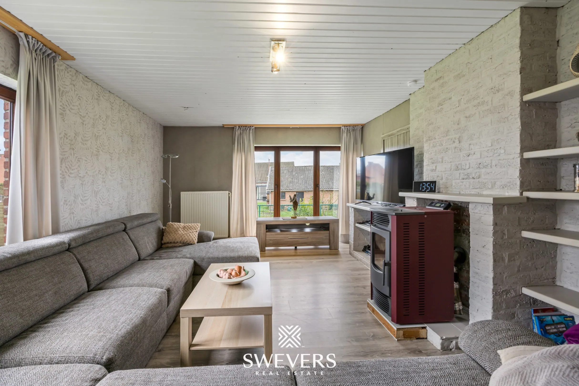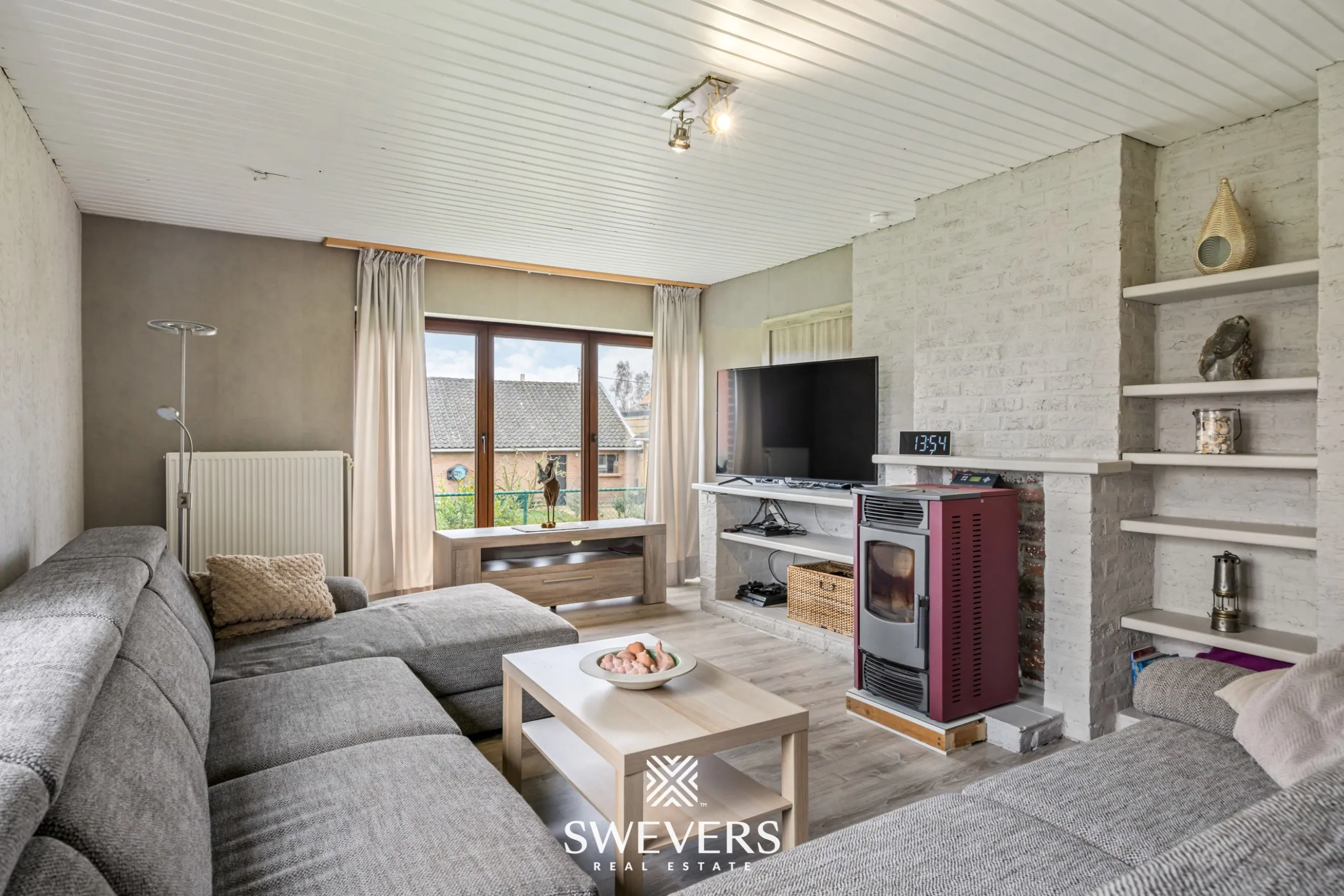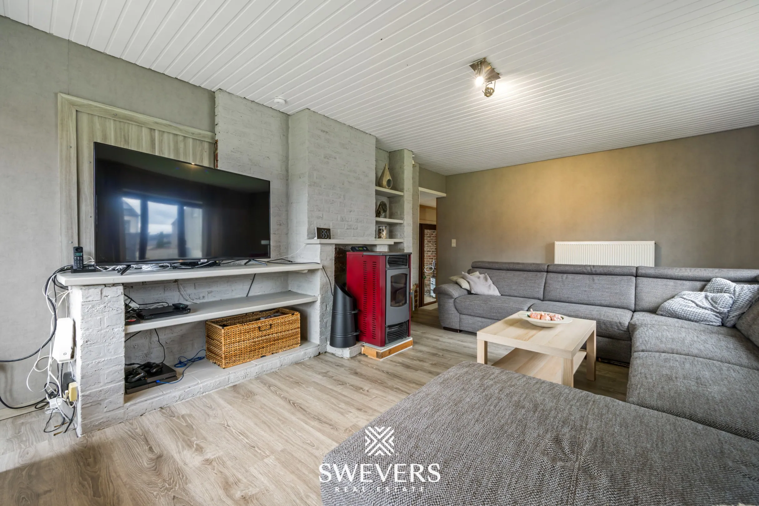 Binnenin ontdekt u een split-level indeling met heel wat potentieel. De lichtrijke leefruimte van 24 m² straalt gezelligheid uit, mede dankzij de aanwezige pelletkachel. Hier creëert u moeiteloos een warme thuis waar het aangenaam vertoeven is, zowel overdag als ’s avonds.