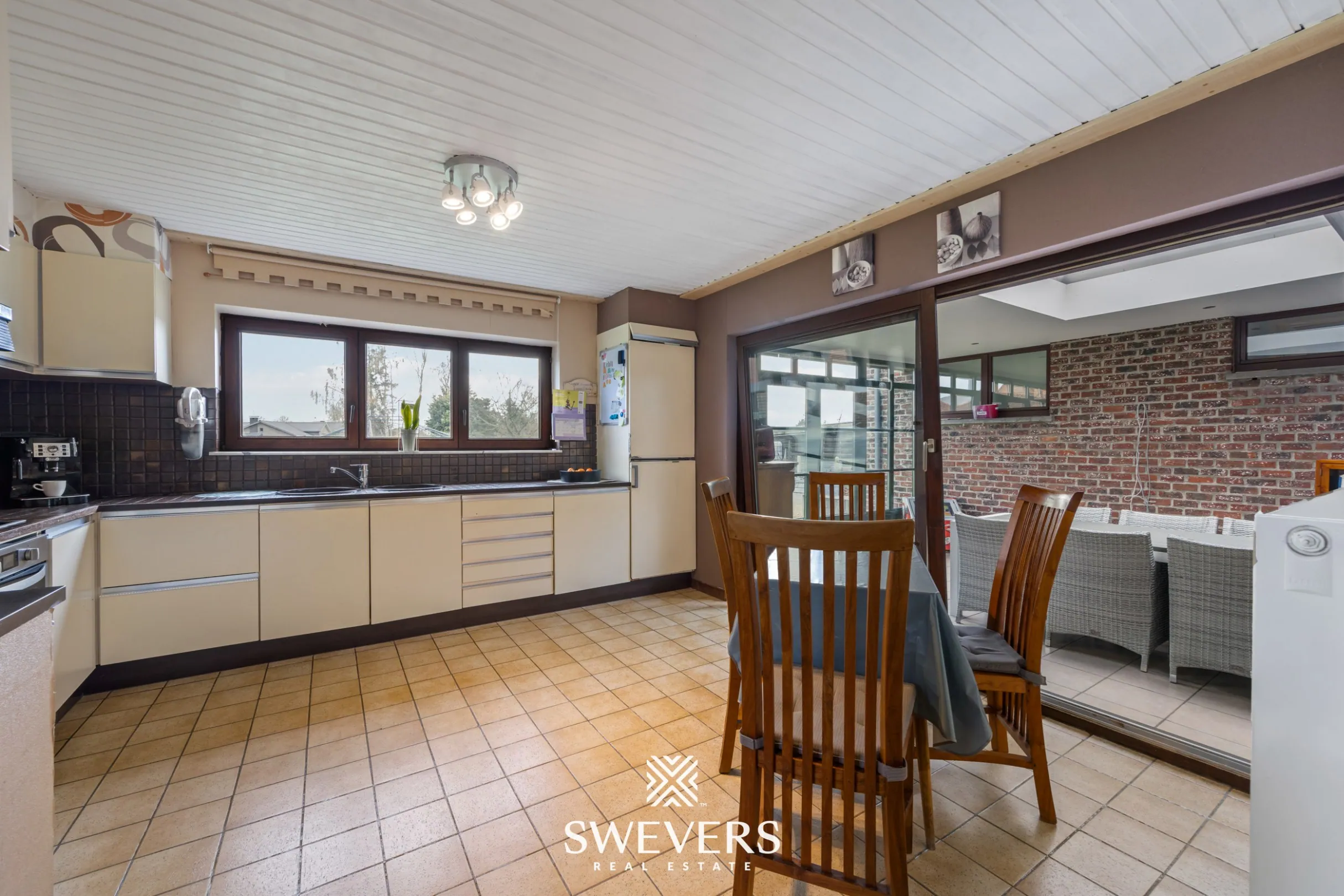 Aansluitend bevindt zich de keuken van 16 m², die tal van mogelijkheden biedt. Door bijvoorbeeld een veranda te integreren en te kiezen voor een kookeiland, kan u deze ruimte omvormen tot een hedendaagse open leefkeuken met een mooi zicht op de tuin.