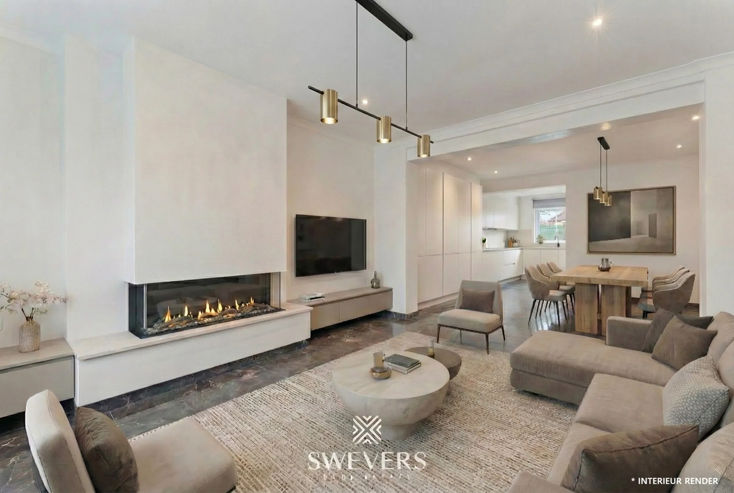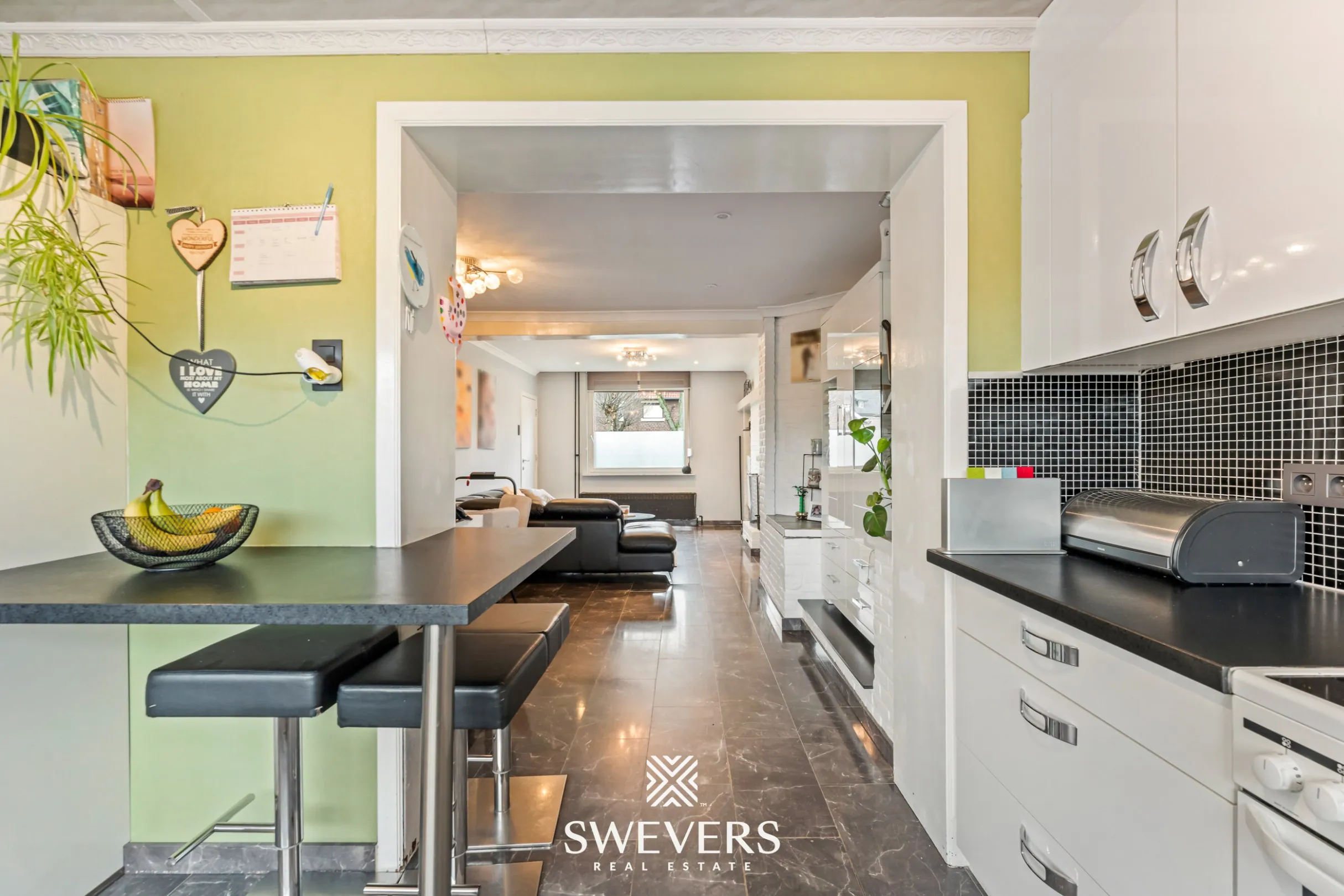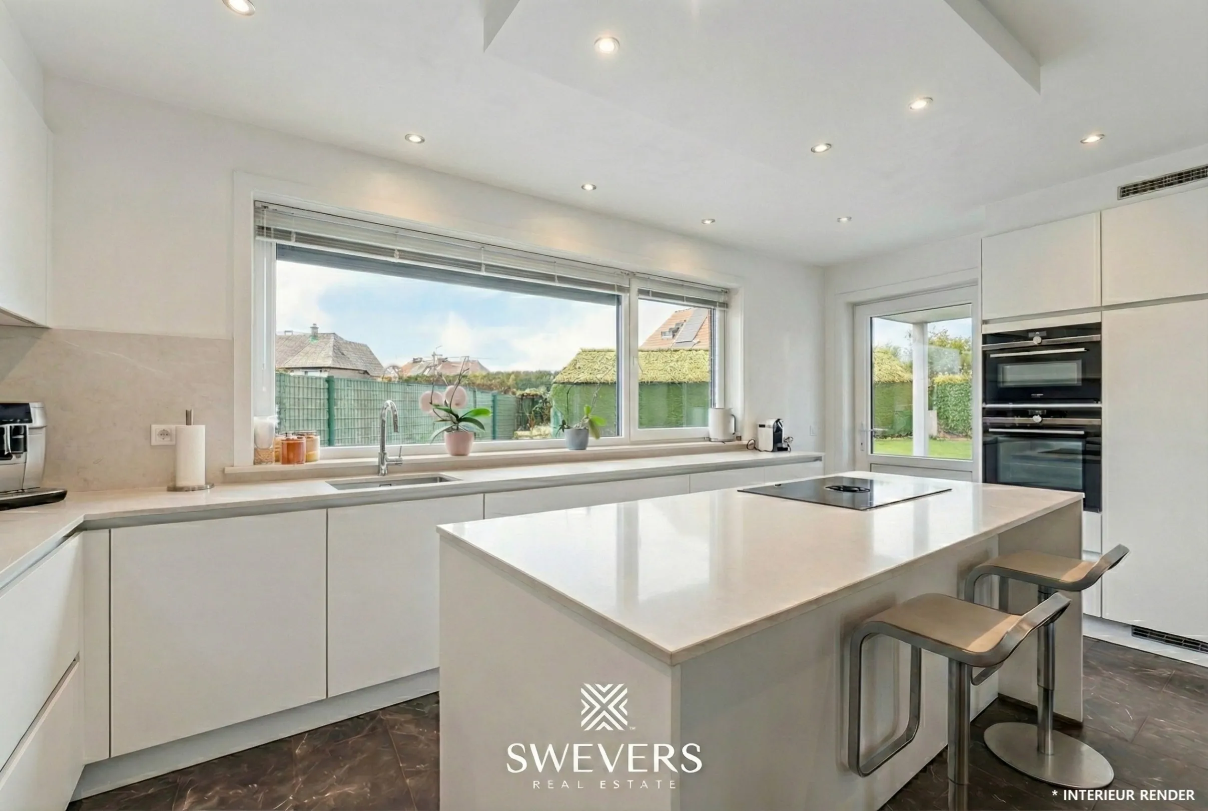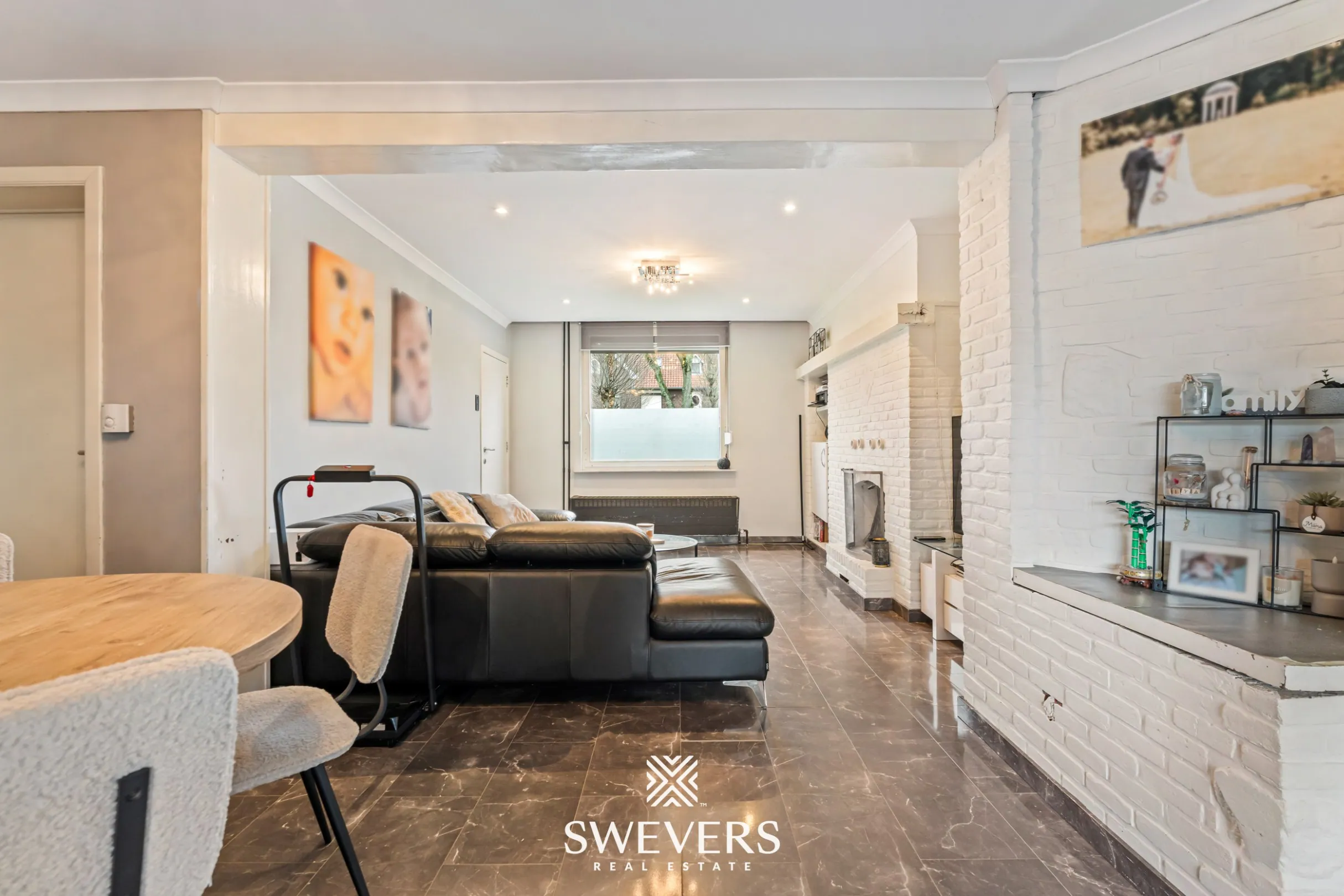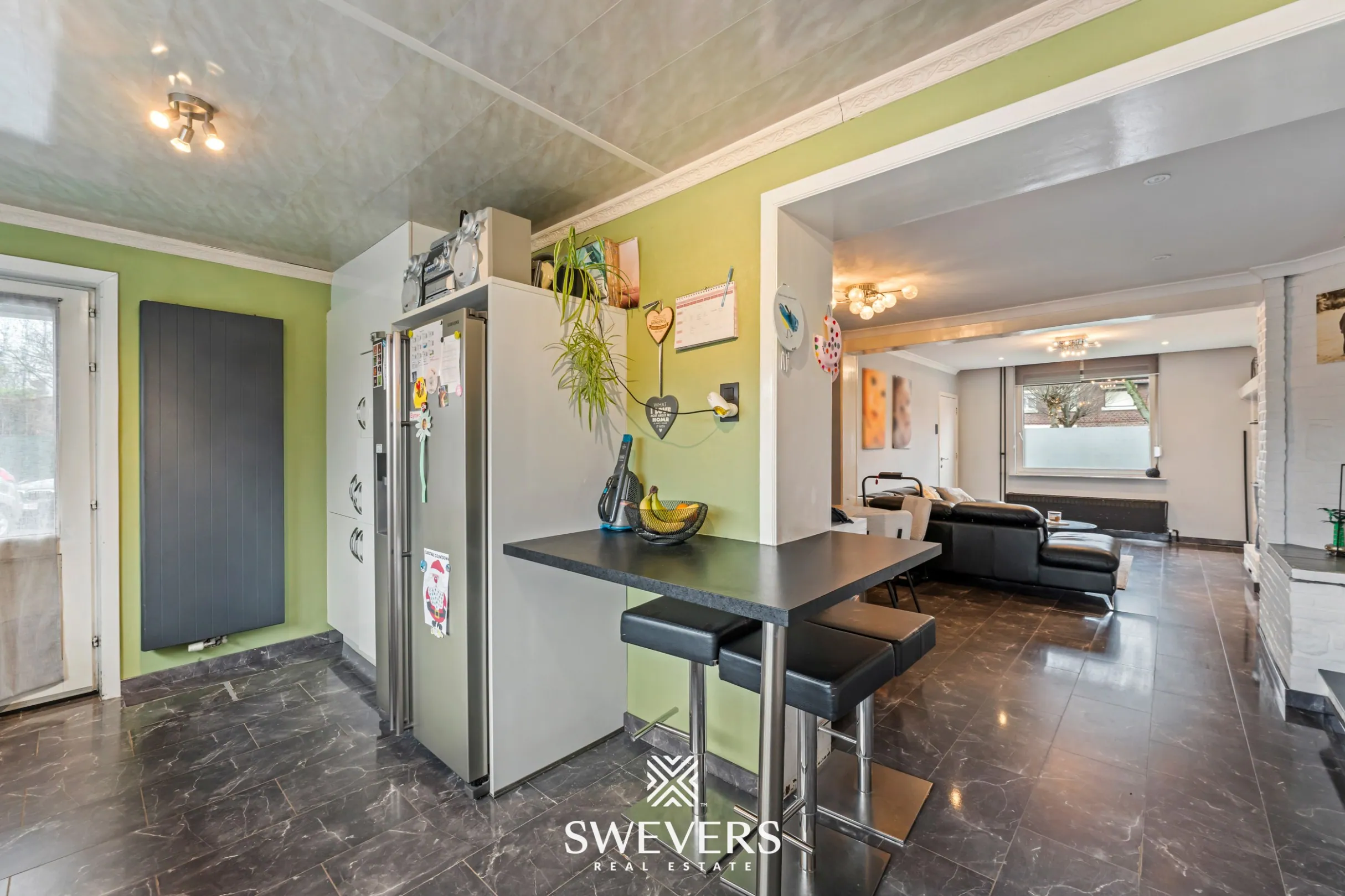 De leefruimte van 45 m² vormt het kloppende hart van de woning. Grote ramen laten overvloedig daglicht binnen en creëren een open, lichte sfeer waar je je meteen thuis voelt. Het is een plek waar gezellige avonden, feestelijke momenten en ontspannen weekends als vanzelf ontstaan. Je ziet het dagelijkse leven zich hier al afspelen.