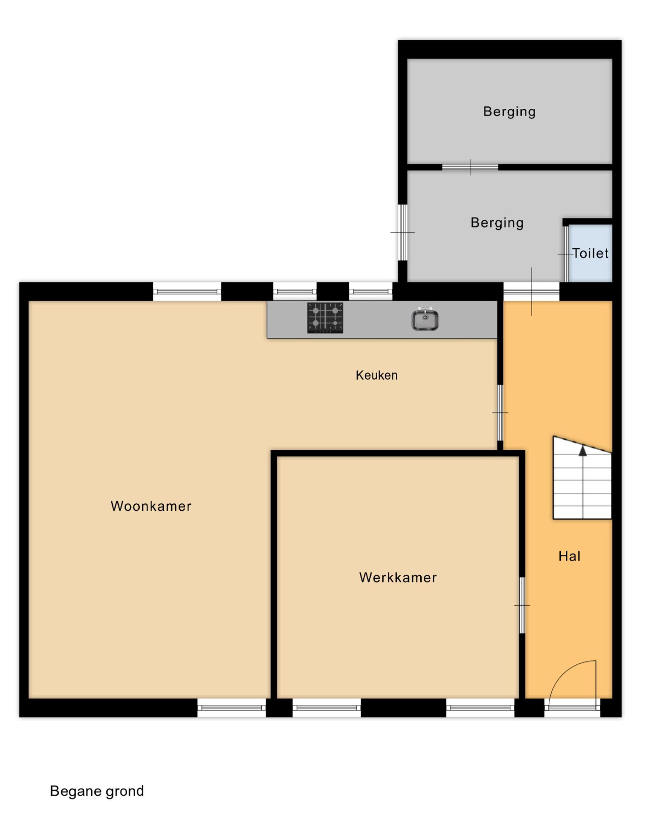 Op het gelijkvloers bevindt zich de leefruimte van 26,13 m². Deze ruimte biedt voldoende plaats voor een gezellige zithoek en een aparte eethoek. Grote raampartijen zorgen voor natuurlijk licht en een aangename connectie met de tuin. Aansluitend ligt de keuken van 9,75 m². De keuken is compact en functioneel ingericht, met mogelijkheden tot modernisering. Vanuit de keuken is er toegang tot de achterliggende buitenruimte, wat het dagelijks comfort verhoogt.