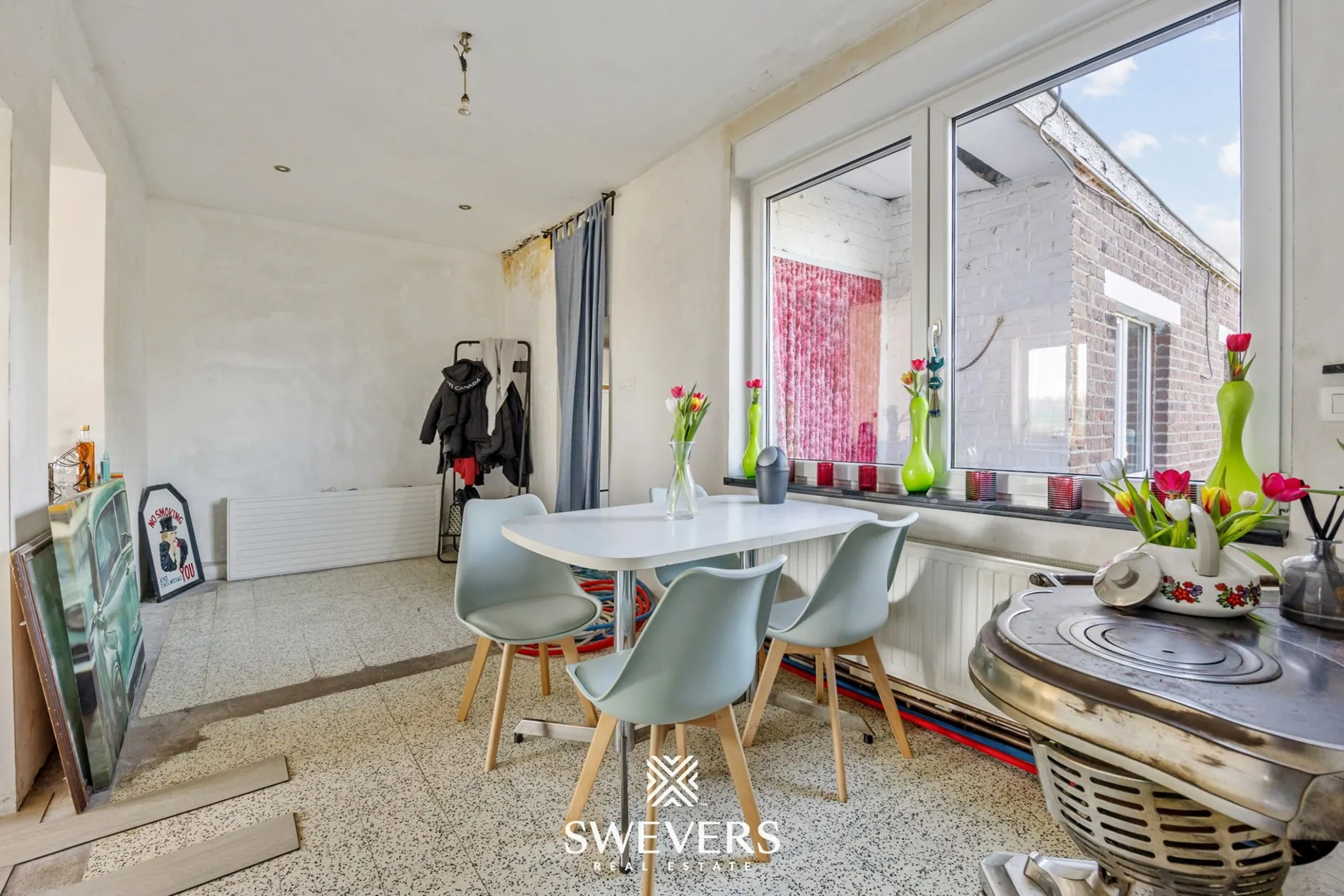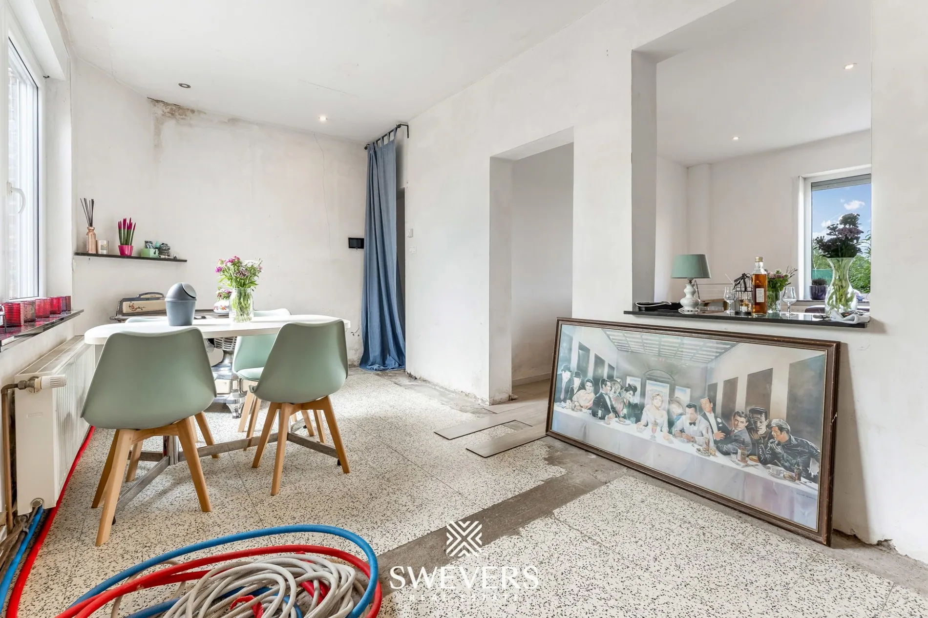De woning werd oorspronkelijk gebouwd in 1950 en werd in 2015 al voorzien van enkele vernieuwingen, waaronder een nieuw dak en nieuwe ramen. De totale bewoonbare oppervlakte bedraagt 136 m², verdeeld over drie bouwlagen. Aangezien de woning renovatie vereist, biedt dit een uitgelezen kans om het pand volledig naar eigen smaak in te richten.