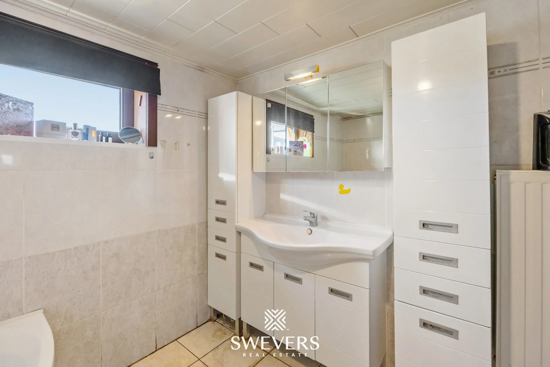 Een extra praktisch pluspunt is de aanwezigheid van rolluiken in de woning. Het merendeel van de ramen beschikt over elektrische rolluiken; enkel in de woonkamer is een manueel bedienbaar exemplaar voorzien. Dit verhoogt niet alleen het wooncomfort, maar draagt ook bij aan een betere isolatie en extra privacy. Daarnaast werden zonnepanelen reeds aangekocht en zullen deze binnenkort geplaatst worden.