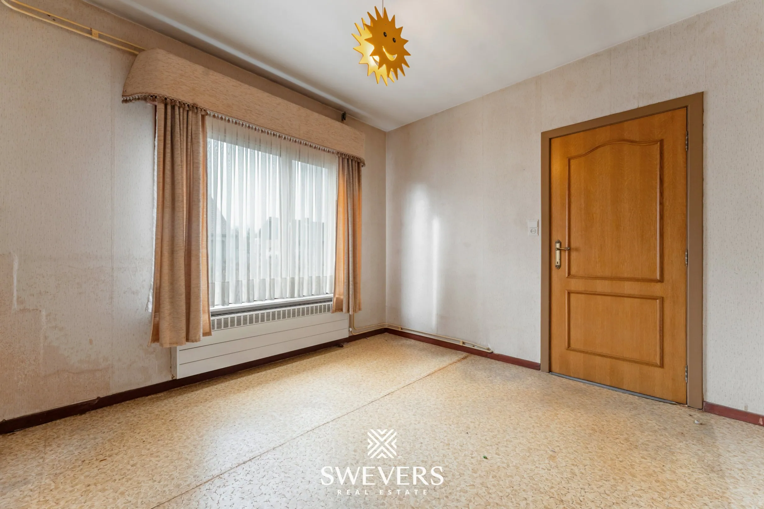 smaak. Renovatie is nodig, maar de mogelijkheden zijn des te groter. Bij het betreden van de woning komt u in de inkomhal die toegang geeft tot de leefruimtes. De woonkamer van 29 m² is opvallend ruim en geniet van aangename lichtinval. Dit is een plek waar u straks gezellige avonden kan doorbrengen met familie en vrienden.