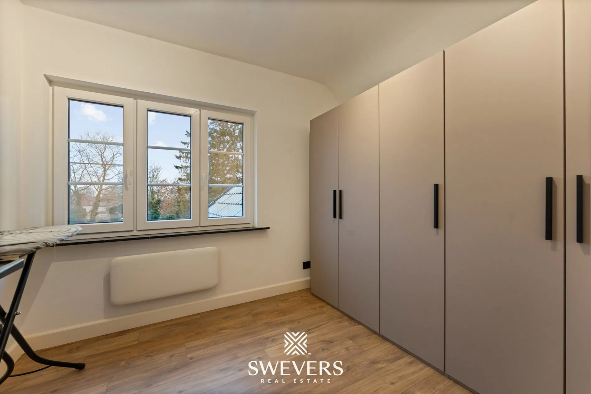 Op de verdiepingen vind je drie ruime slaapkamers van respectievelijk 16 m², 15,6 m² en 9 m². Elke kamer biedt voldoende plaats voor een volwaardige inrichting, of je nu kiest voor een master bedroom, kinderkamer of thuiskantoor. De badkamer is functioneel en verzorgd, helemaal in lijn met de rest van de woning.