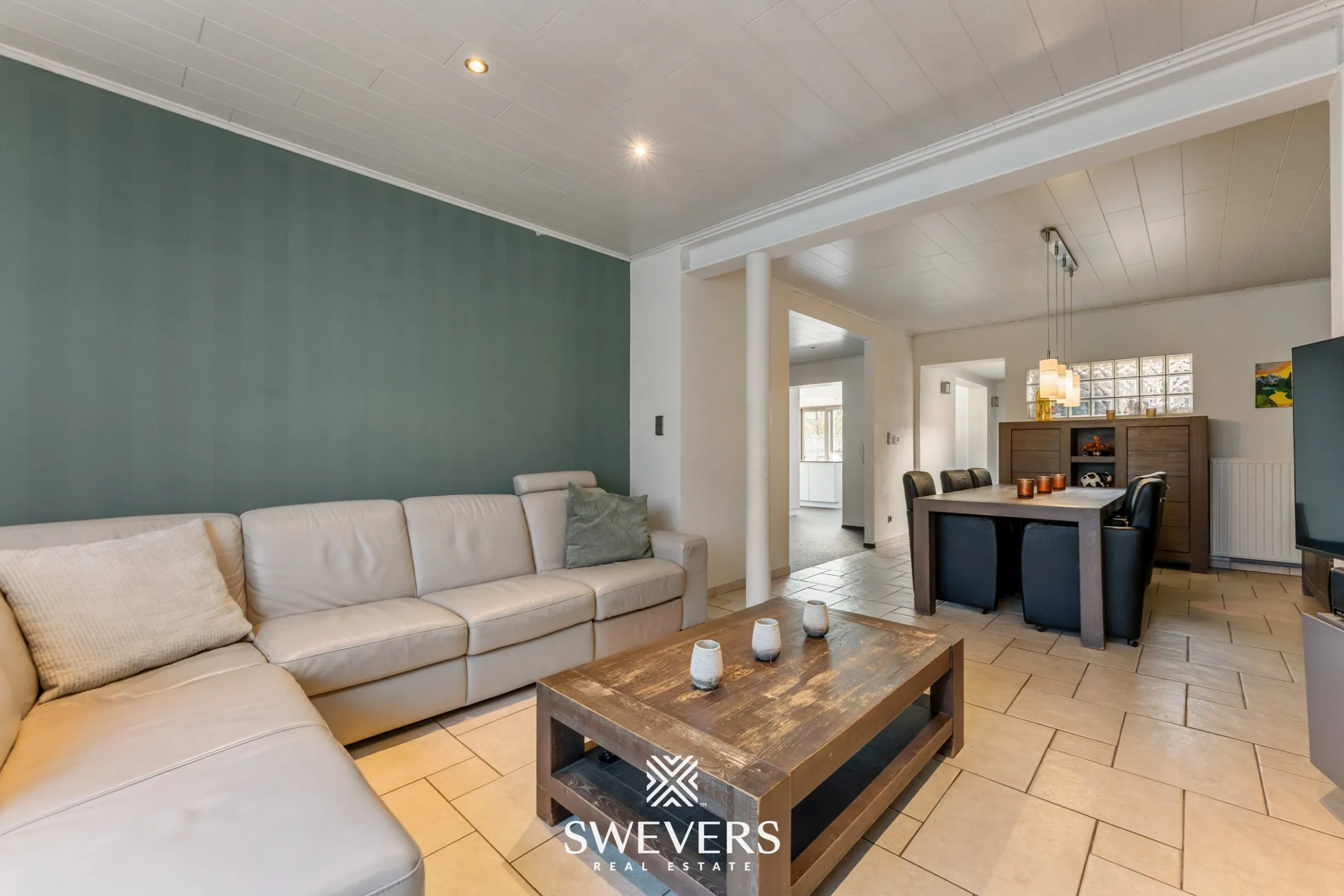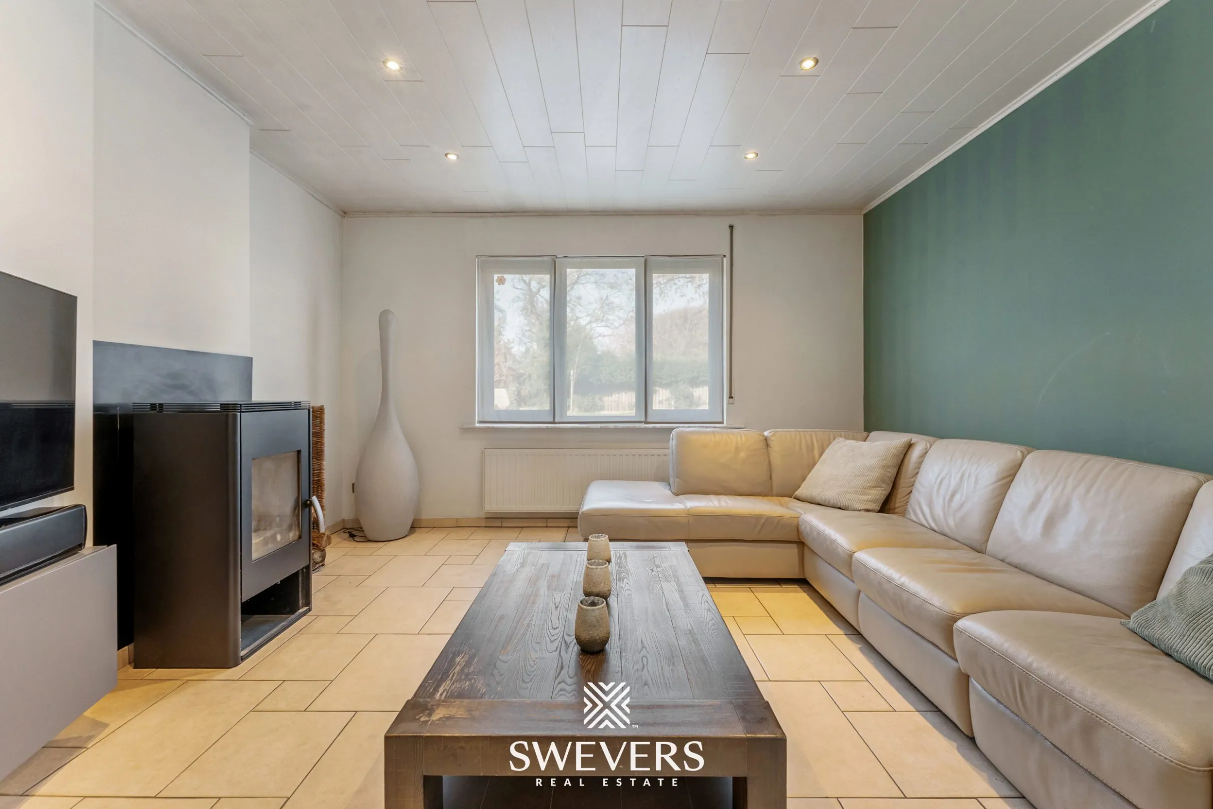 De leefruimte van 34 m² vormt het warme hart van het huis. Hier geniet je van gezellige momenten met familie of vrienden, terwijl het natuurlijke licht de ruimte een uitnodigende uitstraling geeft. Een rustige zondagochtend met een kop koffie in de hand in deze woonkamer voelt direct als thuiskomen.