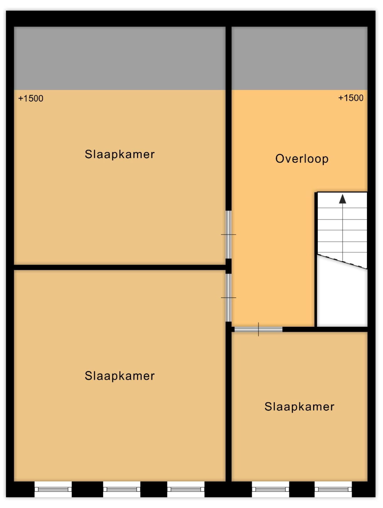 Op de tweede verdieping bevinden zich drie slaapkamers van respectievelijk 15,8 m², 13 m² en 8 m². Elke kamer is lichtrijk en biedt voldoende ruimte om er een volwaardige slaapkamer, dressing of hobbyruimte van te maken. Kinderen hebben hier hun eigen plek, terwijl u zelf kan genieten van een ruime master bedroom.