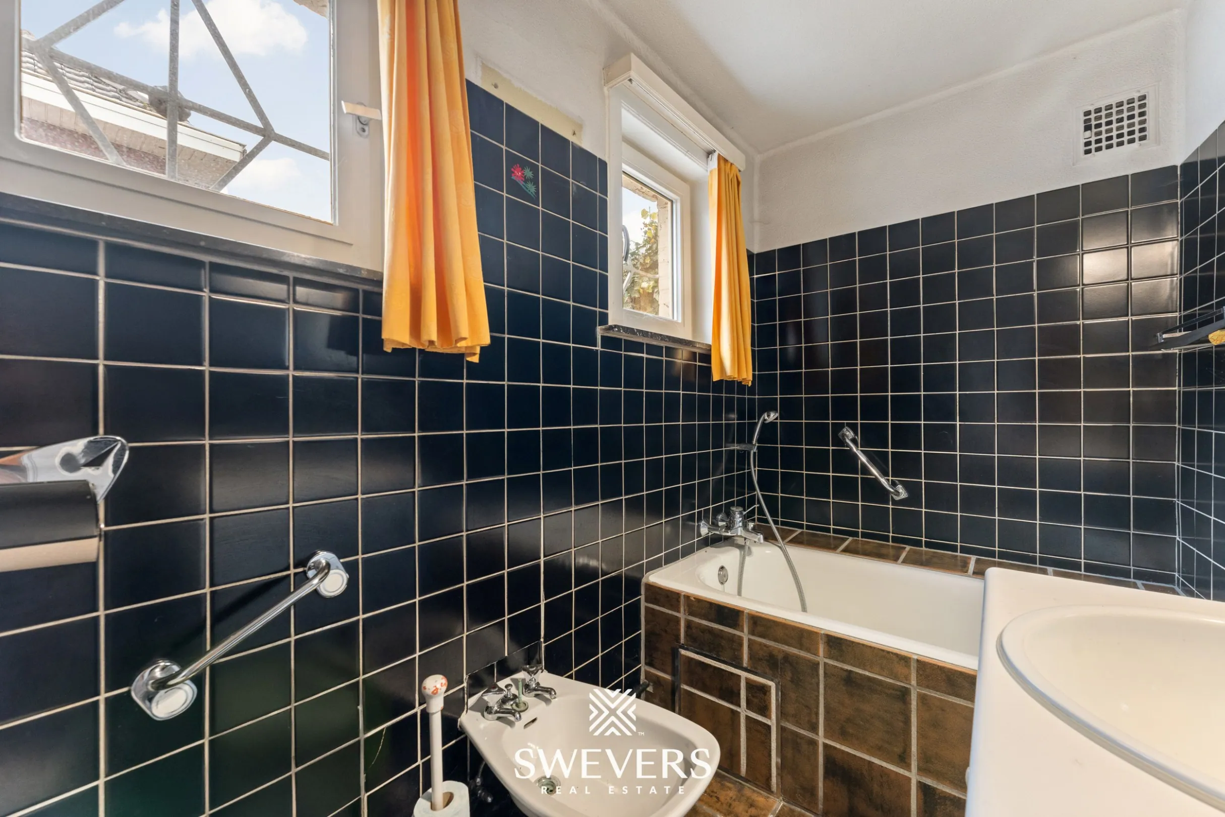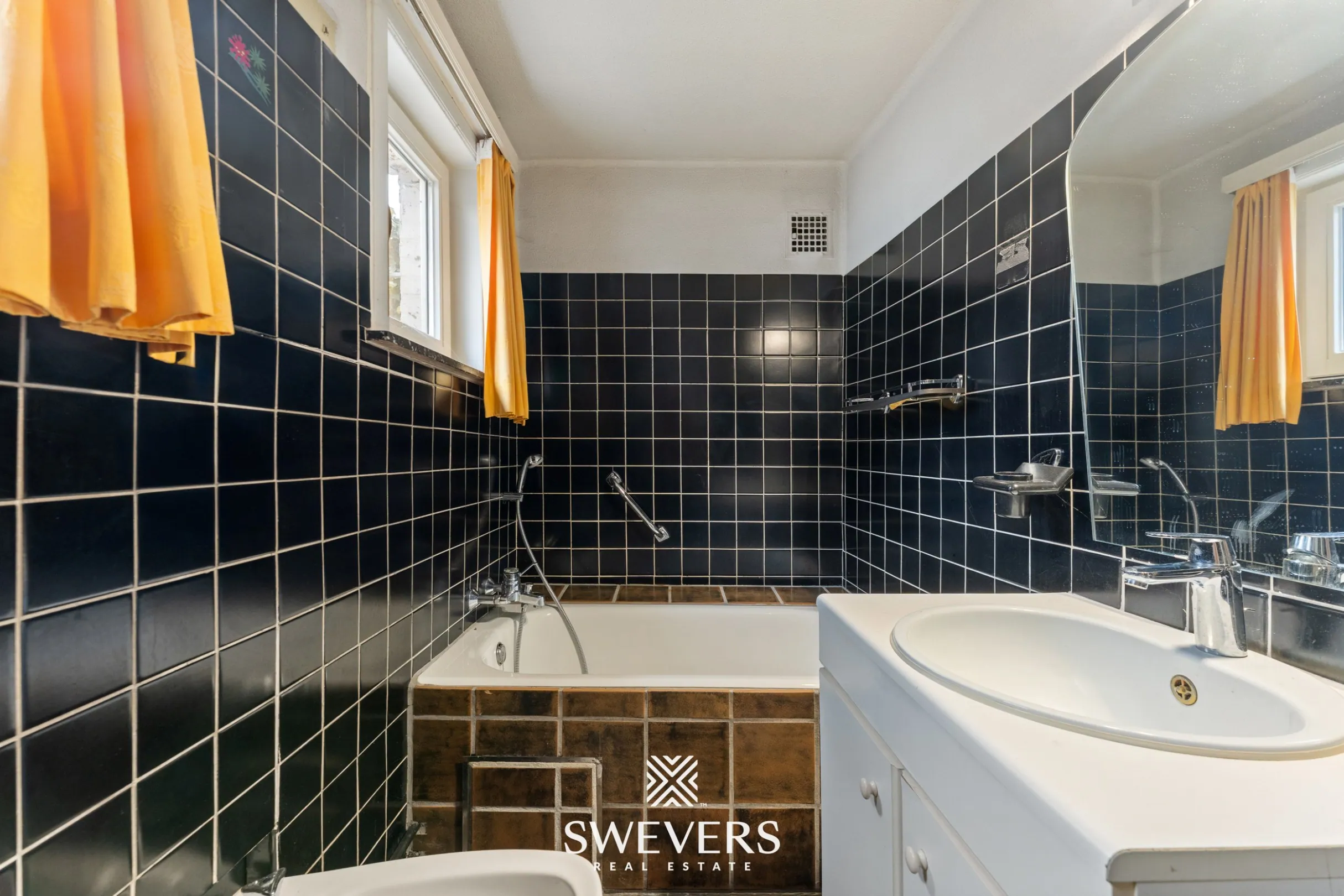 De woning telt vier slaapkamers op de eerste verdieping, met oppervlaktes van 14 m², 12 m², 9 m² en 16 m². Ideaal voor een gezin met extra mogelijkheid tot een thuiskantoor of hobbyruimte. De aanwezige badkamer kan u renoveren tot een comfortabele, hedendaagse wellnessplek waar u elke dag ontspannen start of afsluit.