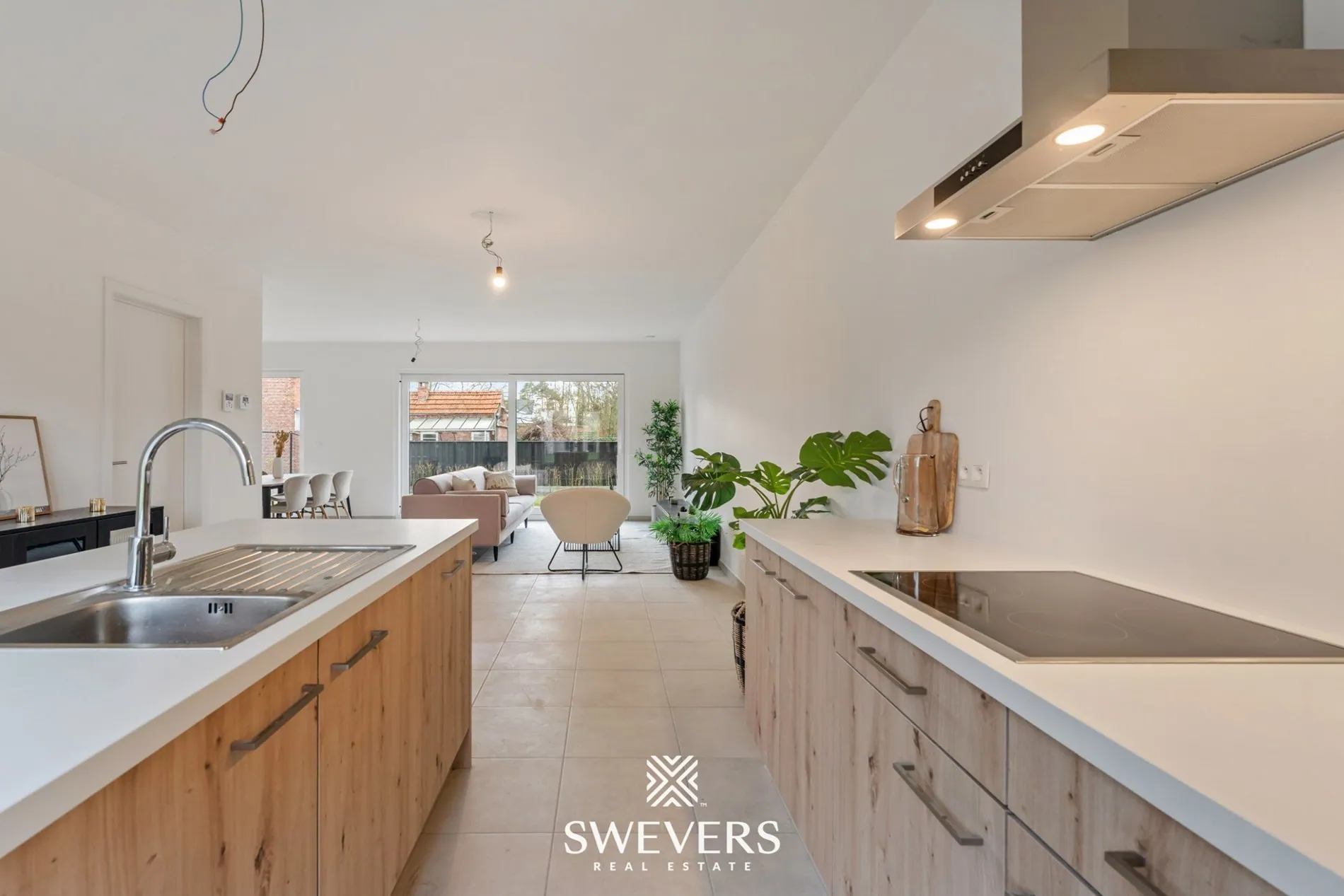 Bij binnenkomst op de gelijkvloerse verdieping word je meteen verwelkomd door een lichte en open leefruimte. De ruime woonkamer biedt plaats voor een gezellig salon en een eetkamer waar familie en vrienden moeiteloos samenkomen. Dankzij de grote raampartijen baadt de ruimte in natuurlijk licht en geniet je van een mooi zicht op de tuin. De open keuken, stijlvol en praktisch ingericht, is volledig uitgerust en biedt voldoende werkruimte. Vanuit de keuken heb je directe toegang tot het terras en de zonnige tuin – ideaal om op een zomerse avond buiten te tafelen. Verder is er op deze verdieping een gastentoilet en een handige berging voor extra opbergruimte.