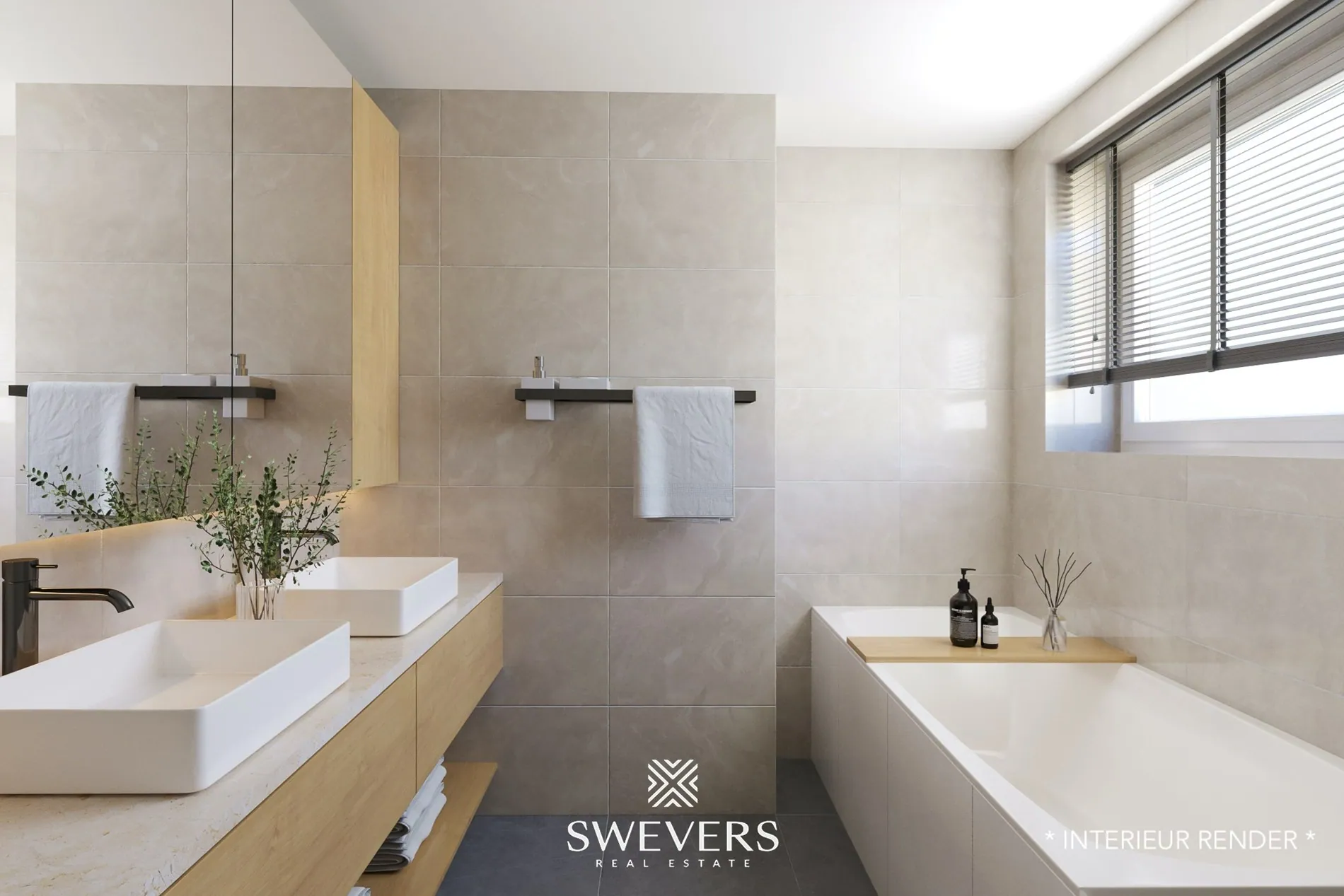 Op de tweede verdieping bevinden zich drie slaapkamers van respectievelijk 15,8 m², 13 m² en 8 m². Elke kamer is lichtrijk en biedt voldoende ruimte om er een volwaardige slaapkamer, dressing of hobbyruimte van te maken. Kinderen hebben hier hun eigen plek, terwijl u zelf kan genieten van een ruime master bedroom.