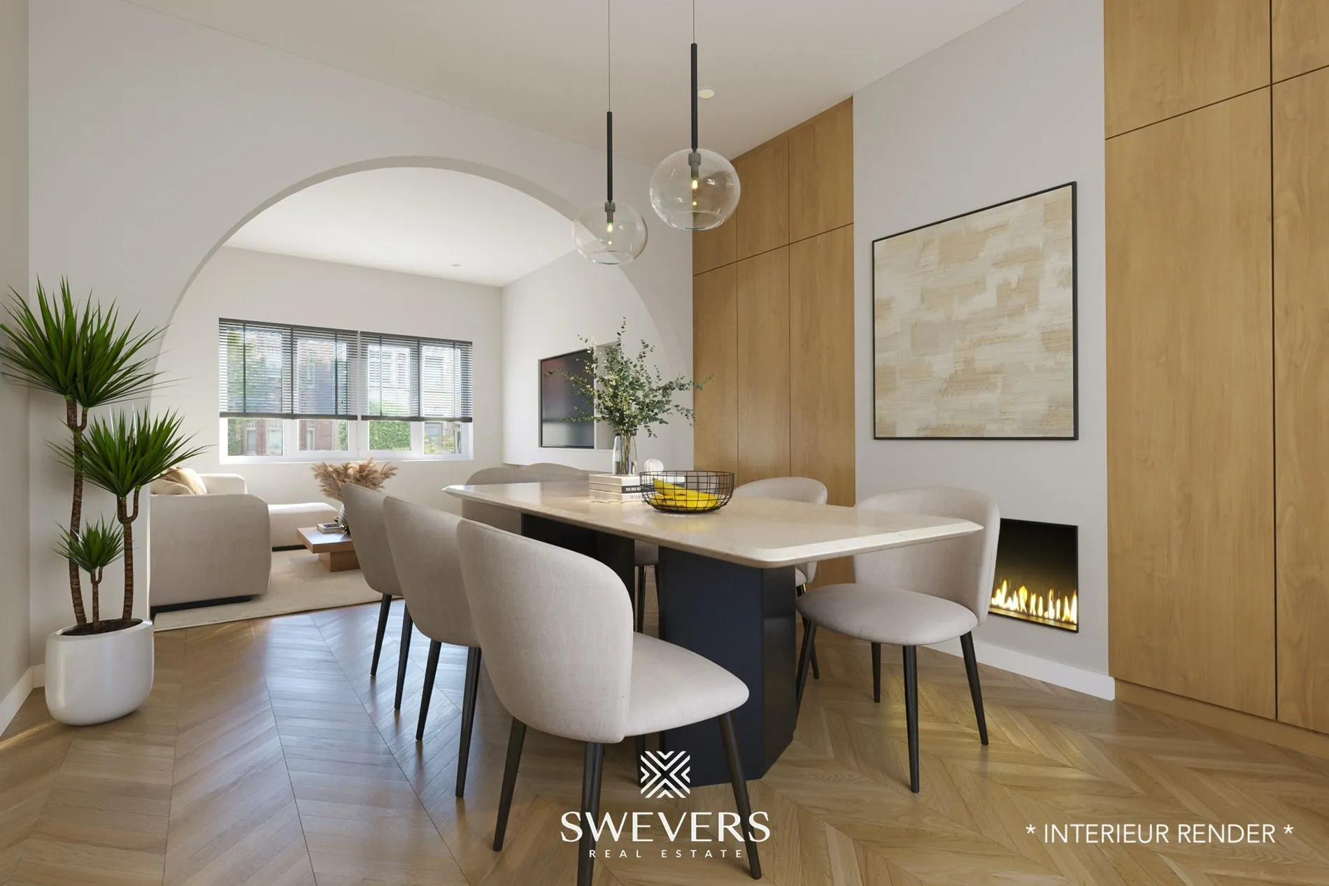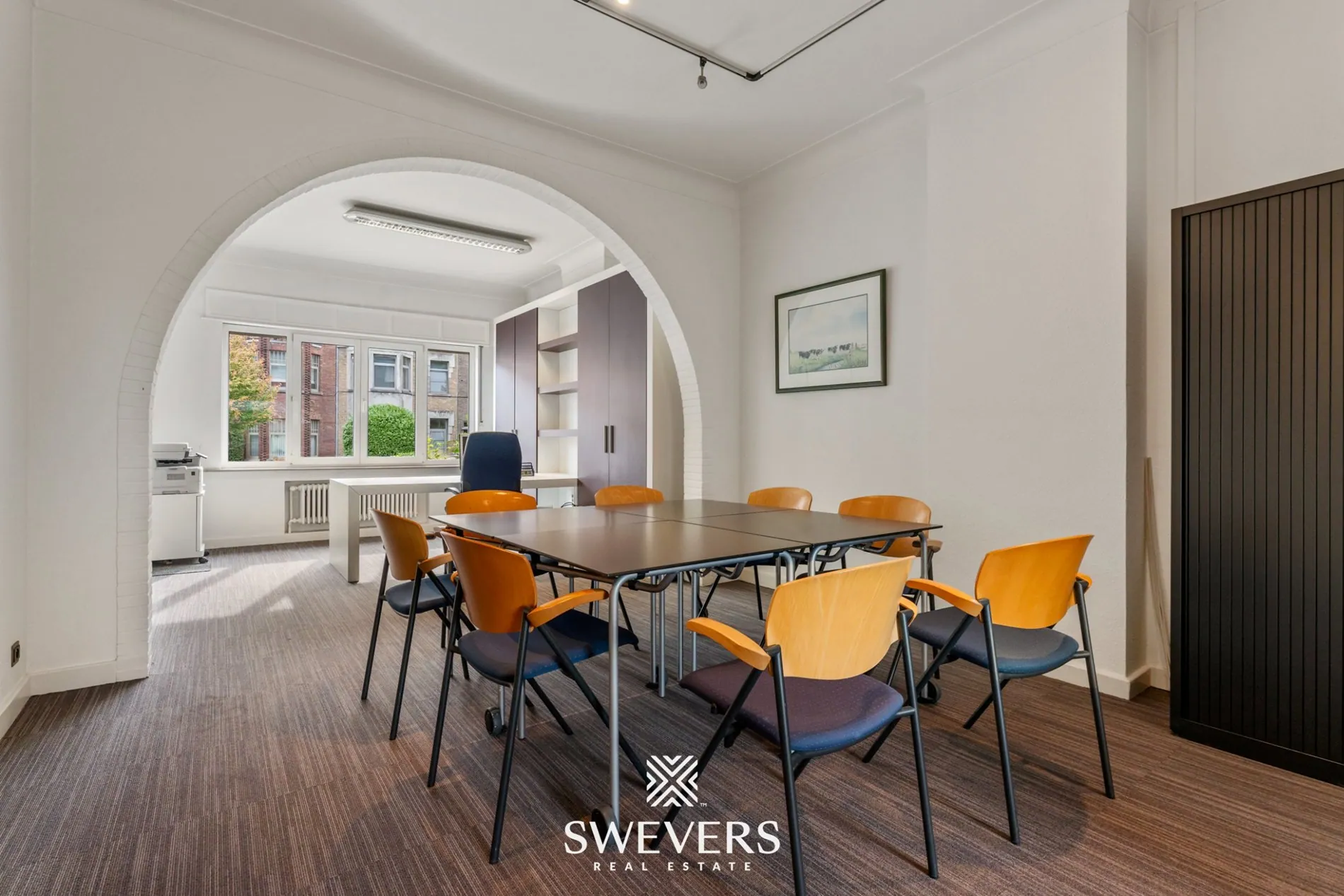 momenteel ingericht als kantoorruimte. Dat maakt dit pand bijzonder interessant voor wie een vrij beroep wil combineren met wonen. U ontvangt er cliënten in een professionele setting, terwijl uw gezin boven in alle rust kan genieten van de leefruimtes. Uiteraard kan het gelijkvloers ook volledig naar uw eigen woonwensen heringericht worden.