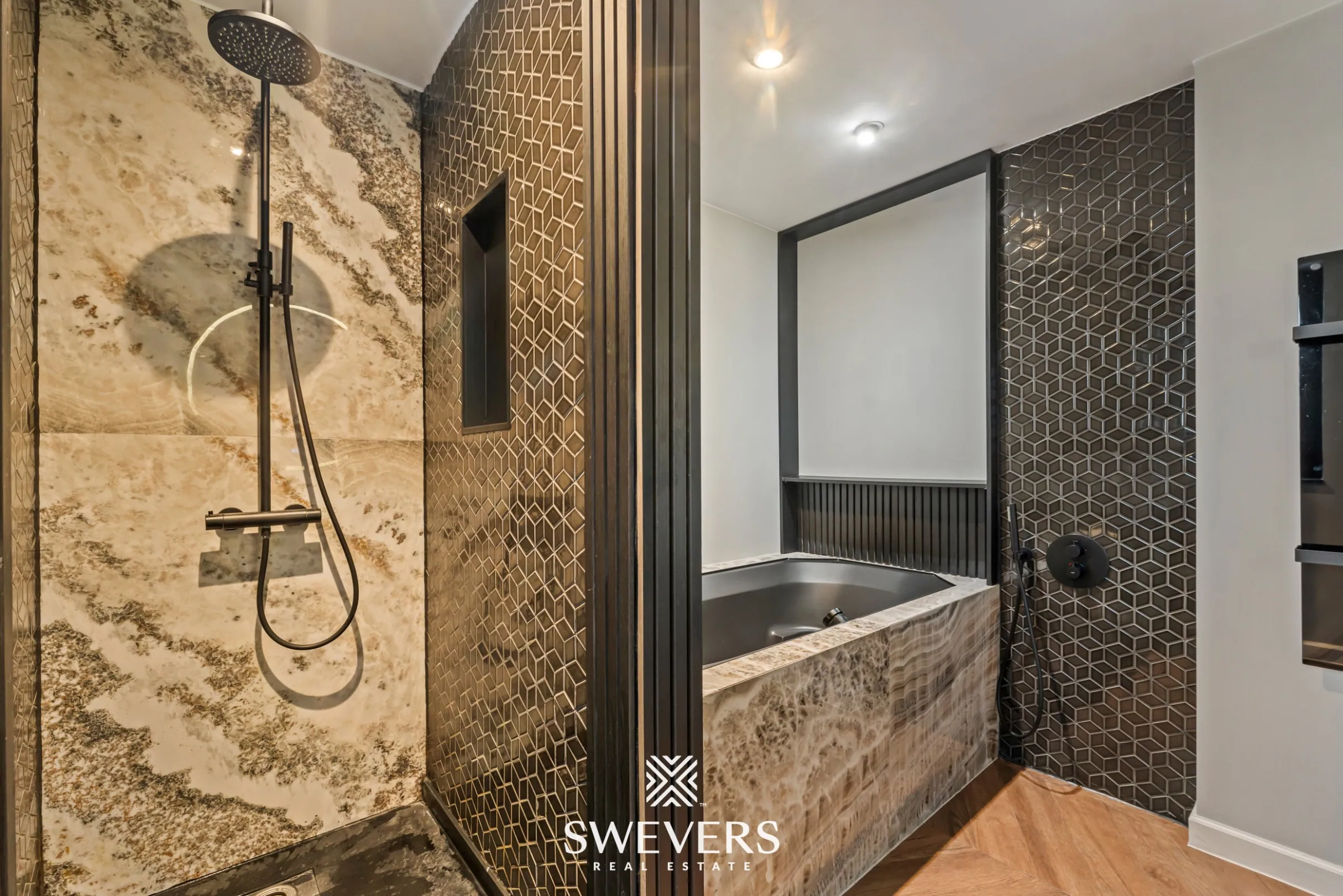 Op het gelijkvloers is een zonnescreen geplaatst voor extra comfort en zonwering. Op de eerste verdieping bevinden zich twee volwaardige slaapkamers van telkens 16 m². Deze verdieping leent zich perfect als slaapverdieping of kan flexibel worden ingericht naargelang de noden van het gezin. De tweede verdieping herbergt nog twee slaapkamers. De master bedroom van 25,60 m² is bijzonder ruim en beschikt over maatkasten in de dressing. De vierde slaapkamer van 16 m² is eveneens volwaardig. Op de derde verdieping (zolderverdieping) bevindt zich de luxueus ingerichte badkamer. Deze is uitgerust met een groot tweepersoonsbad met bubbelfunctie, verlichting en luidsprekers onder water. Hier wordt ontspannen een dagelijkse gewoonte.
