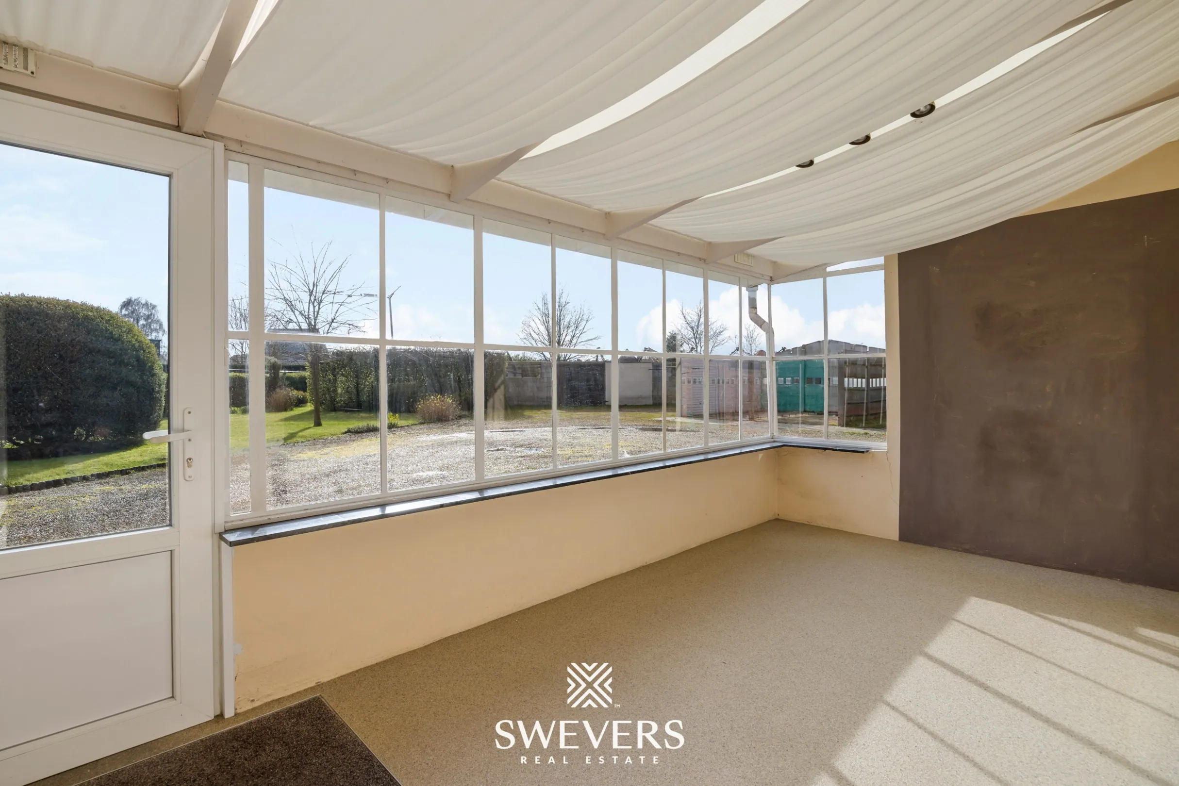 De aanwezige badkamer kan volledig vernieuwd worden volgens hedendaagse normen en comfort. Zo creëert u een stijlvolle en rustgevende plek die perfect aansluit bij uw persoonlijke voorkeuren. Een bijkomende troef is de veranda van 14 m², een aangename plek waar u het hele jaar door kan genieten van het uitzicht op de tuin. Hier komt u tot rust en ervaart u de ruimte en het groen rondom de woning. De tuin zelf is bijzonder ruim en geniet van een gunstige zuidwestelijke oriëntatie, wat zorgt voor veel zonlicht gedurende de dag. Dankzij het ontbreken van buren aan de linker- en achterzijde geniet u hier van maximale privacy en rust.