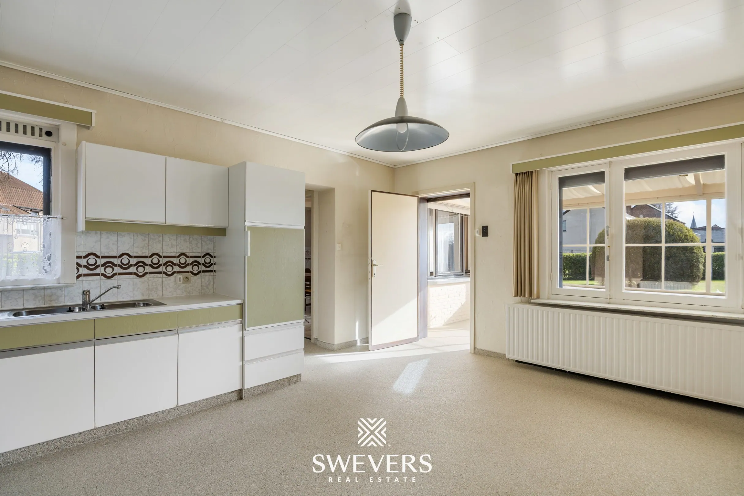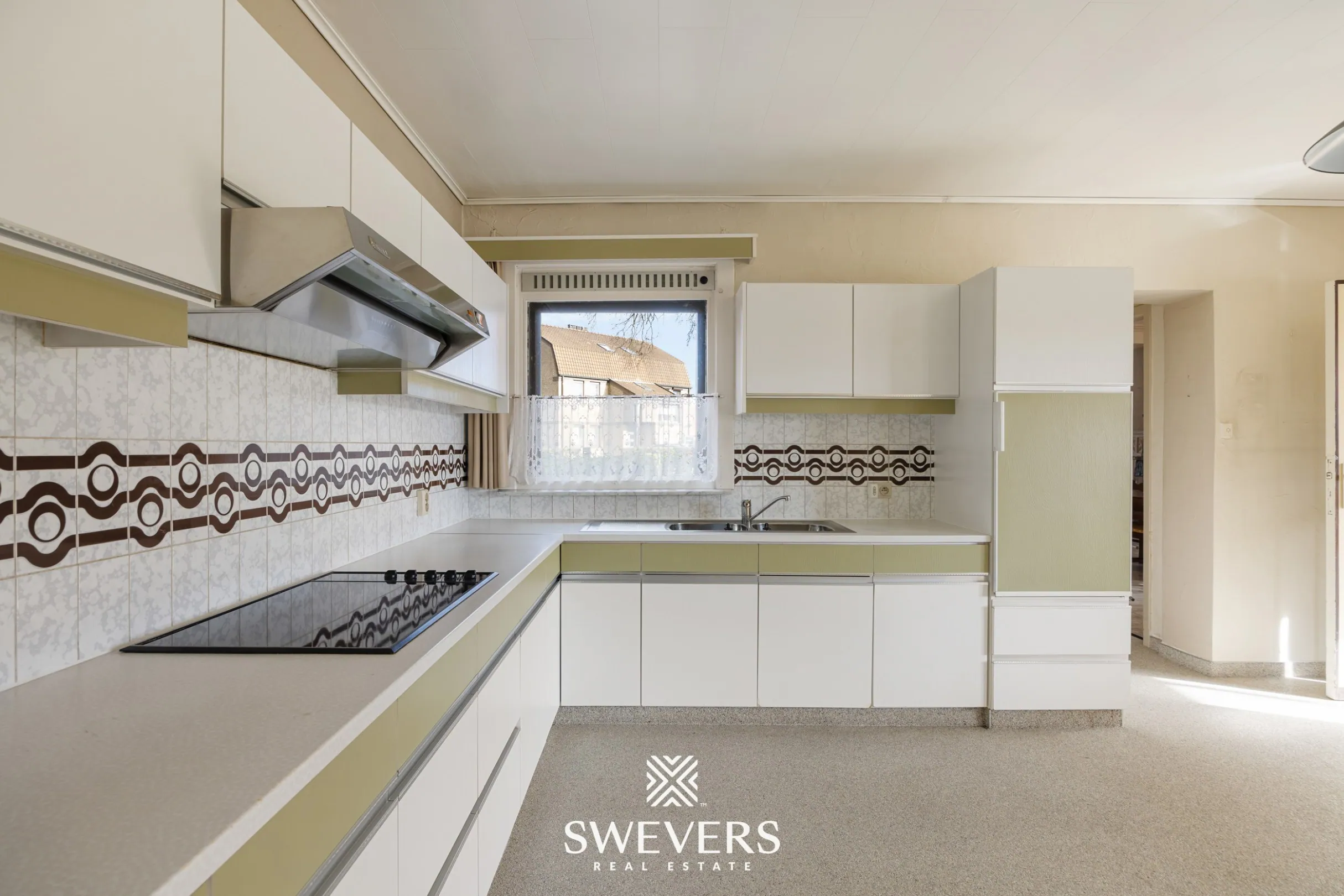 mogelijkheden om een warme en lichtrijke woonomgeving te creëren. Hier ziet u zich al gezellige momenten beleven met familie en vrienden, in een ruimte die perfect aansluit bij uw levensstijl. De aansluitende keuken van 22,5 m² biedt eveneens veel potentieel. Met een doordachte renovatie kan deze uitgroeien tot een moderne en functionele plek waar koken en samenkomen hand in hand gaan. Stel u een eigentijdse keuken voor met zicht op de tuin, waar elke dag aangenaam begint.