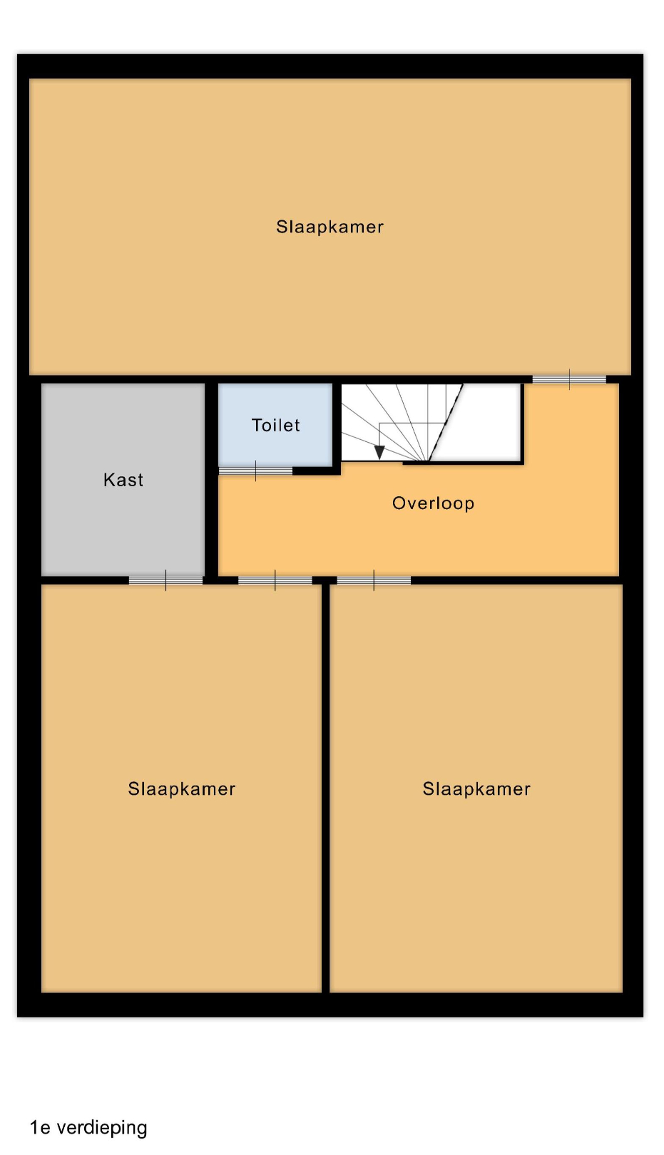 De eerste verdieping omvat het slaapgedeelte van de woning. Hier bevinden zich meerdere volwaardige slaapkamers, elk met een aangename oppervlakte. De grootste slaapkamer meet circa 27 m² en biedt ruimte voor een ruime inrichting. Daarnaast zijn er slaapkamers van ongeveer 18 m² en 17 m², ideaal als kinder-, gasten- of bureauruimte.