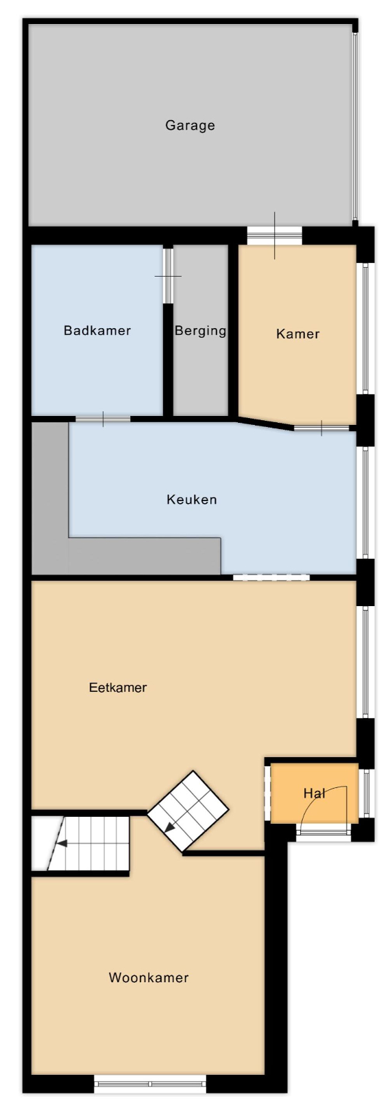 Verder is er gelijkvloers ook nog een badkamer aanwezig, voorzien van lavabo, douche en toilet met een aanpalende compacte wasplaats. Achteraan is er een garage van 17,66m² die je langs binnen kan bereiken. Perfect voor één wagen of extra bergruimte voor fietsen of tuinmateriaal.