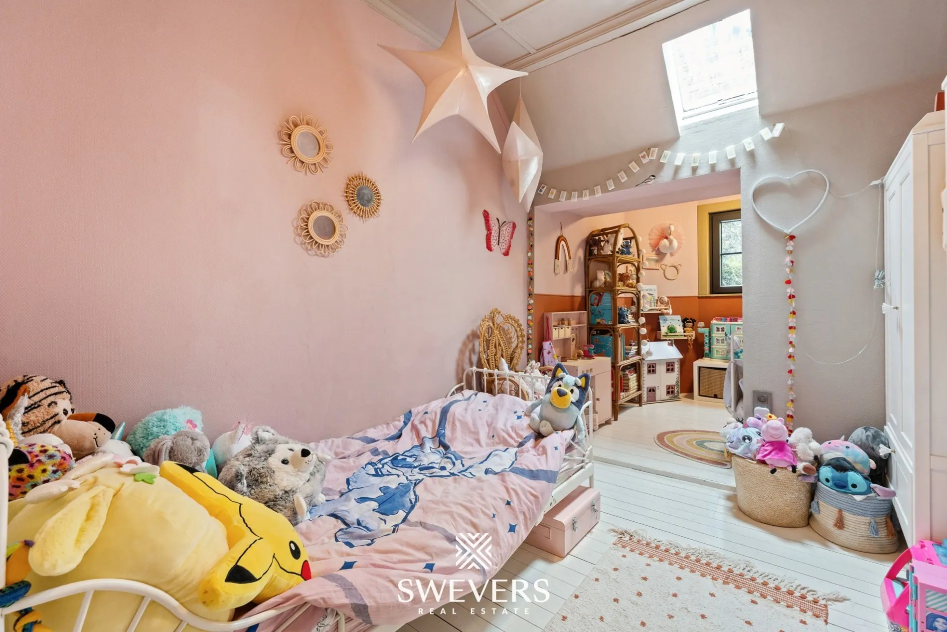 Via een luik krijgen we toegang tot een ruime zolderverdieping van 35,17m². Deze ruimte werd nog niet ingericht, maar biedt meer dan voldoende mogelijkheden. Een extra slaapkamer of hobbyruimte – met de juiste ingrepen kan hier een volwaardige extra kamer gecreëerd worden. Het schuine dak geeft extra charme, en mits de juiste afwerking wordt dit een echte troef.