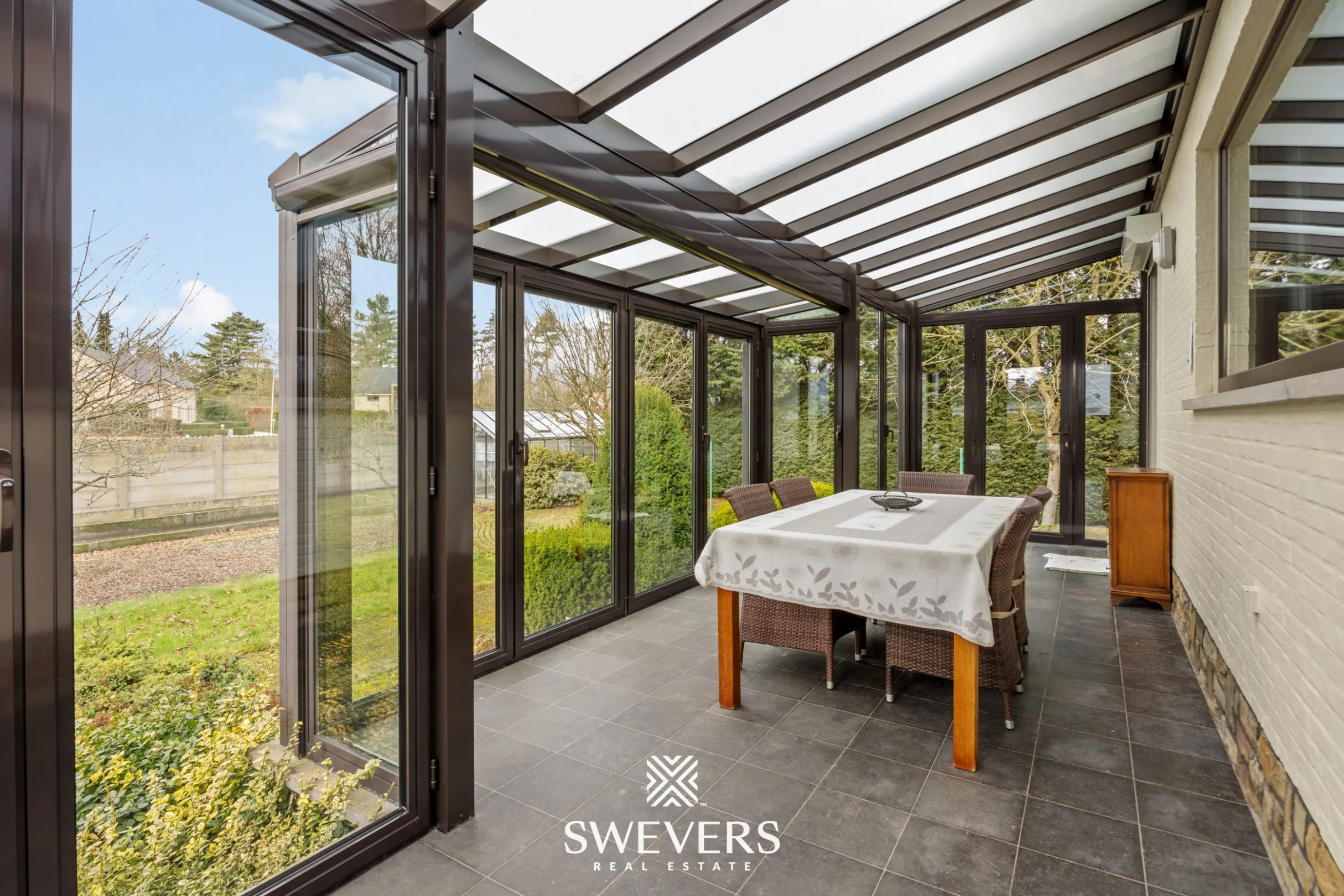De ideale westelijke oriëntatie zorgt voor een overvloed aan heerlijke zonnestralen. Wist je trouwens dat de veranda voorzien is van een complete elektrische zonnewering? De omheining en aanplanting rondom zorgt voor de rust en privacy. Jouw taak? Zalig genieten! Achterliggend grenst de tuin bovendien aan het gekende, rustige woonpark “Kayenberg”.