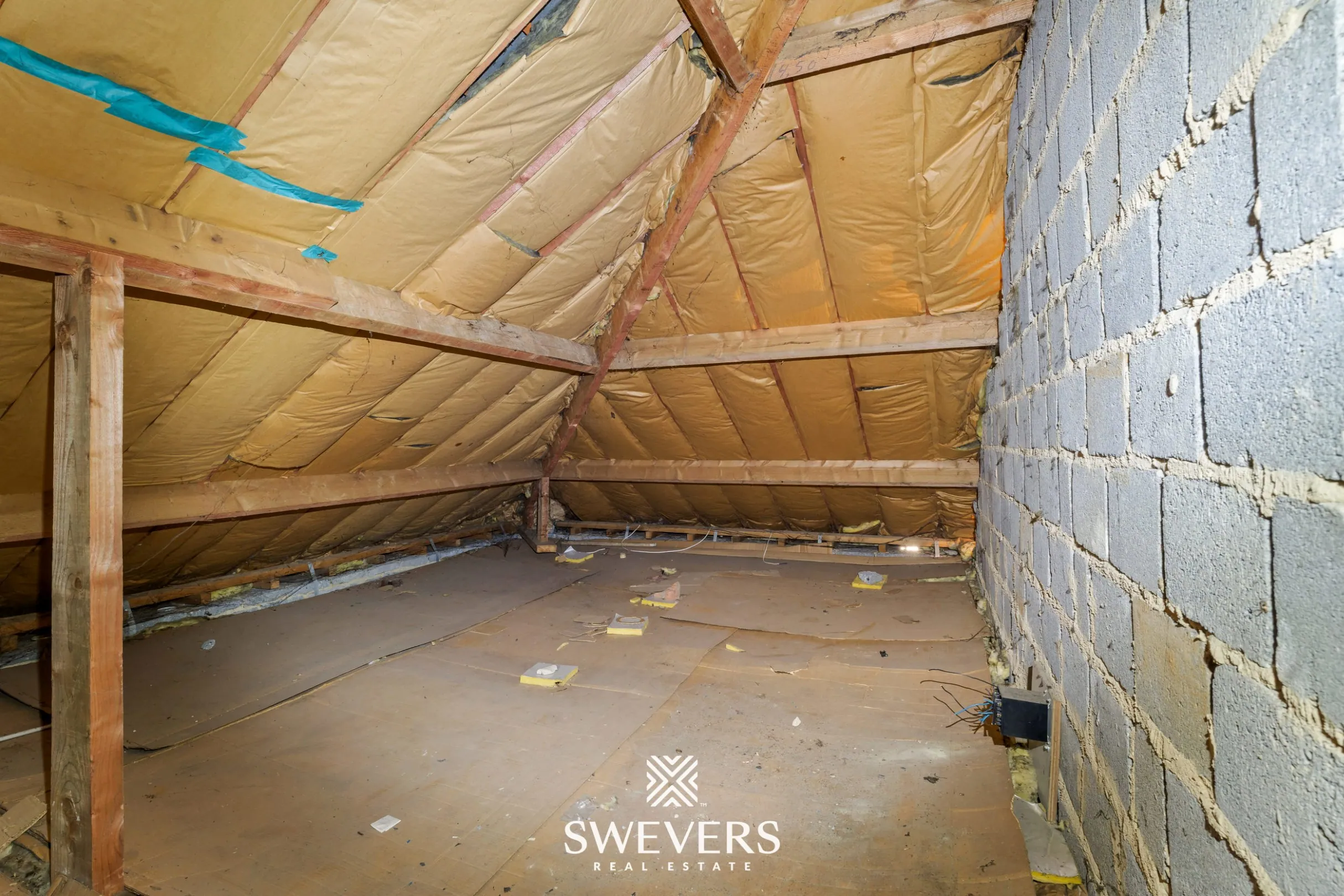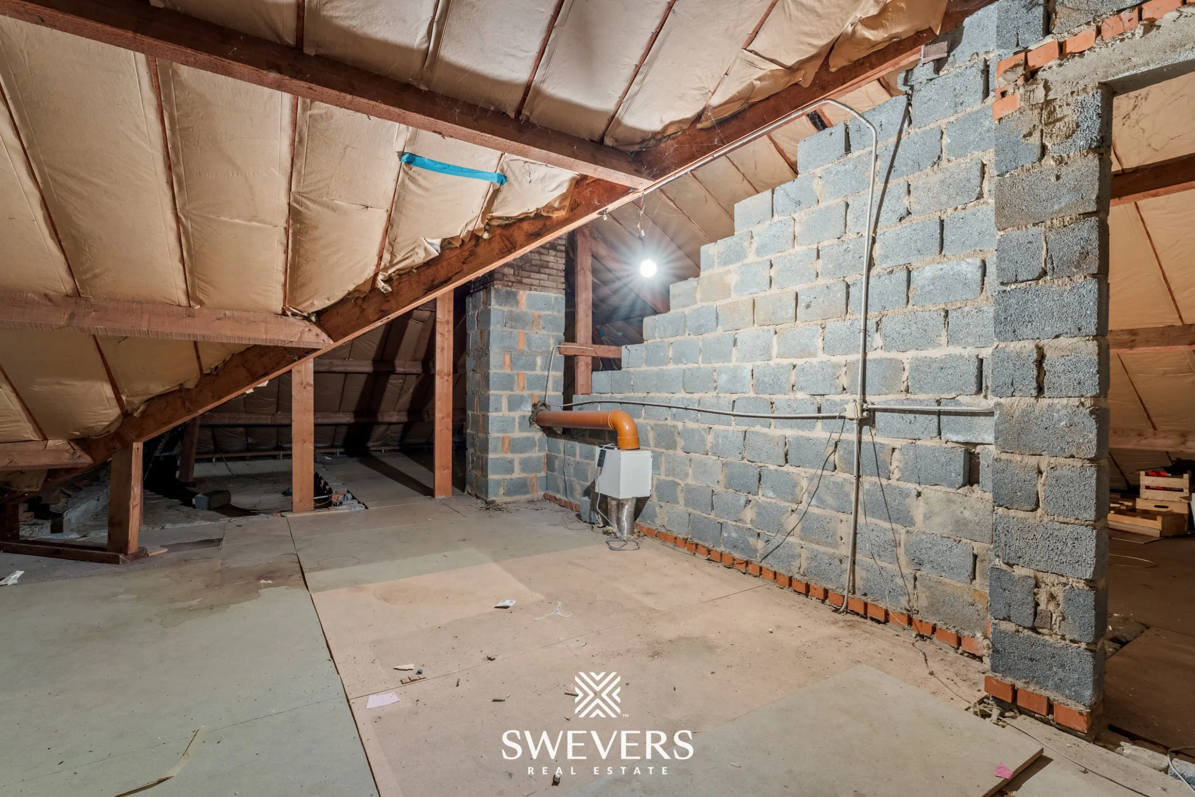 De aanwezigheid van een zolder biedt bovendien extra bergruimte. Afhankelijk van de wensen kan deze ruimte in de toekomst eventueel verder benut worden, bijvoorbeeld als extra opslagruimte.