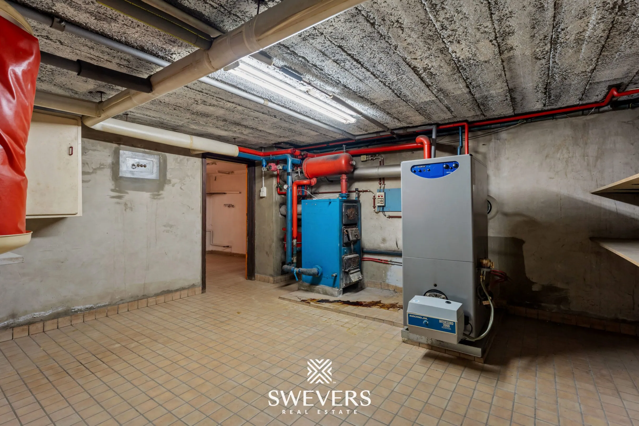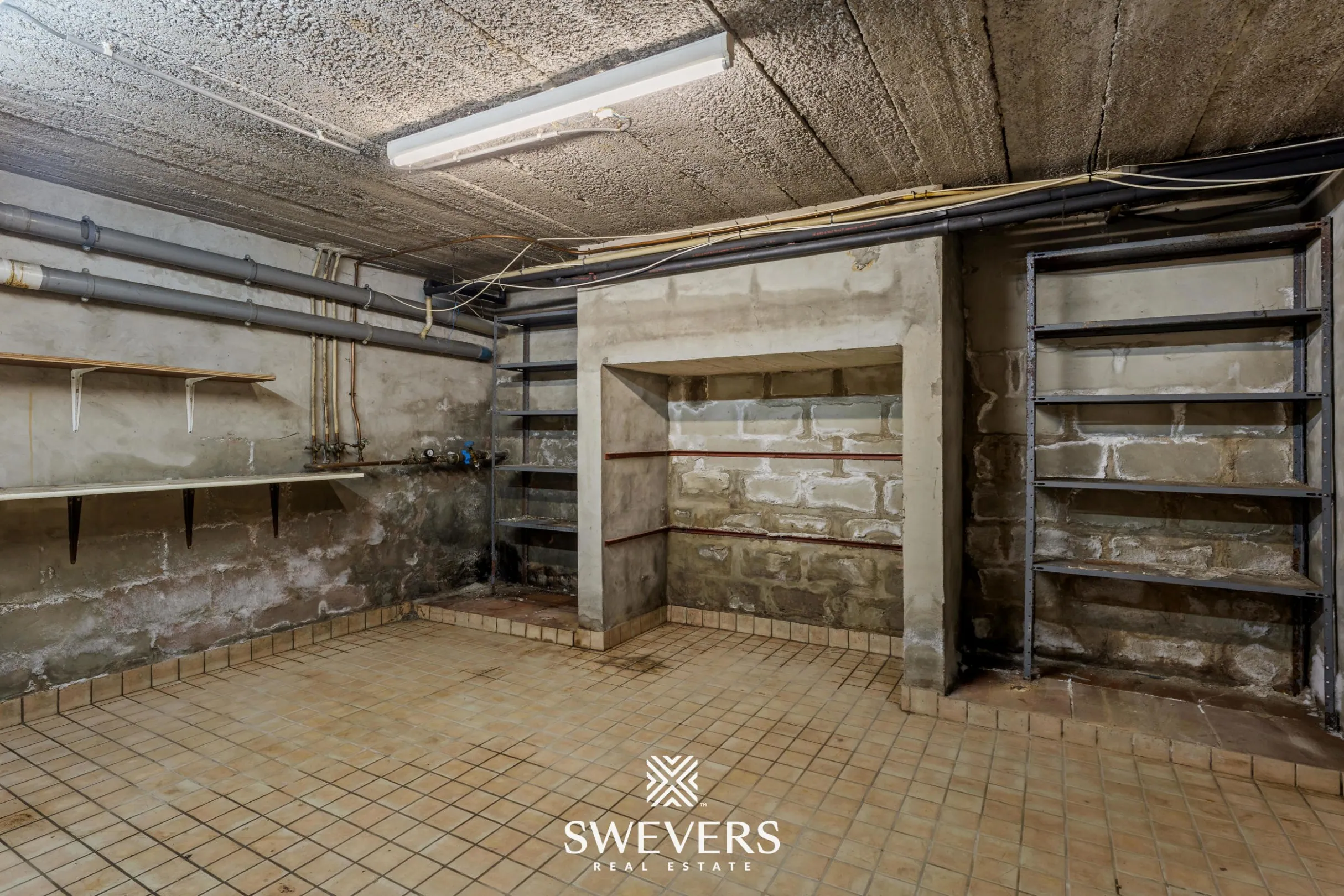 De woning beschikt over een kelderverdieping met een totale oppervlakte van 51,71 m². Deze verdieping omvat verschillende kelderruimtes, waaronder een voorraadkelder, werkruimte, waskelder en een ruimte voor de centrale verwarming. Daarnaast is er een zeer ruime garage aanwezig van 39,56 m². Deze biedt plaats voor een wagen en extra opslagruimte, ideaal voor fietsen, gereedschap of hobbymateriaal.