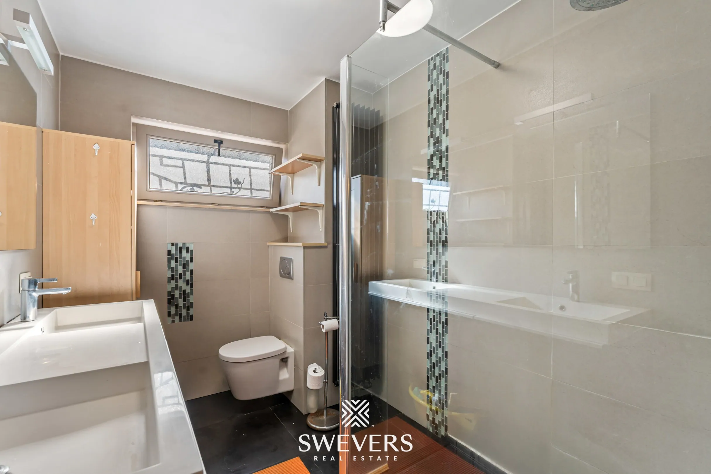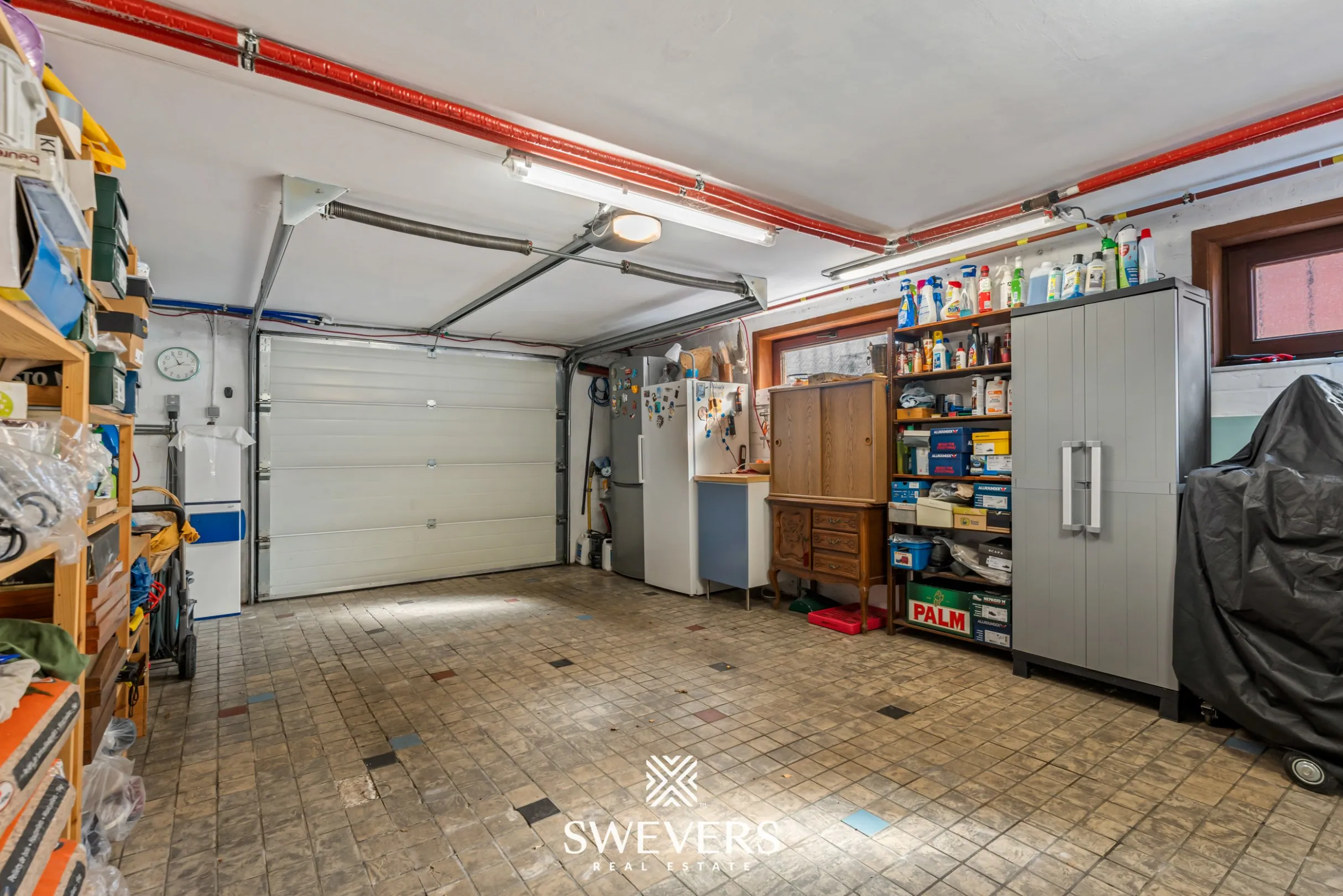 Ook aan bergruimte is er geen gebrek. De kelder van 40 m² biedt tal van opslagmogelijkheden. Daarnaast beschikt de woning over een inpandige garage met sectionale poort, wat zorgt voor extra gemak en veiligheid. Rolluiken en airconditioning verhogen bovendien het dagelijkse wooncomfort.