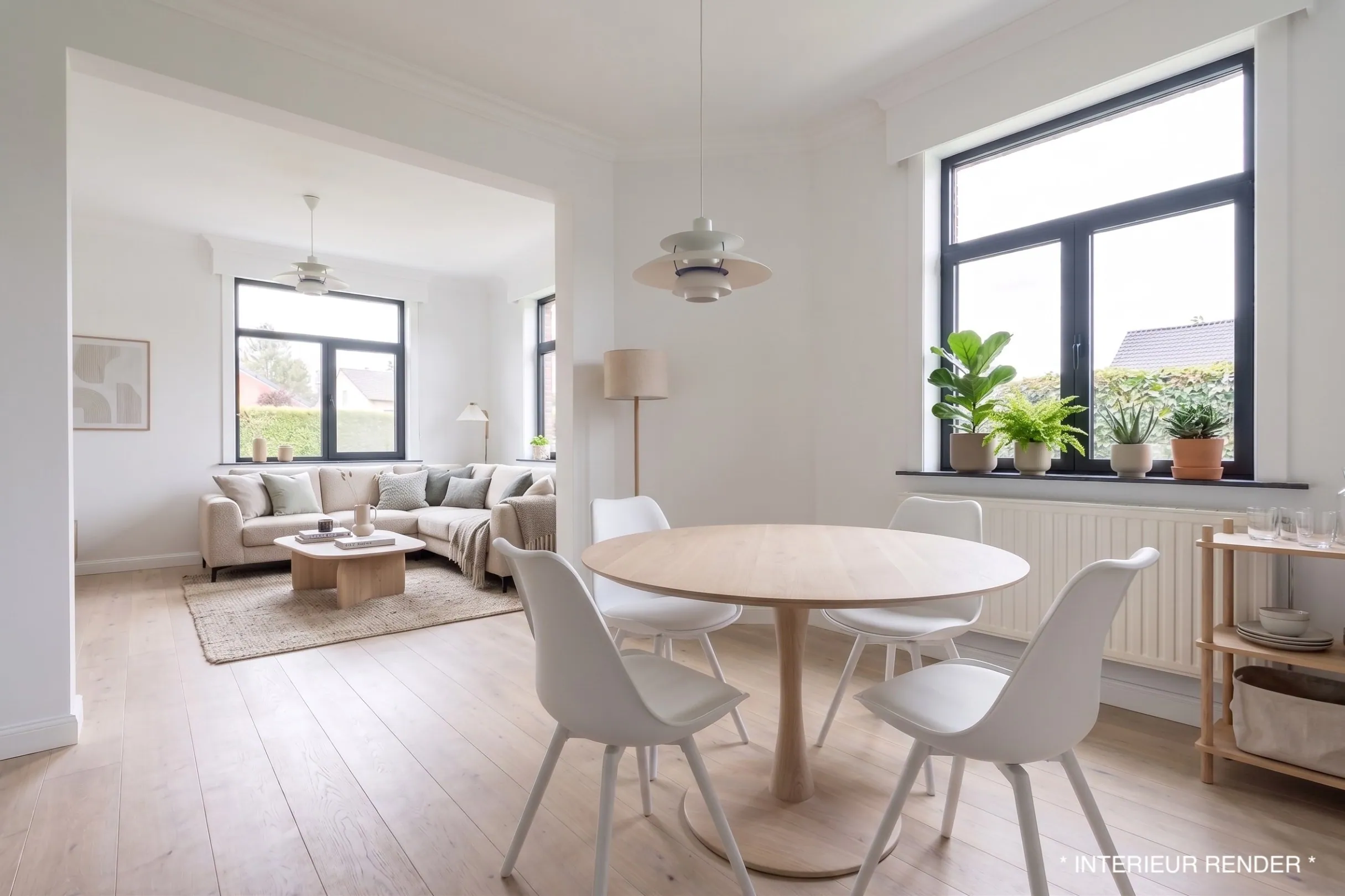 doorbrengt of gasten ontvangt in een aangename setting. De indeling laat toe om deze ruimte volledig naar eigen smaak te moderniseren.