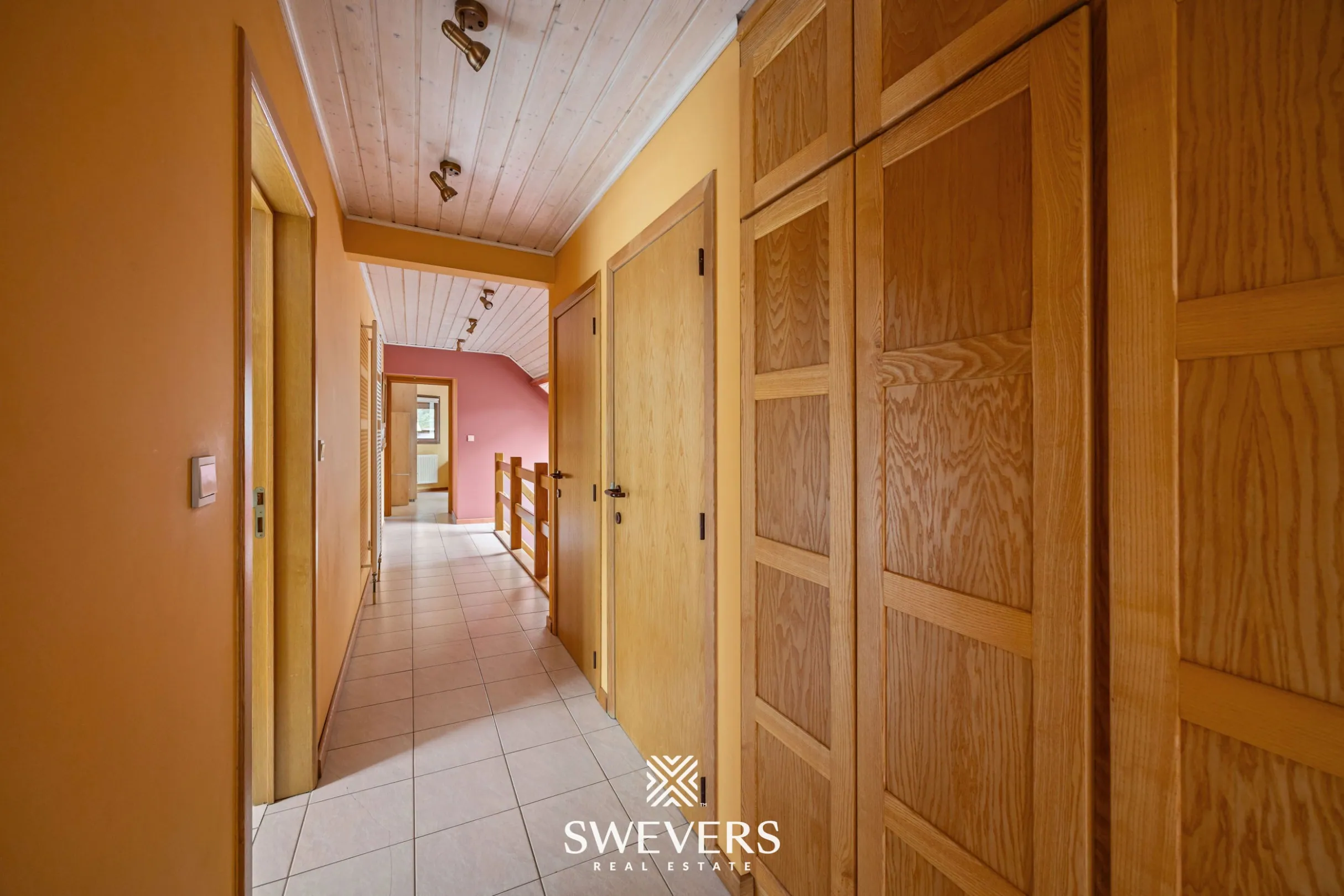 Op de eerste verdieping geeft de nachthal toegang tot vier volwaardige slaapkamers. De kamers hebben oppervlaktes van respectievelijk circa 23 m², 15 m², 15 m² en 12,60 m². Elke ruimte geniet van natuurlijke lichtinval en biedt voldoende plaats voor een comfortabele inrichting. De badkamer is uitgerust met zowel een bad als een douche en beschikt over een dubbele wastafel.