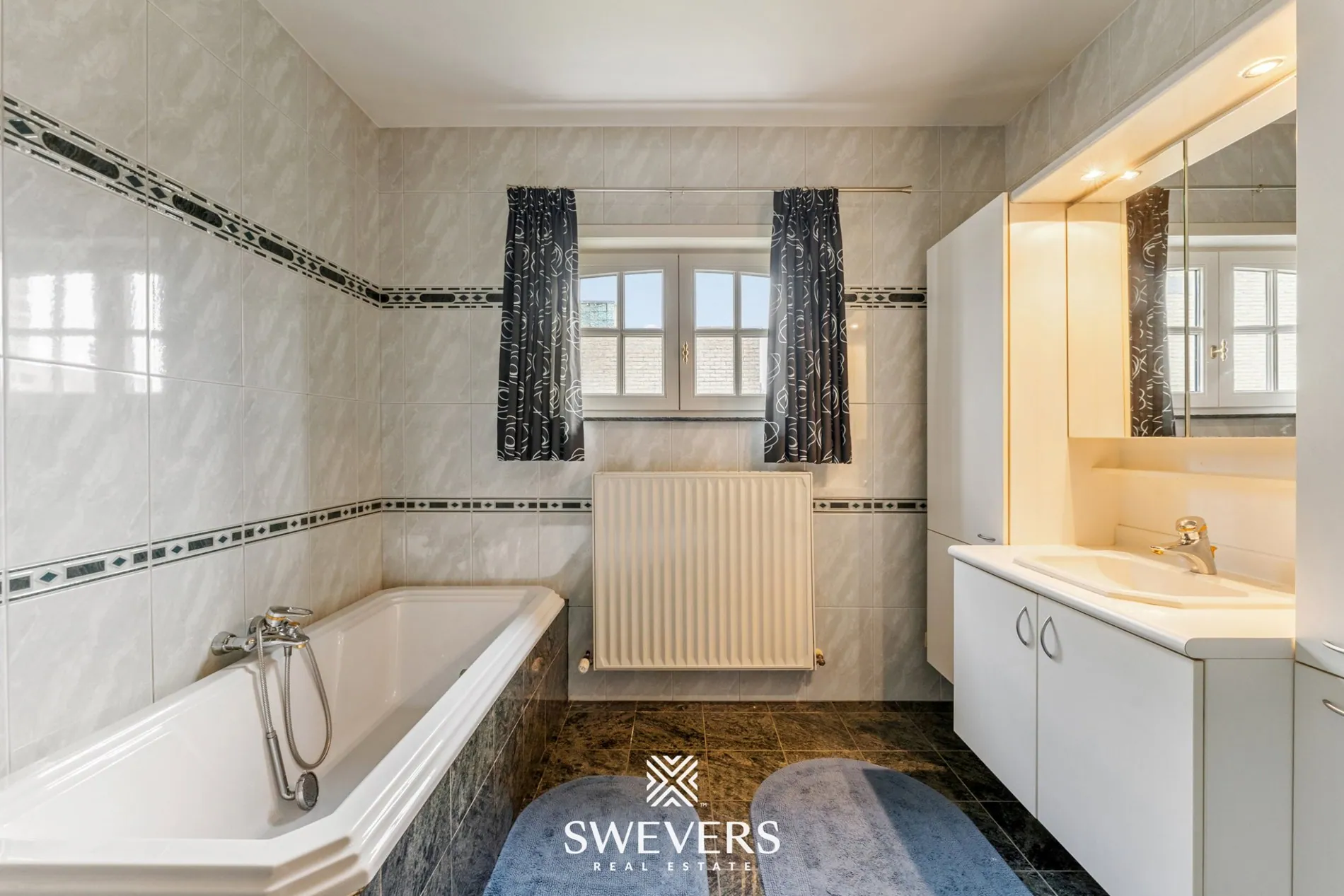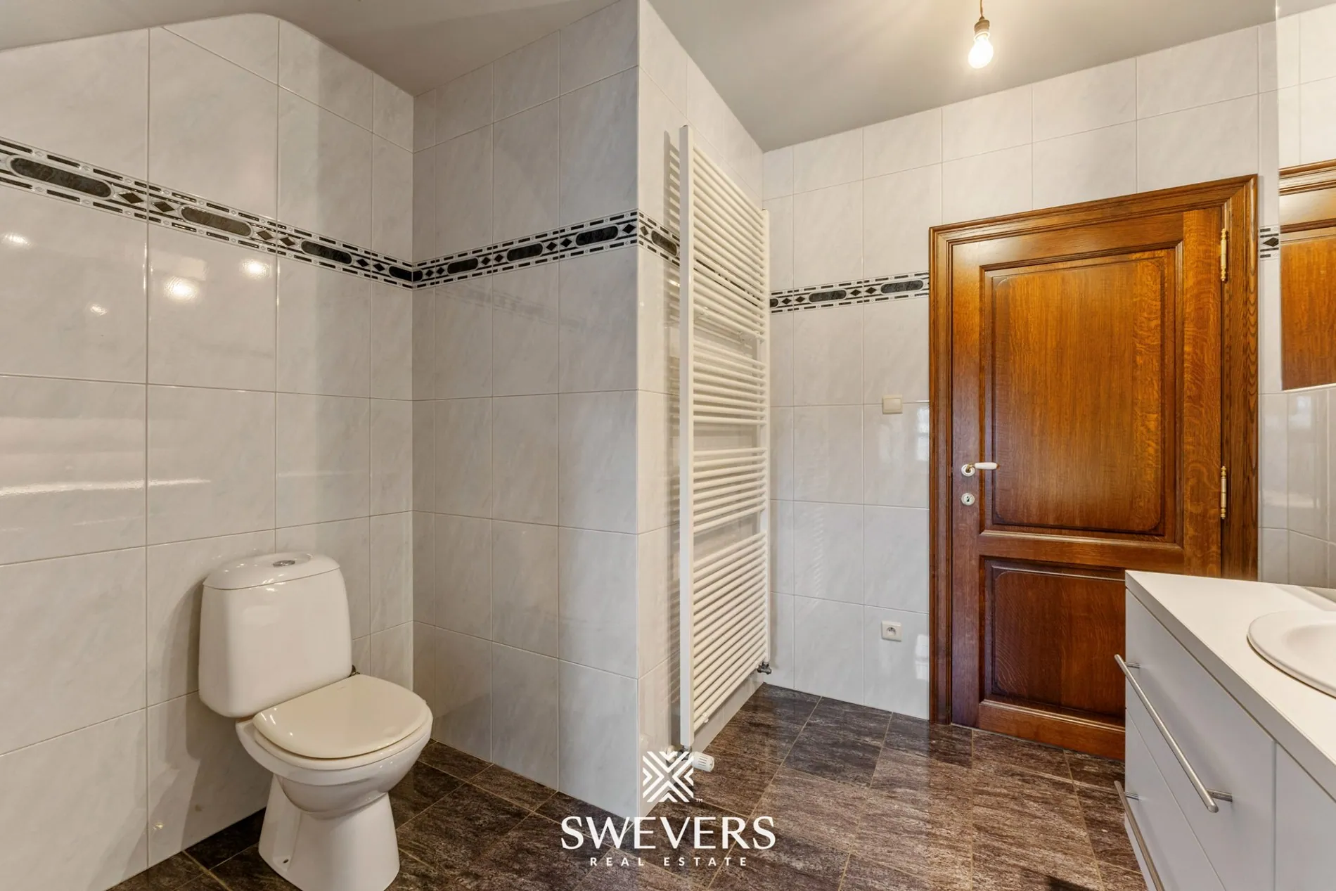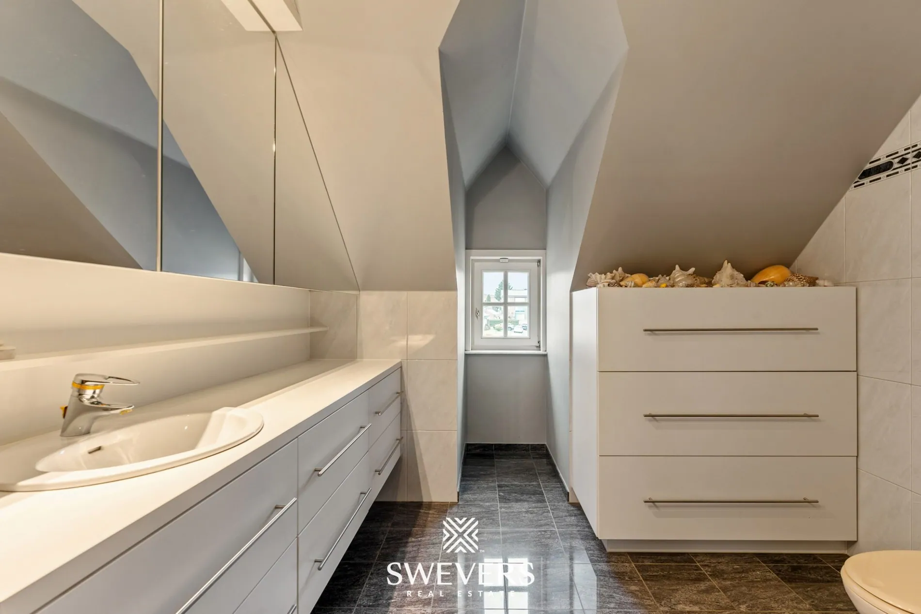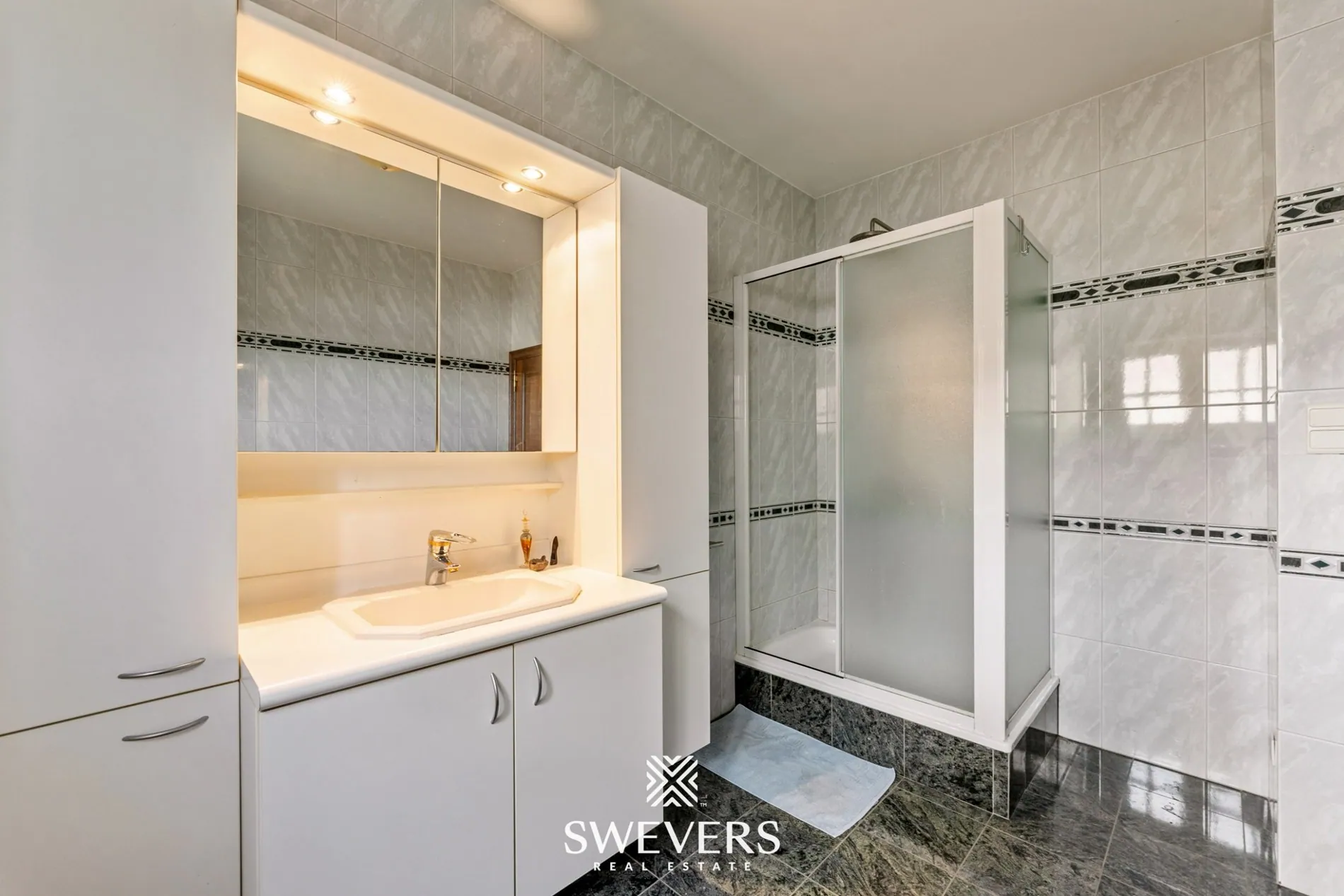 Tot slot is er ook een slaapkamer aanwezig op het gelijkvloers, ideaal voor wie levenslang wonen overweegt of gasten wil ontvangen met het nodige comfort.