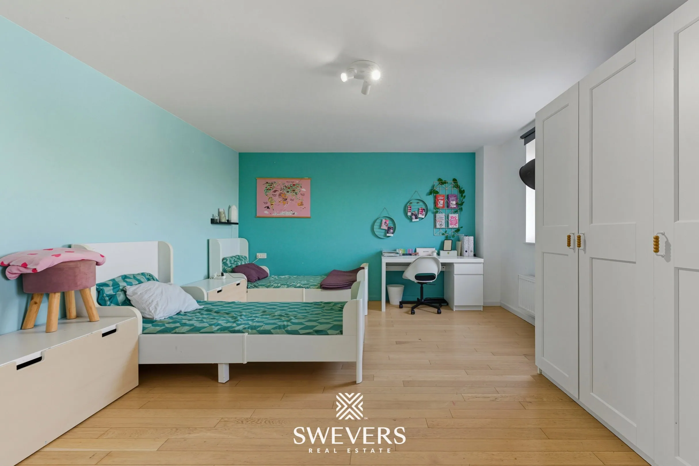 Op de eerste en tweede verdieping ontdek je drie uitzonderlijk ruime slaapkamers van respectievelijk 25,7 m², 25,26 m² en 38,55 m². Elke kamer ademt rust en comfort. Denk aan een stijlvolle master bedroom met ruimte voor een dressing, een gezellige kinderkamer en een inspirerende thuiswerkplek. De mogelijkheden zijn eindeloos.