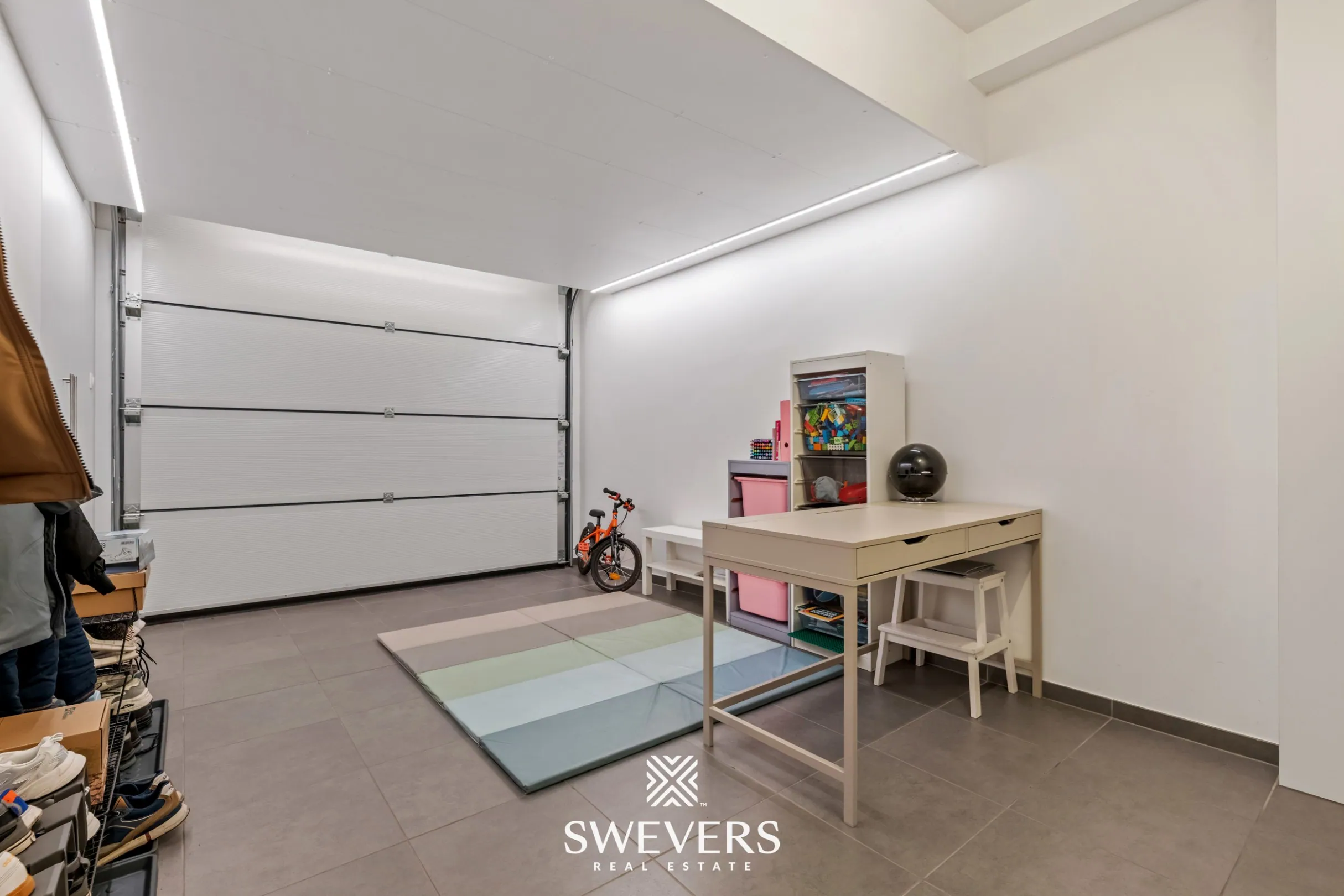 bouwlagen en biedt een totale bewoonbare oppervlakte van 166 m². Dankzij de recente bouw voldoet ze aan hedendaagse comfort- en isolatienormen. Alles is strak, modern en functioneel ingericht.