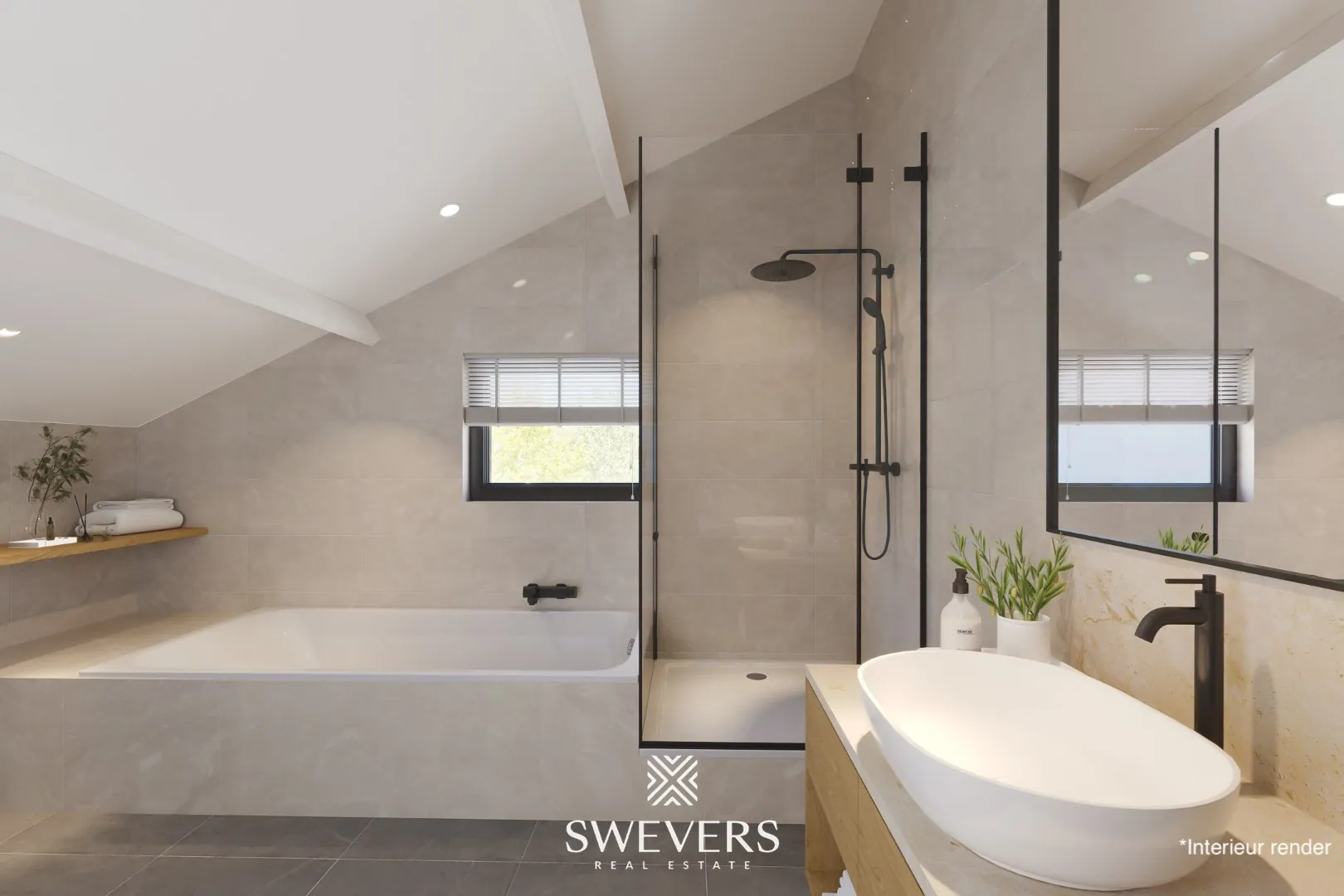 De eerste verdieping omvat drie ruime slaapkamers van respectievelijk 18,90 m², 14,60 m² en 17,60 m². Elke kamer biedt voldoende ruimte voor een tweepersoonsbed, kasten en eventueel een bureau. De grootste slaapkamer aan de achterzijde van de woning geeft toegang tot een aangenaam balkon, dat uitkijkt over de tuin. Op deze verdieping bevinden zich ook de volledig betegelde badkamer, uitgerust met bad en dubbele wastafel, en een afzonderlijk toilet. De centrale overloop is ruim en zorgt voor een logische en rustige circulatie tussen de kamers.