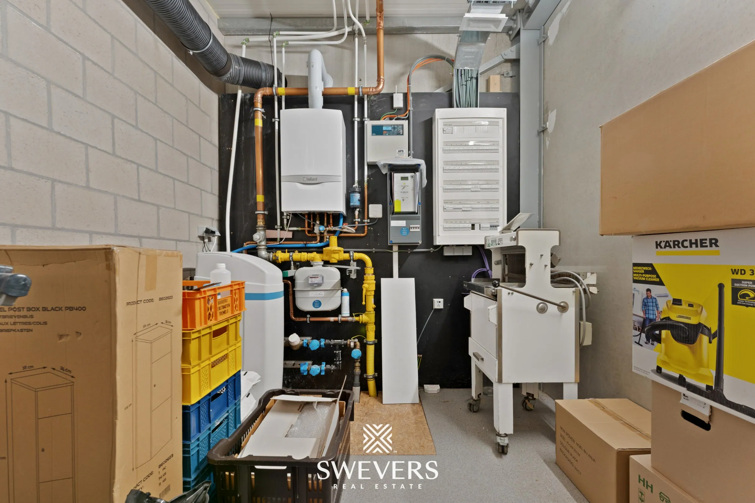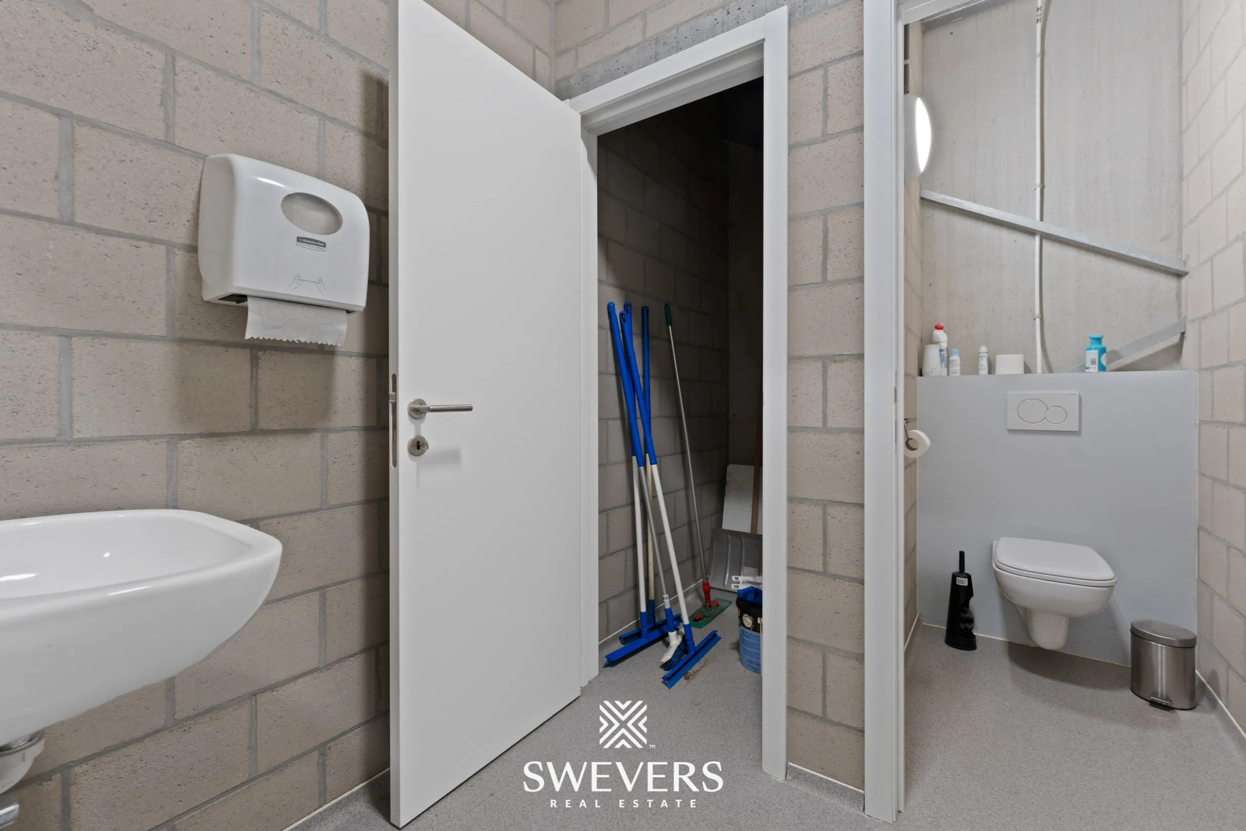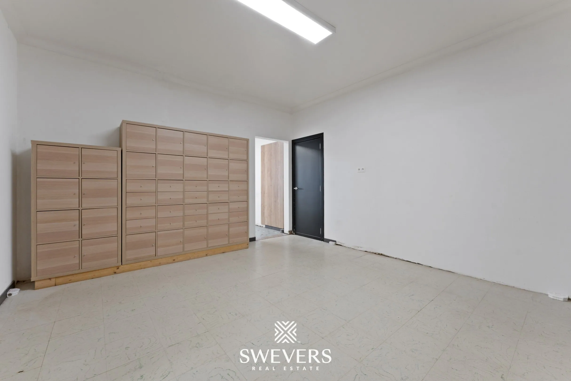 Verder biedt deze verdieping meerdere aparte hallen die een vlotte circulatie mogelijk maken doorheen het pand. Aan de voorzijde van het gebouw bevinden zich nog twee commerciële ruimtes met eigen ingang, wat kansen biedt voor een ontvangstruimte, showroom of zelfs het onderbrengen van een extra activiteit. Achteraan het pand is een keukenruimte aanwezig, perfect voor personeel of eventueel horeca-ondersteuning.De praktische indeling zet zich voort met maar liefst vier afzonderlijke toiletten, verspreid over het gelijkvloers. Er zijn ook twee aparte bergingen die extra stockage of inrichting toelaten. Alles is logisch gepositioneerd en met een doordachte flow, ideaal voor intensief gebruik zonder in te boeten op comfort.