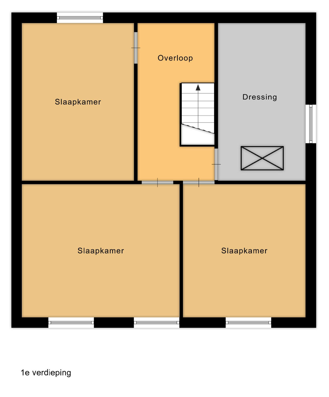 De eerste verdieping telt drie volwaardige slaapkamers van respectievelijk 16,28 m², 15,10 m² en 13,12 m². De centrale overloop leidt naar alle kamers, waaronder ook een dressingruimte, wat extra opbergruimte of comfort creëert. Deze verdieping laat zich makkelijk herinrichten naar persoonlijke smaak, afhankelijk van de gewenste noden van een gezin of koppel.