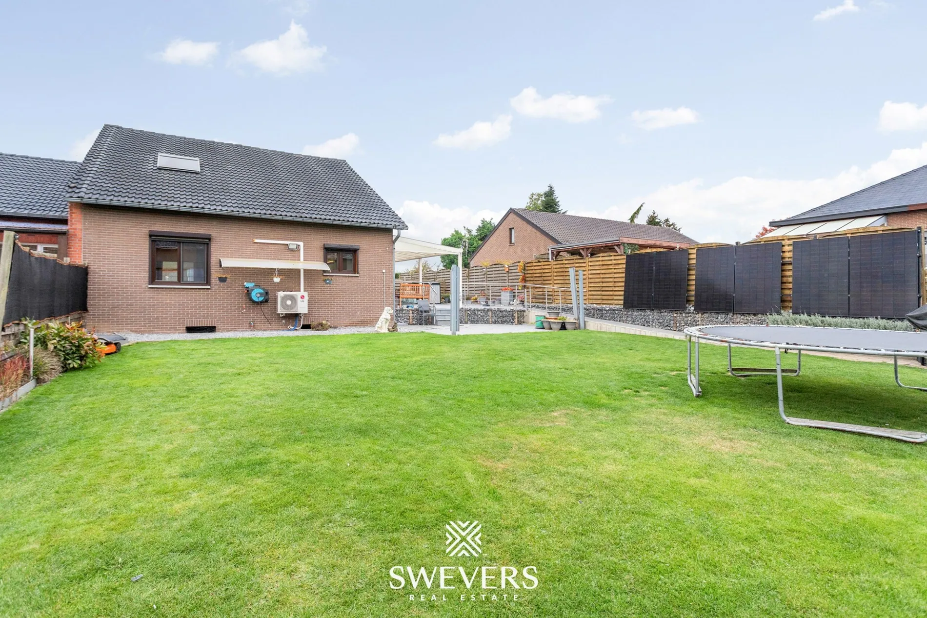 Het perceel van 6a 46ca is noord-oost georiënteerd. De tuin is compact maar onderhoudsvriendelijk aangelegd met een combinatie van gazon, plantenborders en een deels overdekt terras. Deze oriëntatie zorgt ervoor dat er in de voormiddag volop zon is, terwijl er in de namiddag schaduwrijke plekjes ontstaan – ideaal tijdens warme zomerdagen. Een regenwaterput van 3.000 liter én een extra van 5.000 liter dragen bij aan een duurzaam waterbeheer.