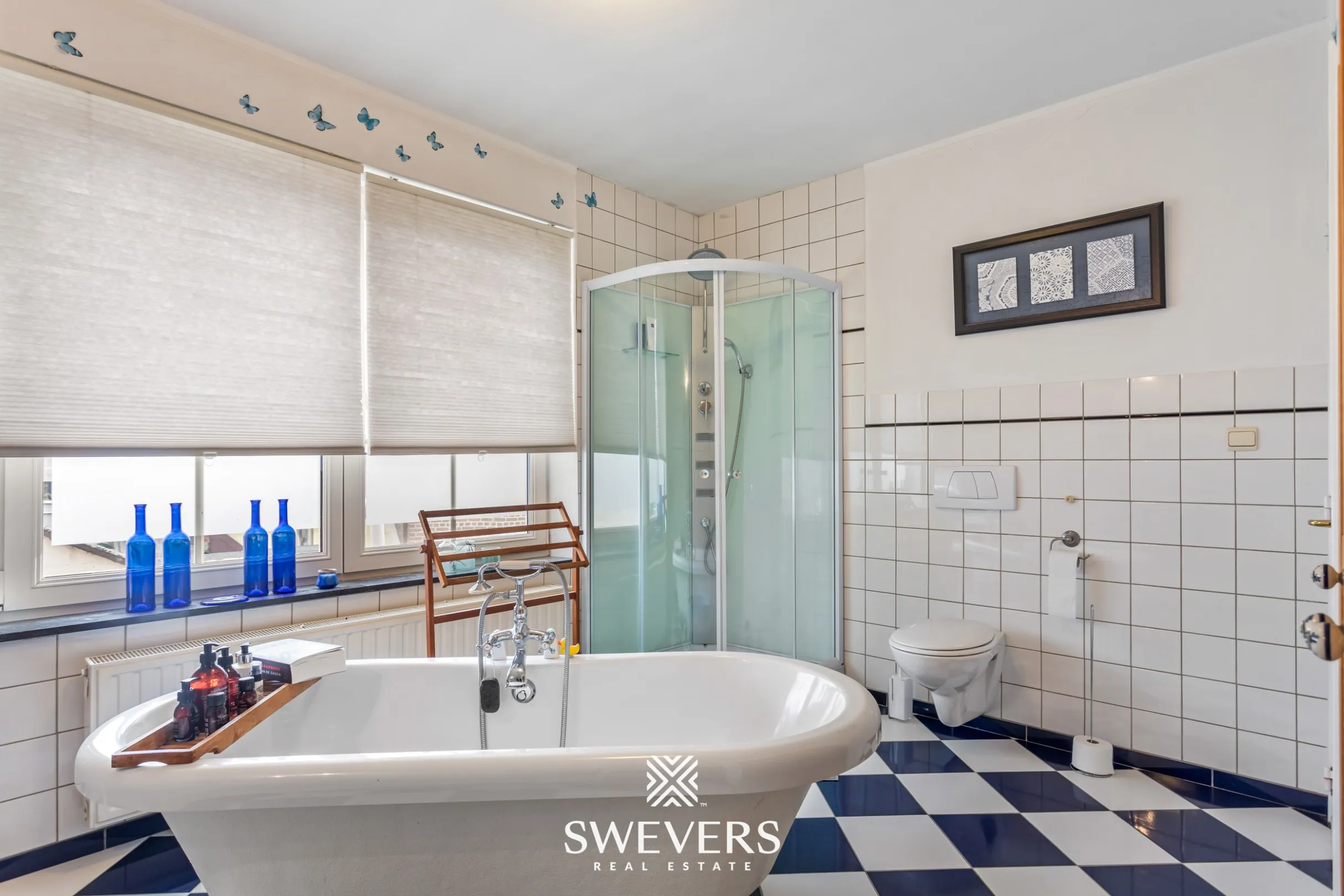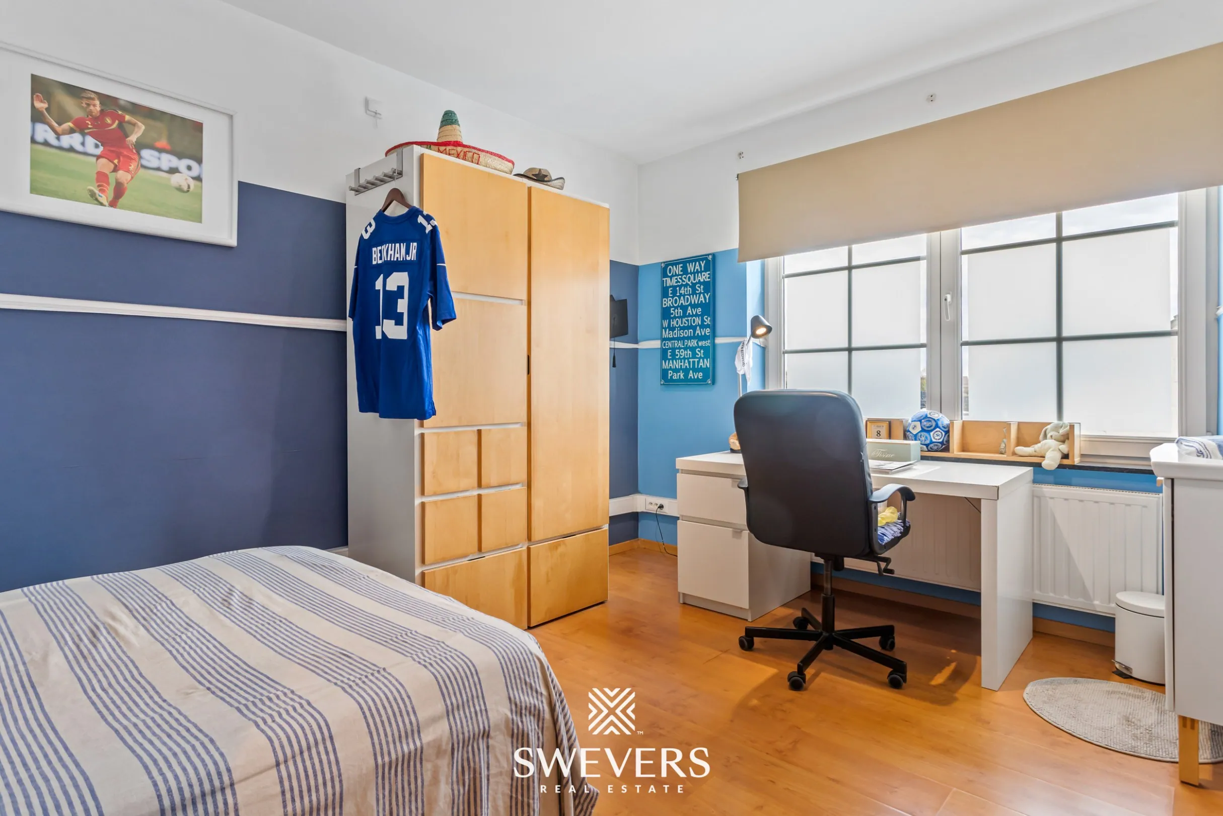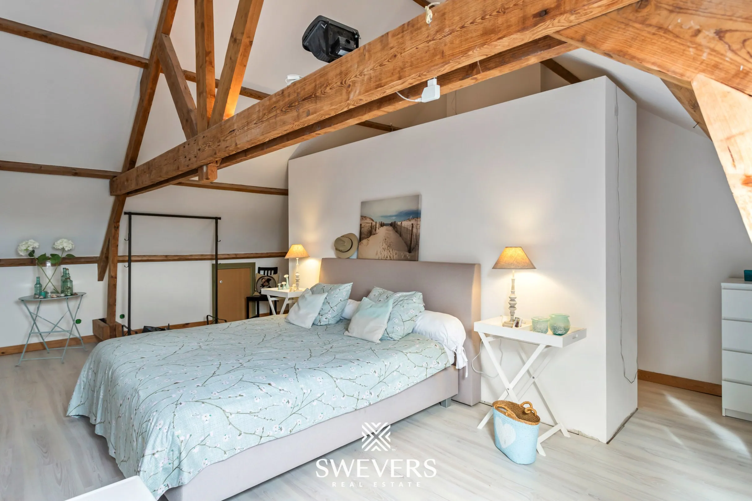 De leefruimte baadt in het natuurlijke licht dankzij de grote raampartijen.. De keuken vormt het hart van de woning en biedt alle ruimte om te koken én samen te genieten. Boven bevinden zich vier bijzonder ruime slaapkamers van 43 m², 17 m², 14 m² en 13 m². Of je nu op zoek bent naar een master bedroom met dressing, extra kinder- of logeerkamers, of een inspirerende werkplek: hier vind je altijd de juiste indeling. Twee badkamers en drie toiletten zorgen bovendien voor een optimaal wooncomfort, zelfs voor grotere gezinnen.