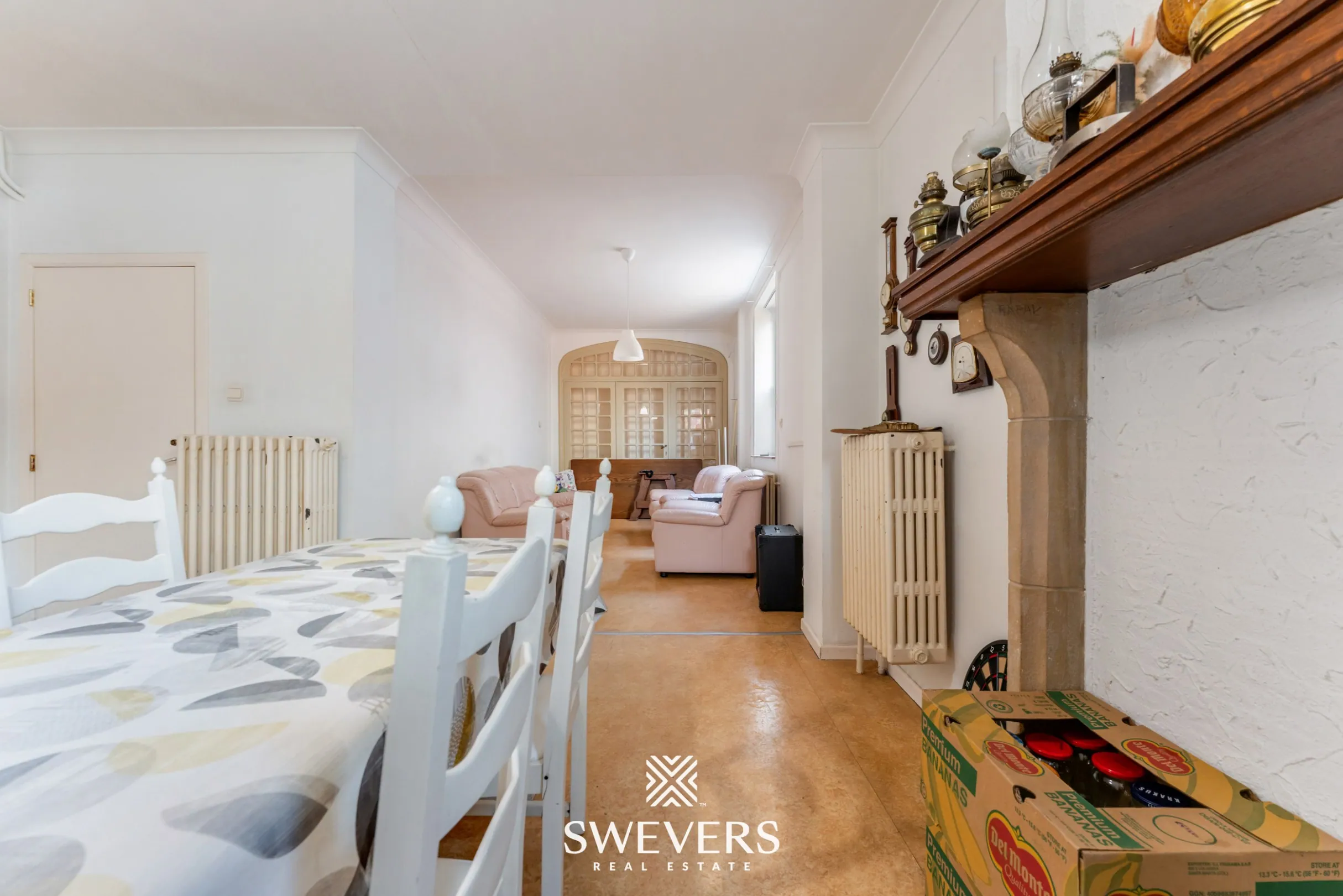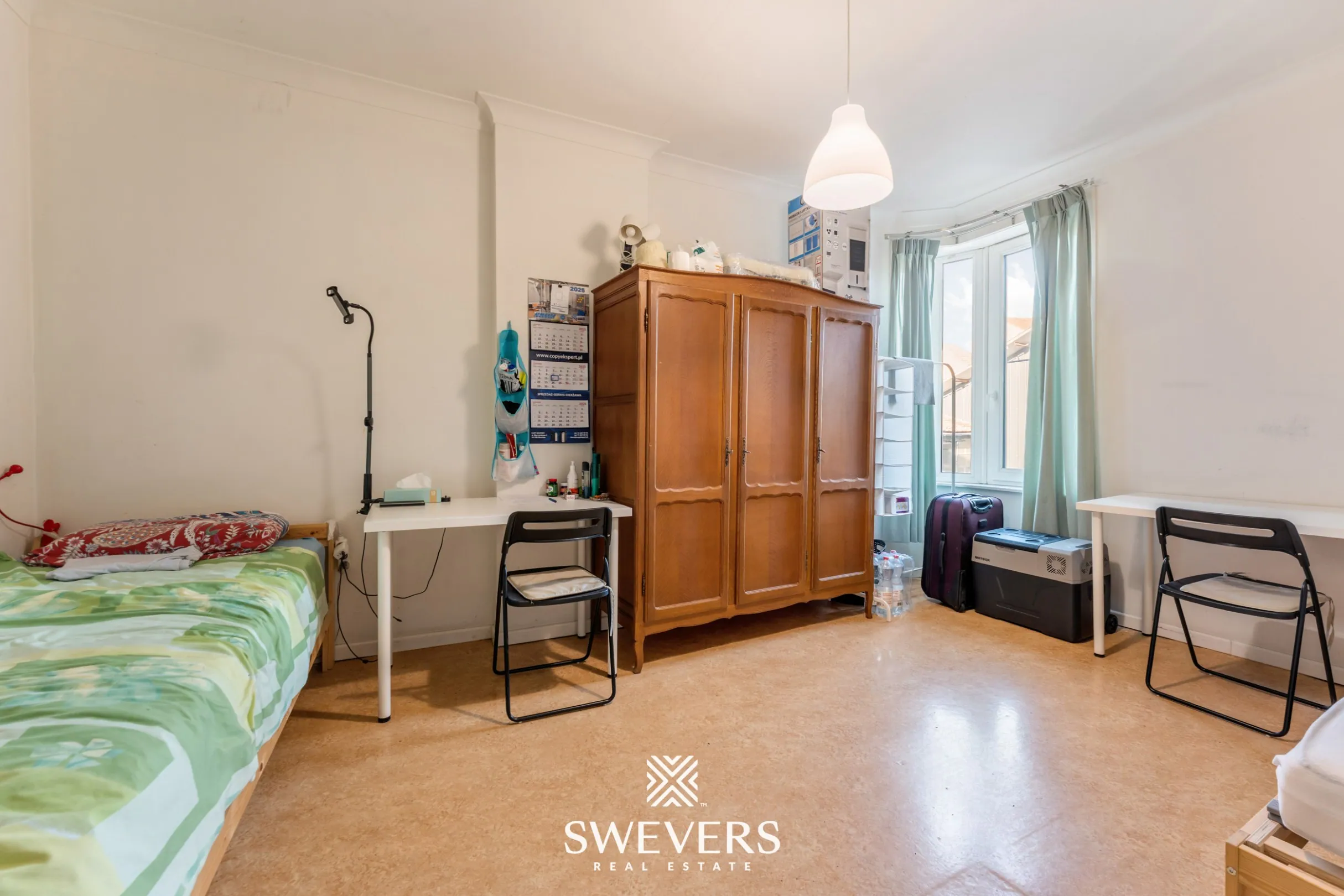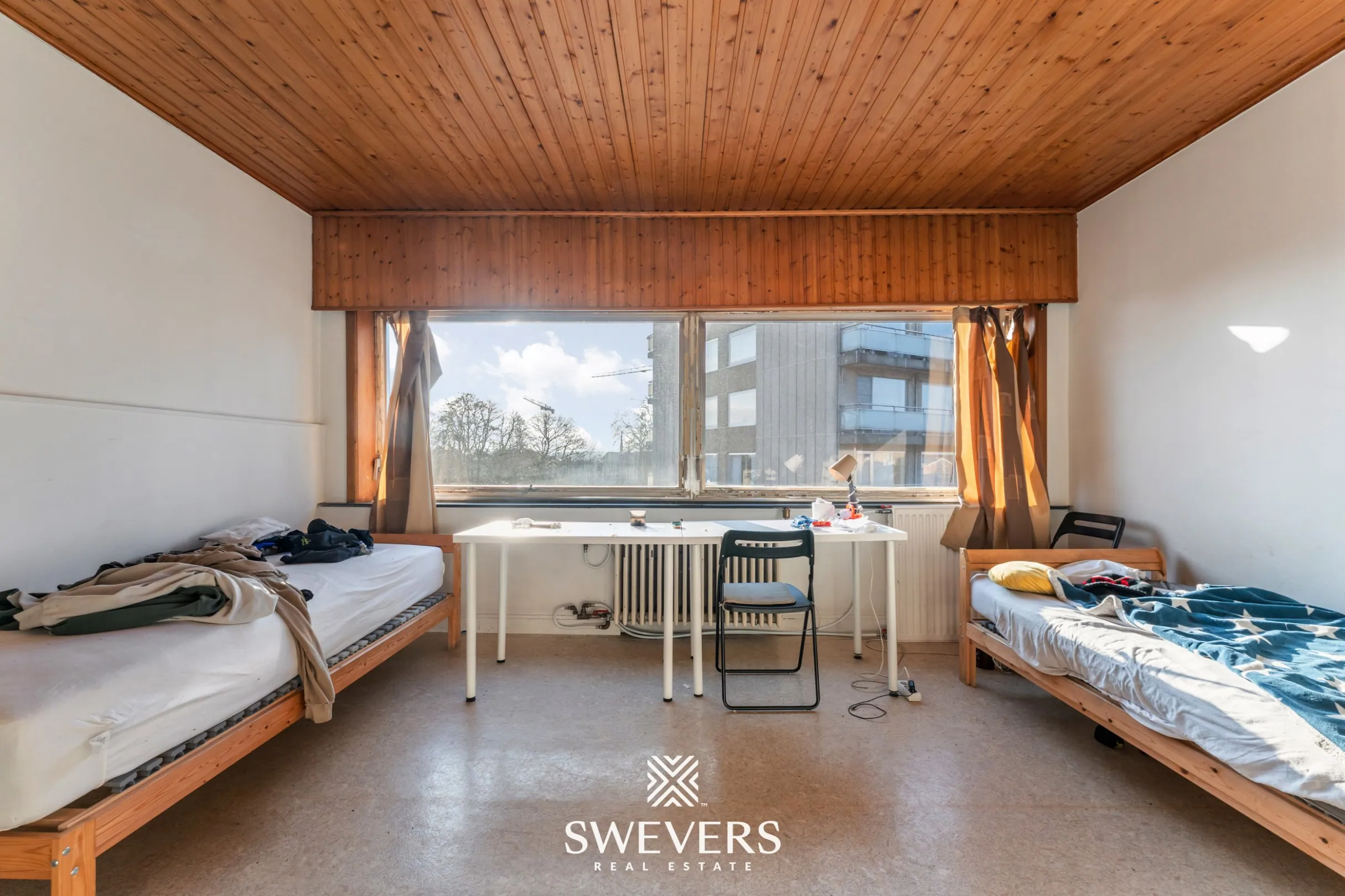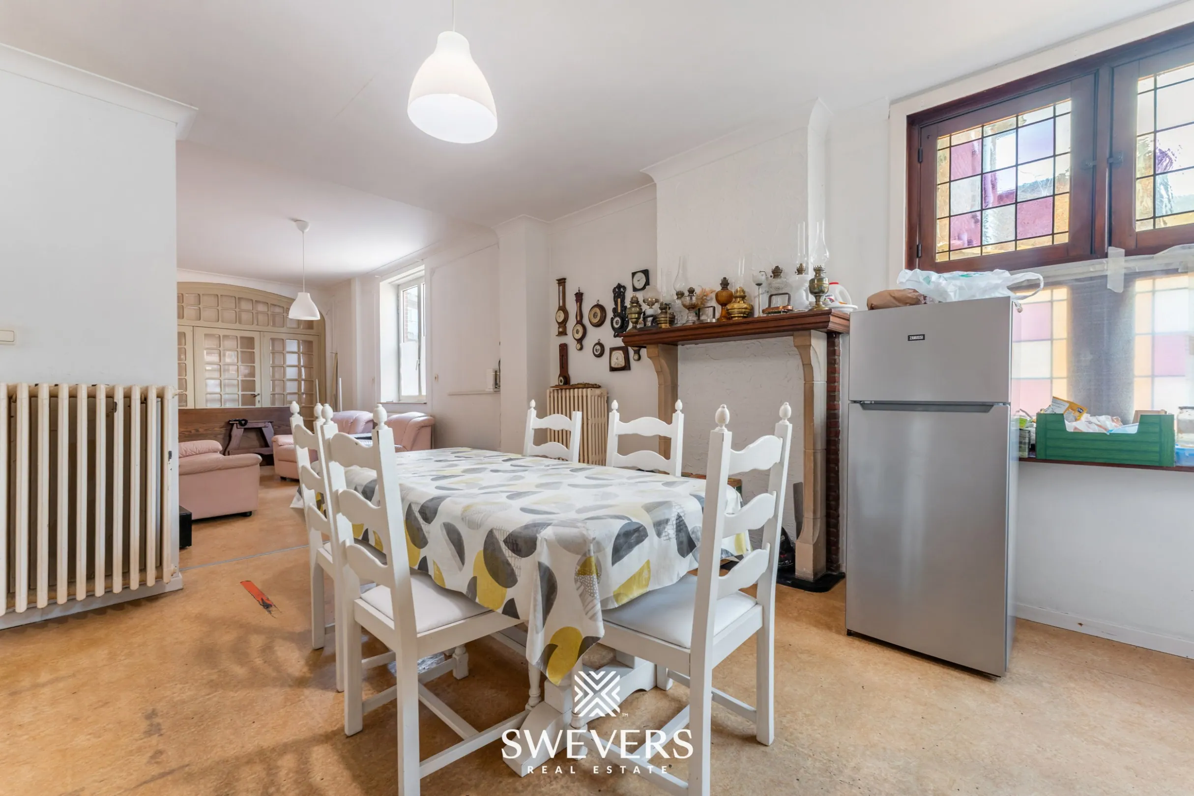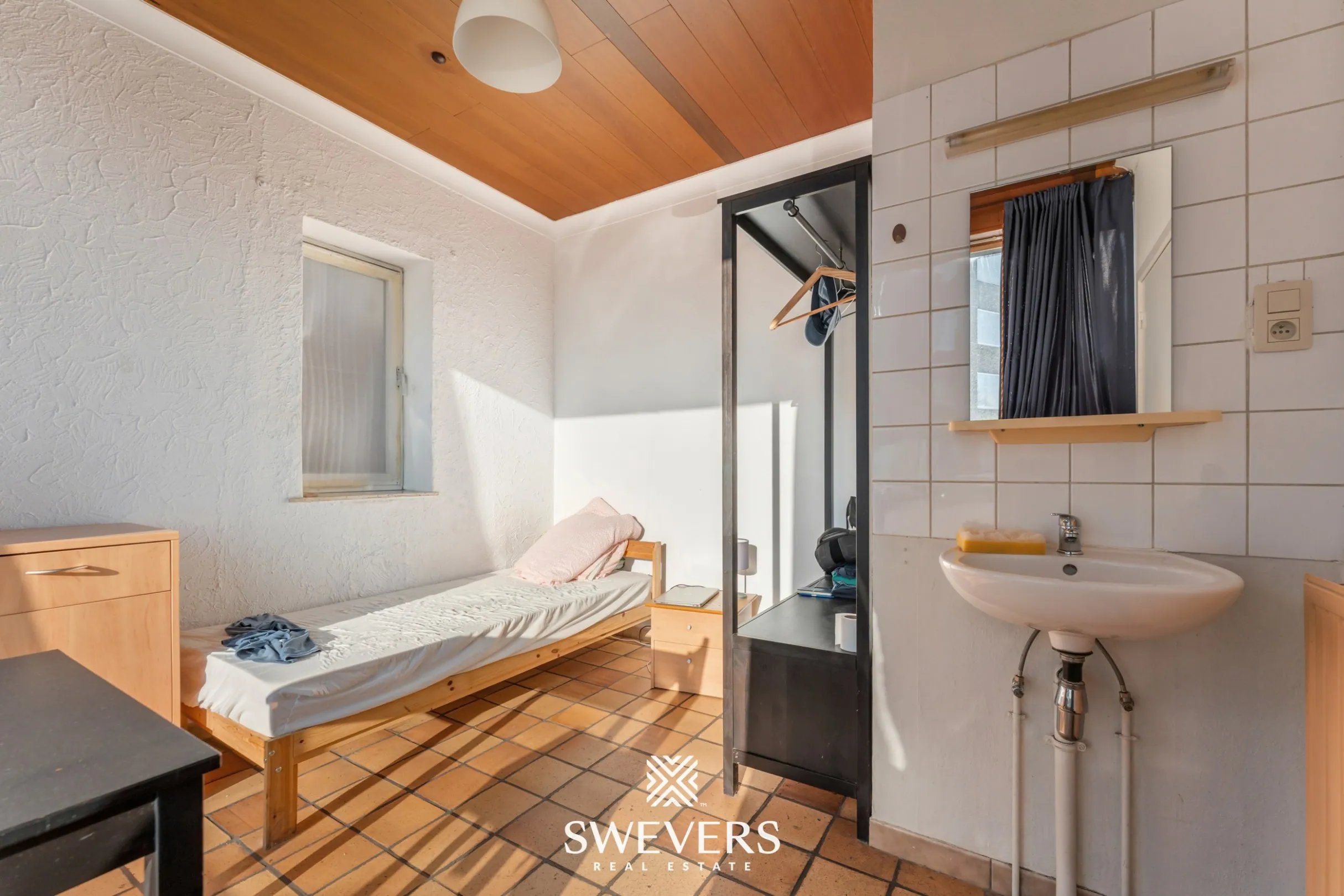 Op het gelijkvloers bevindt zich een ruime leefruimte van 37,07 m², waar u zich makkelijk een warme leefomgeving kan voorstellen. Grote ramen zorgen voor natuurlijke lichtinval en creëren een aangename connectie tussen wonen en ontspannen. Aansluitend ligt de keuken van 9,36 m², compact maar functioneel, met potentieel om uit te breiden of te herinrichten naar hedendaagse normen. De woning telt in totaal zes slaapkamers, verdeeld over de verschillende verdiepingen. Dit maakt het pand uitermate geschikt voor grote gezinnen, cohousing of verhuur per kamer. Eén van de slaapkamers beschikt bovendien over een eigen balkon, een extra troef die zorgt voor licht, lucht en een aangename buitenbeleving.
