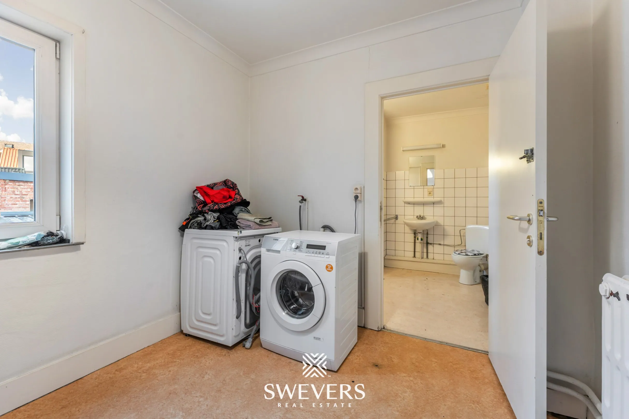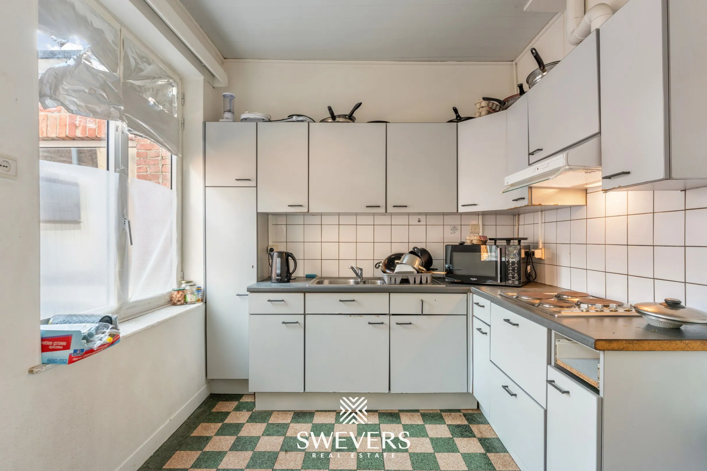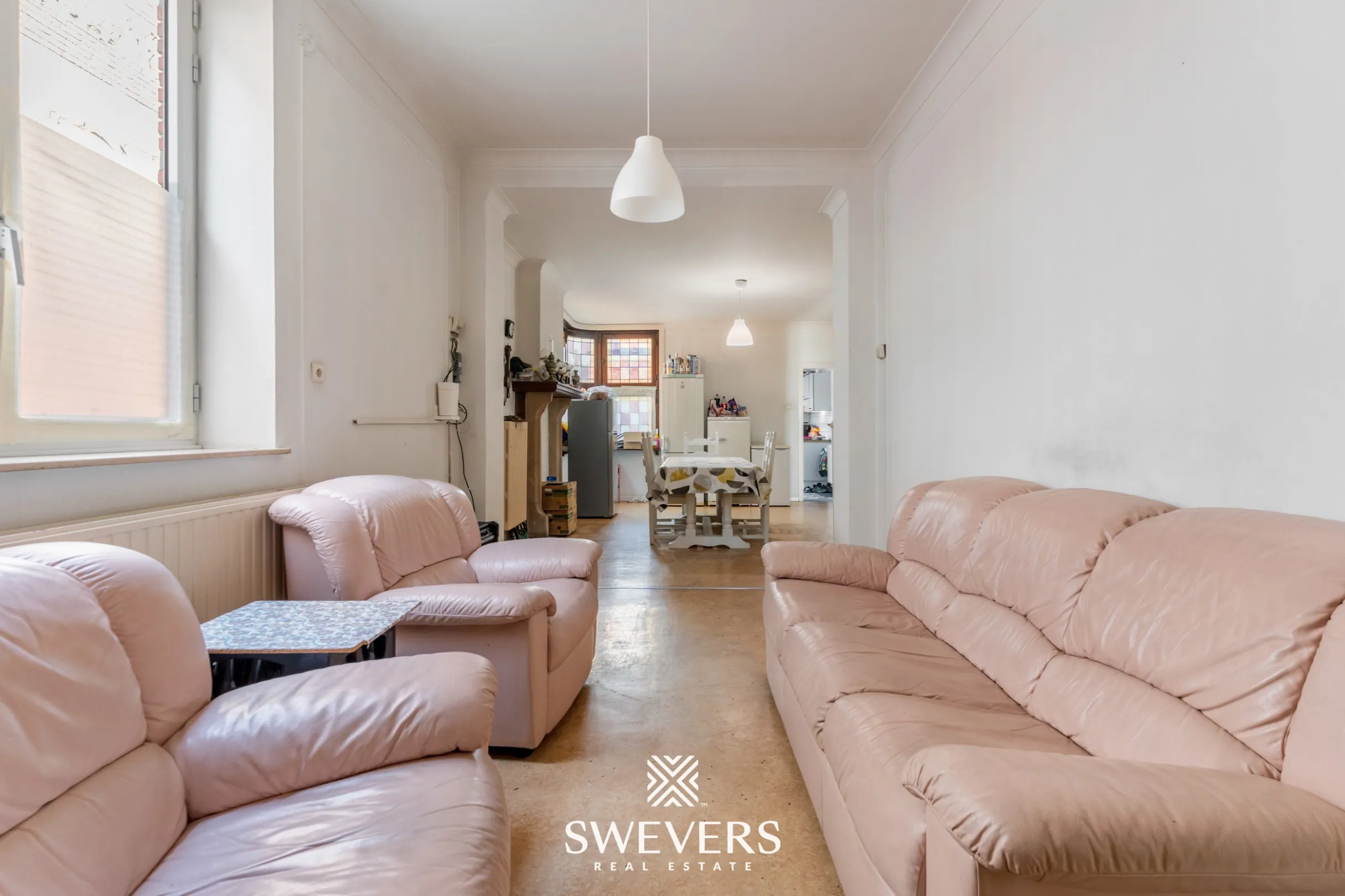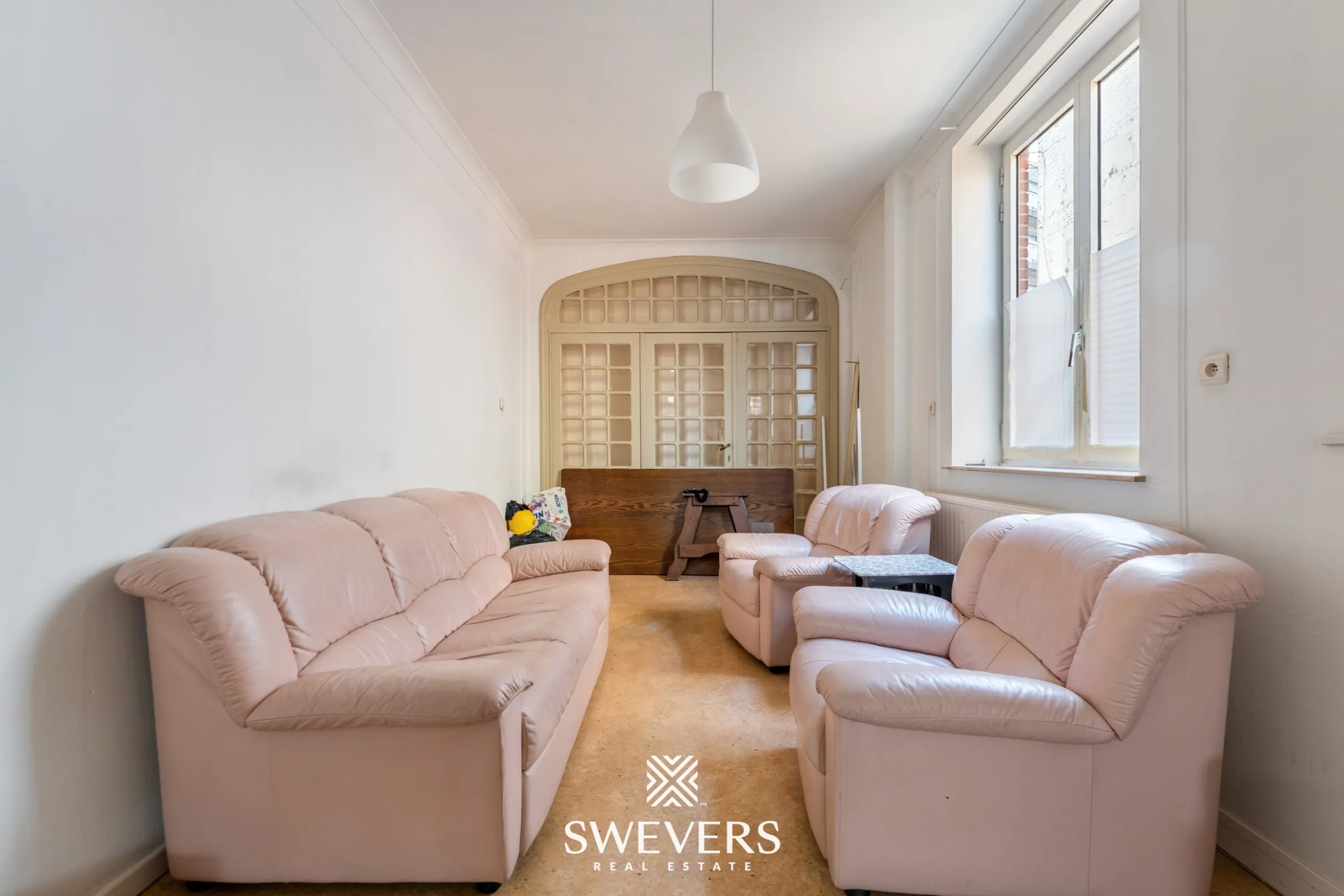 frissen, wat meteen de grootste troef vormt voor wie ruimte, charme en potentieel weet te waarderen. Achter de gevel schuilt een verrassend groot volume dat zich leent tot verschillende invullingen: een ruime gezinswoning, een kangoeroewoning of een interessante opbrengsteigendom. Vandaag is het pand reeds verhuurd aan €1.000 per maand, wat meteen een basisrendement oplevert.