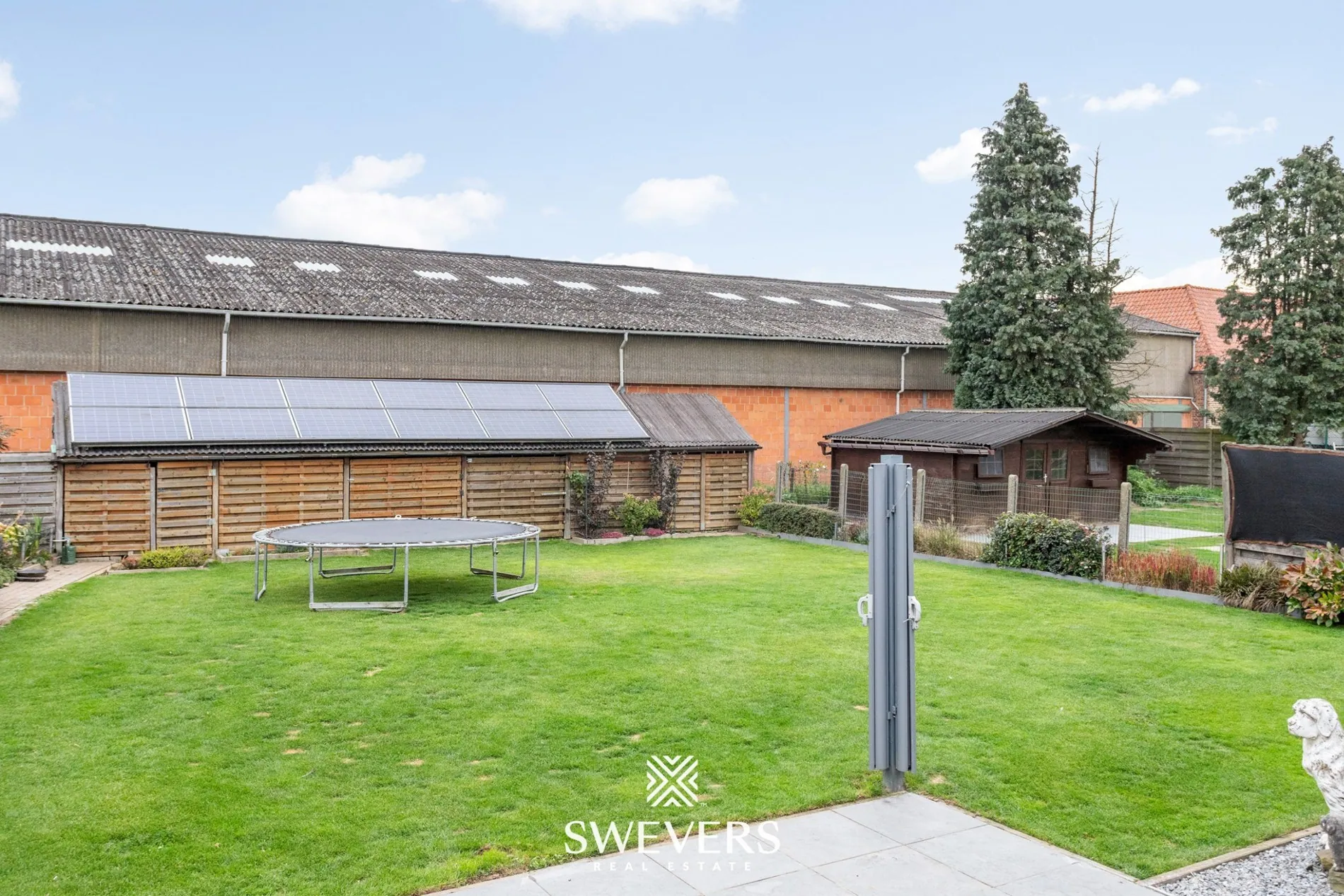 Het perceel van 6a 46ca is noord-oost georiënteerd. De tuin is compact maar onderhoudsvriendelijk aangelegd met een combinatie van gazon, plantenborders en een deels overdekt terras. Deze oriëntatie zorgt ervoor dat er in de voormiddag volop zon is, terwijl er in de namiddag schaduwrijke plekjes ontstaan – ideaal tijdens warme zomerdagen. Een regenwaterput van 3.000 liter én een extra van 5.000 liter dragen bij aan een duurzaam waterbeheer.