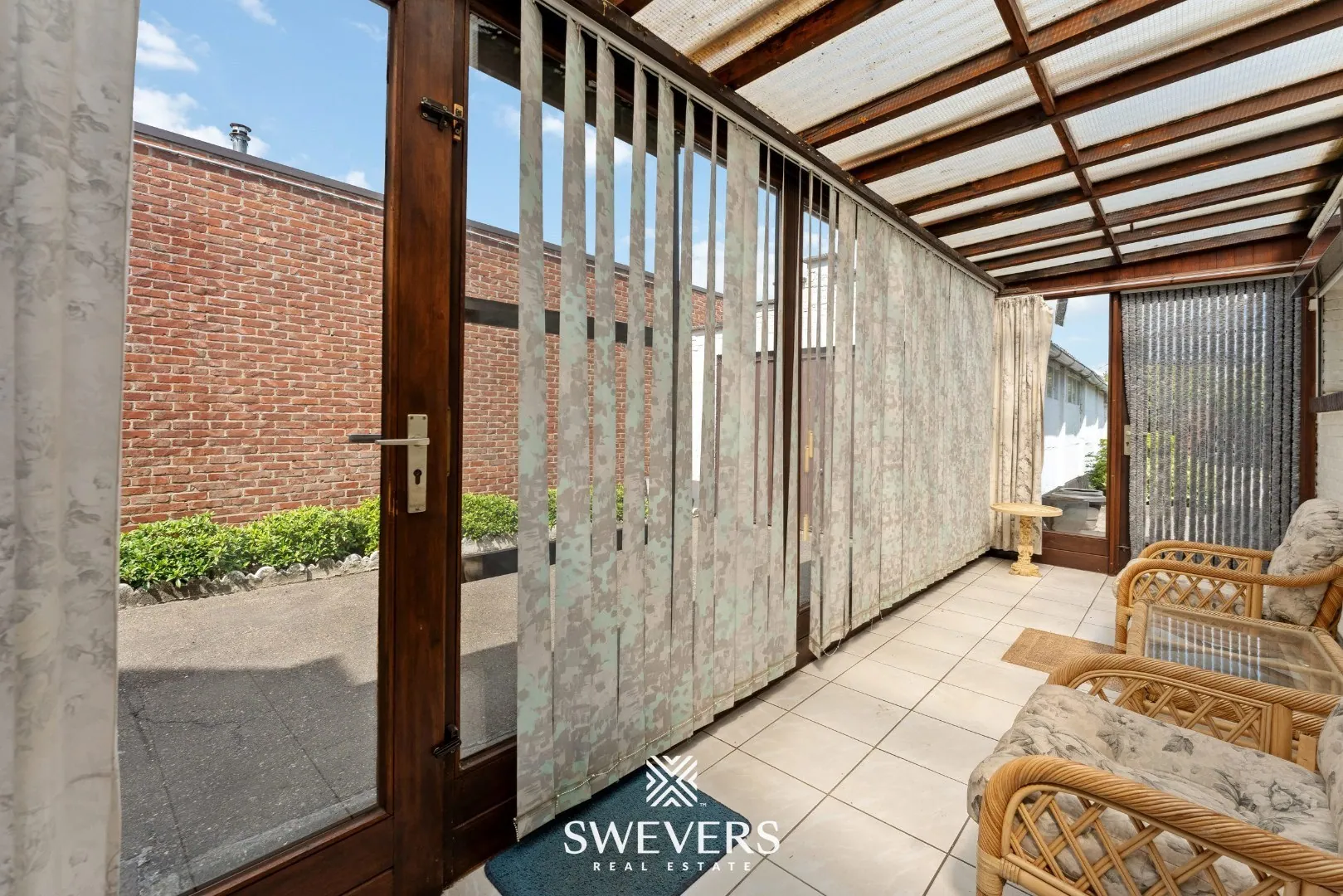 Achter de keuken bevinden zich de berging/wasplaats en een badkamer. De berging strekt zich over de volledige breedte van het huis en biedt een zee aan opbergruimte, ideaal voor was- en opslagdoeleinden. De badkamer werd achteraan ingepland en kan eenvoudig gemoderniseerd worden naar hedendaagse normen. Tot slot is er ook een gezellige veranda aanwezig.