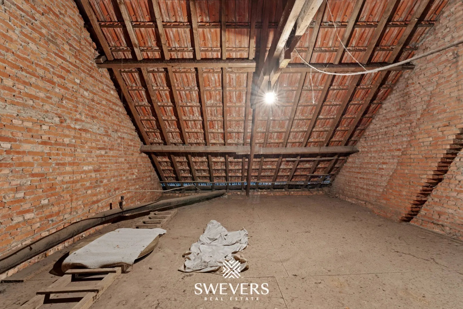 De woning beschikt eveneens over een kelder van 5,6 m², geschikt voor provisie of extra opslag. Daarnaast is er een zolderruimte aanwezig die mits de juiste aanpassing mogelijks extra potentieel biedt. Denk aan een vierde slaapkamer, bureau of zelfs een ontspanningsruimte. De vrijstaande garage in steen voorziet dan weer in praktische parkeeroplossingen of hobbydoeleinden.