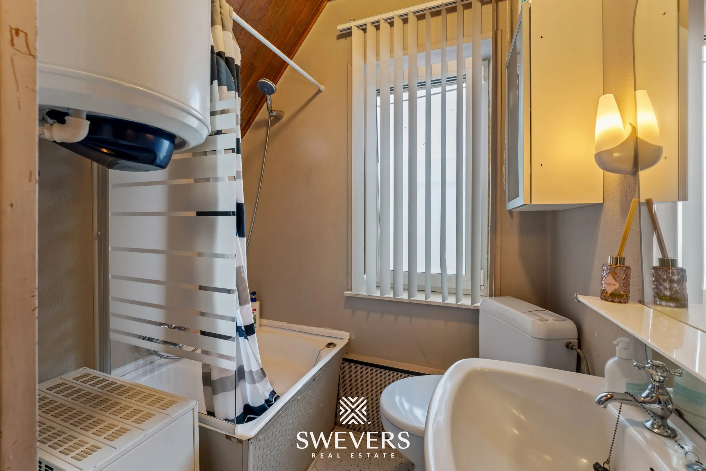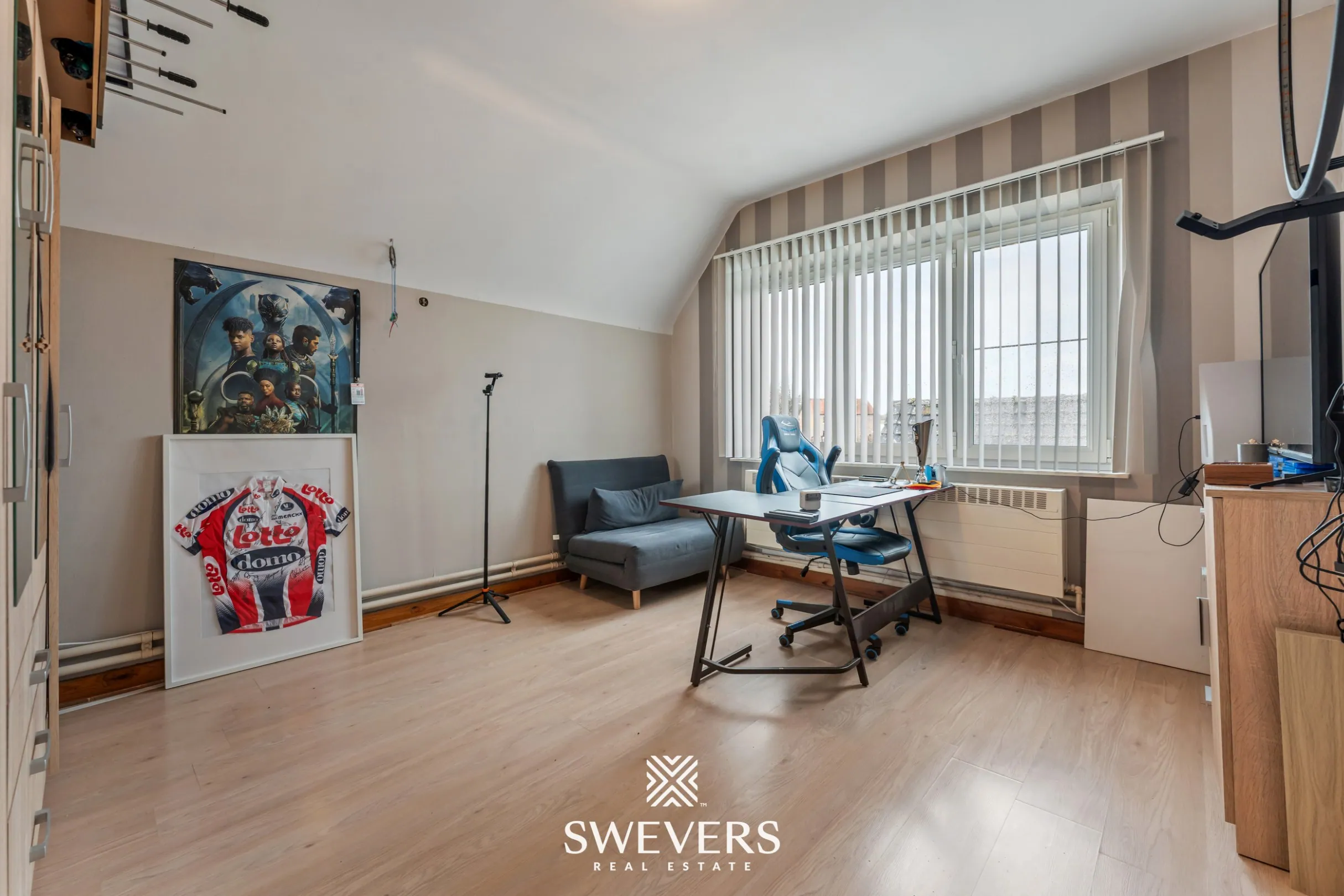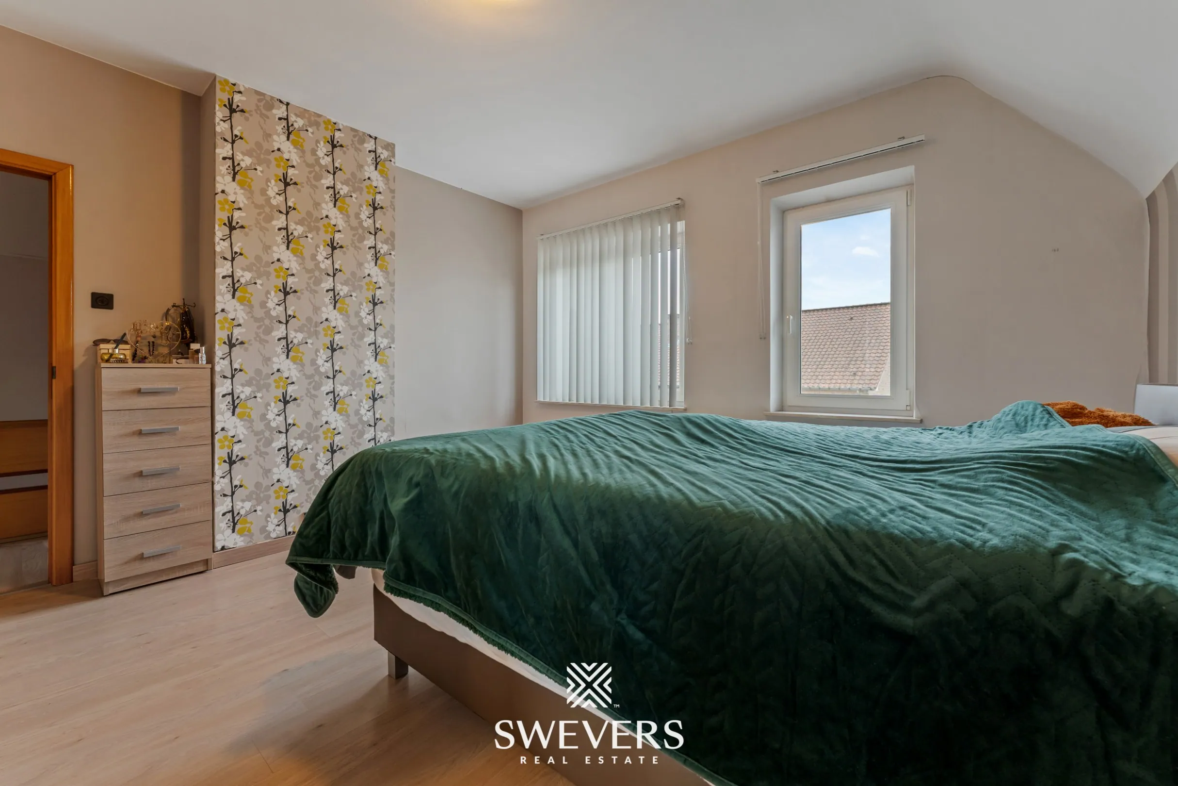 De eerste verdieping telt drie slaapkamers. Elke kamer beschikt over voldoende ruimte om in te richten als volwaardige slaapkamer, kinderkamer of bureauruimte. De indeling is logisch en functioneel, wat zorgt voor een vlotte circulatie. De badkamer bevindt zich eveneens op deze verdieping en is praktisch ingericht. De kamers bieden potentieel voor wie op zoek is naar een eigen invulling en hedendaags comfort.
