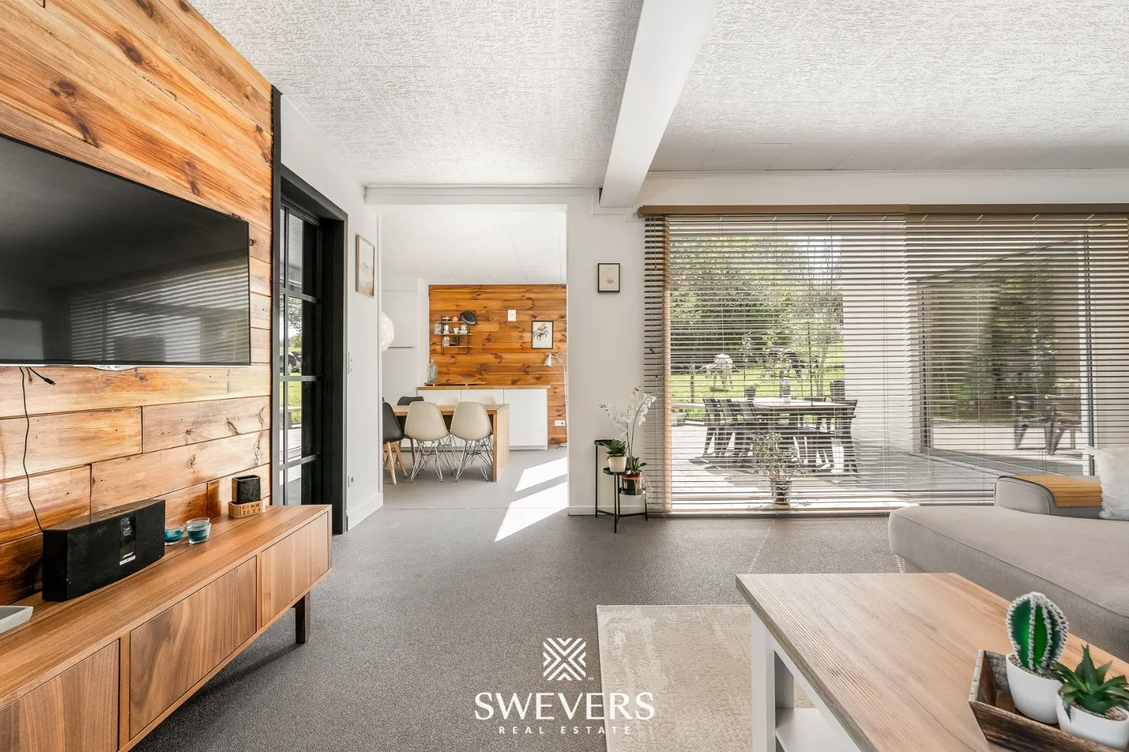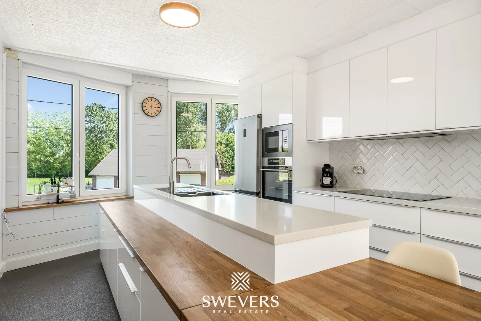 Met een bewoonbare oppervlakte van maar liefst 235 m² biedt deze woning meer dan voldoende ruimte voor een gezin, thuiswerkers of hobbyisten. De lichtrijke leefruimte van 29,8 m² is het hart van de woning. Grote raampartijen zorgen voor een directe connectie met de achterliggende weilanden—je woont hier letterlijk in het groen. Vloerverwarming op het gelijkvloers maakt het plaatje compleet, zowel qua comfort als energie-efficiëntie.