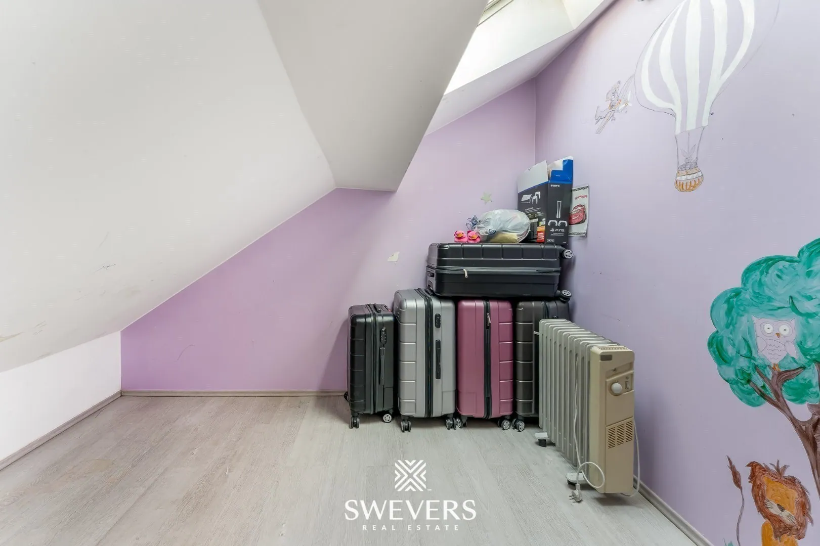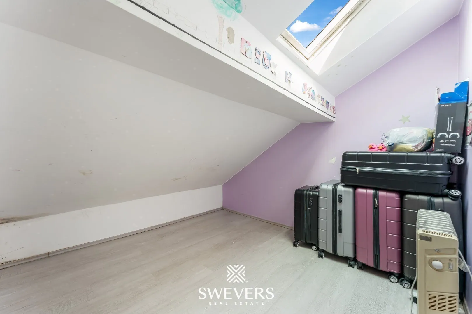 Op de tweede verdieping vindt u twee extra slaapkamers van respectievelijk 13 m² en 9 m². Ideaal als kinderkamers, logeerkamer of thuiskantoor – u kiest. Beide ruimtes zijn voorzien van een dakstructuur die zorgt voor een knusse, maar luchtige sfeer. Ook op deze verdieping is er een aparte overloop en voldoende lichtinval.