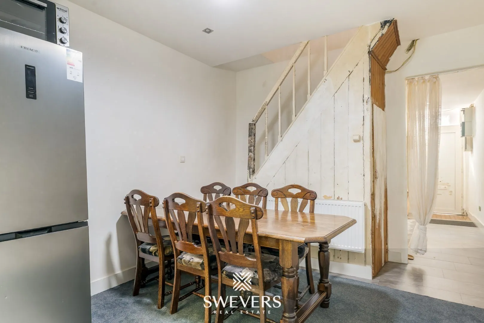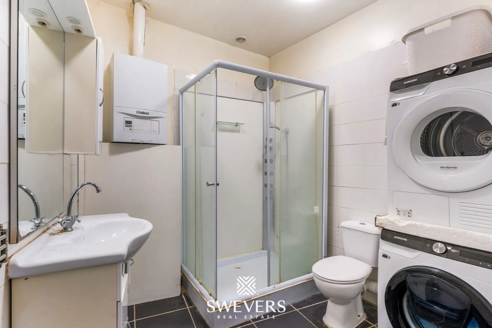 Met een bewoonbare oppervlakte van 105 m² is dit een perfect gezinshuis. De woonkamer van 15 m² is compact maar gezellig en vormt samen met de eetkamer een knusse leefruimte waar u zich meteen thuis zult voelen. De aangrenzende keuken van 13 m² biedt voldoende ruimte voor al uw culinaire plannen en geeft uit op de badkamer achteraan op het gelijkvloers – praktisch en discreet gelegen.