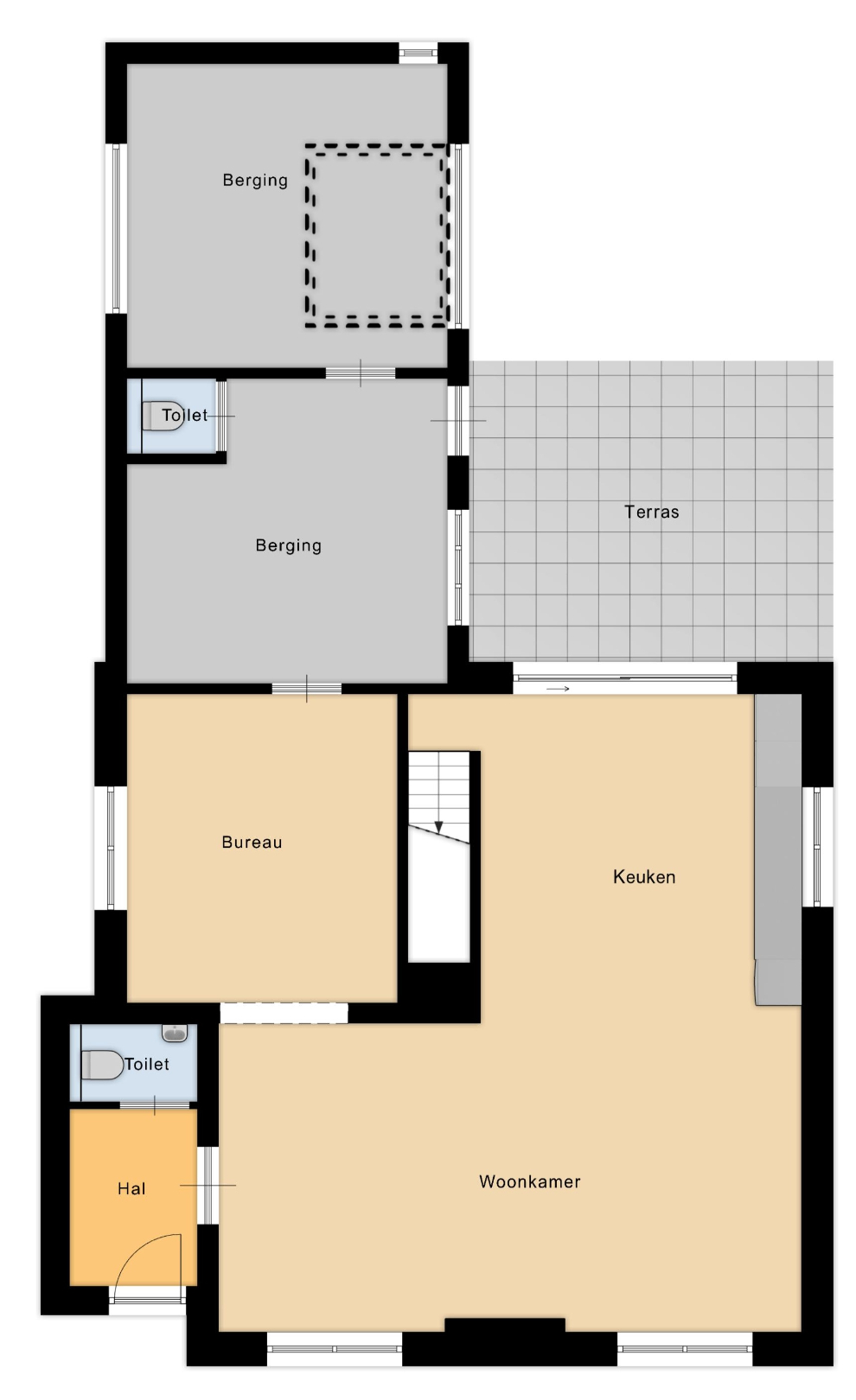 In het verlengde van de woonkamer bevindt zich een ruime kamer van maar liefst 14m² voor een thuisbureau of speelruimte te creëren. Deze ruimte maakt rustig thuiswerk zeker mogelijk. Aan opslagruimte is er ook geen gebrek. Achteraan de woning bevinden zich nog een ruime wasplaats van 16 m² en een berging van 16 m².
